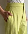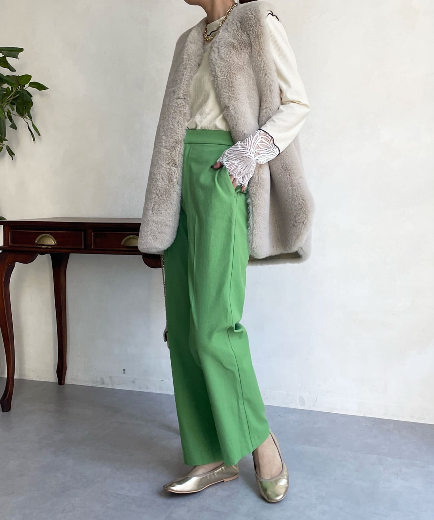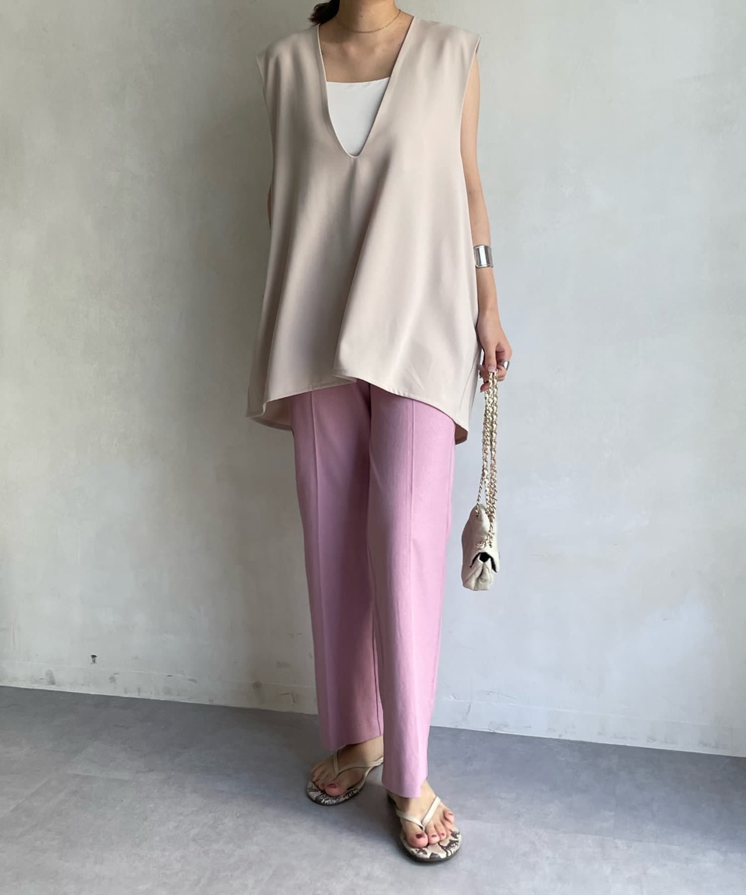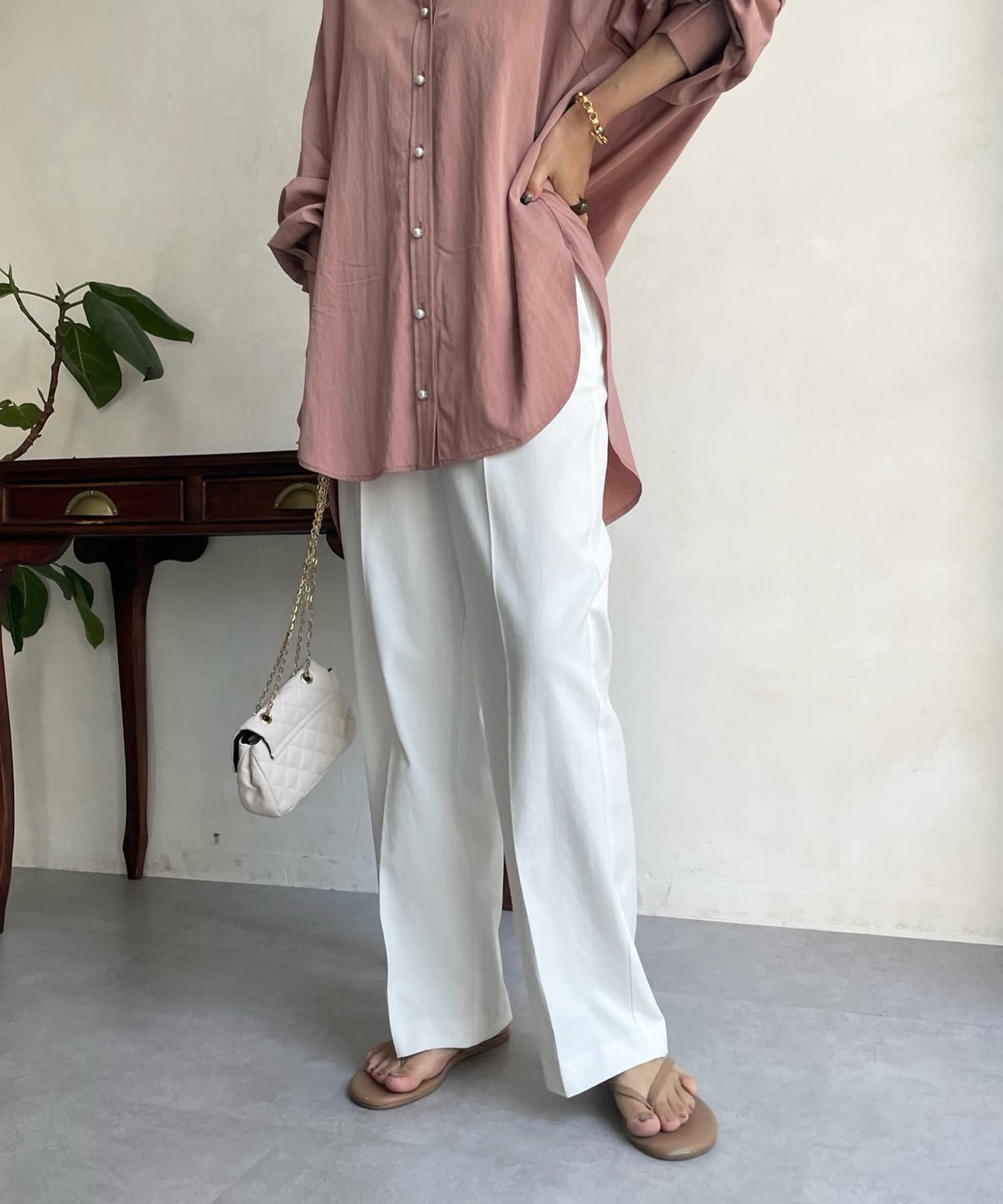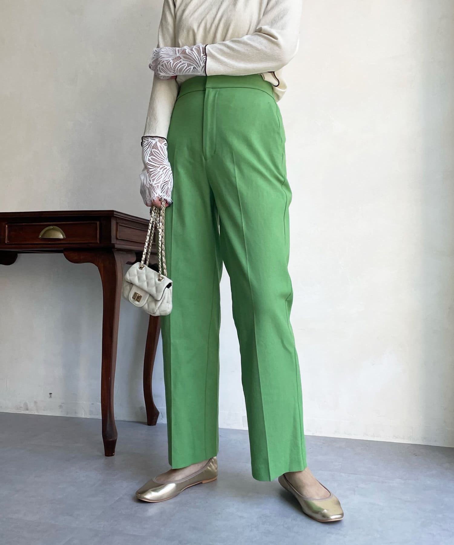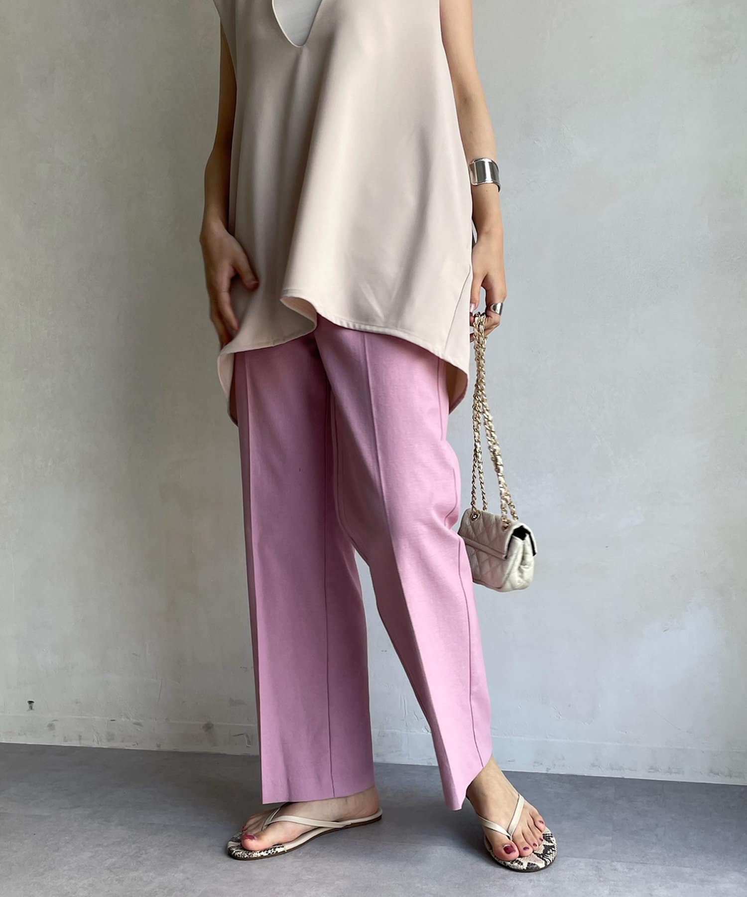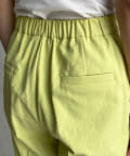 センタープレス入りできちんとした印象ながらも、後ろウエストにゴムを入れることで着心地の良さも実現しました。