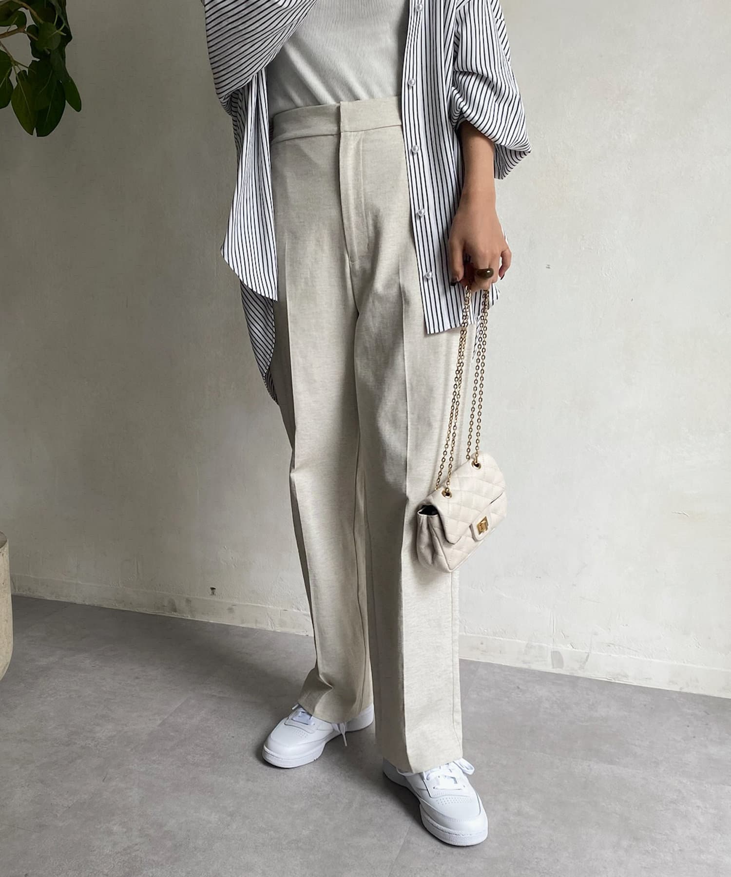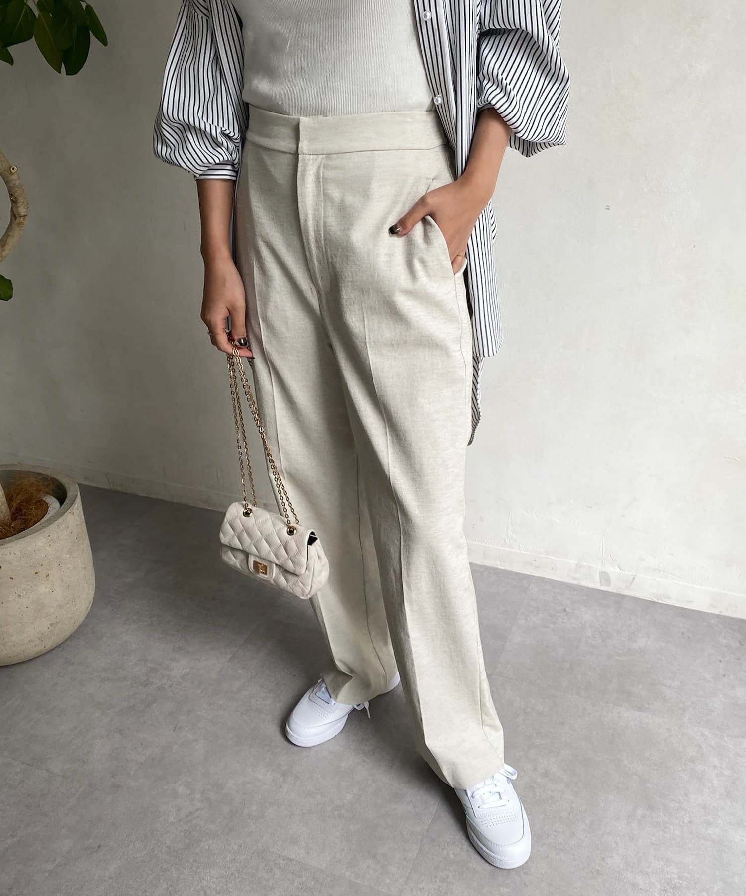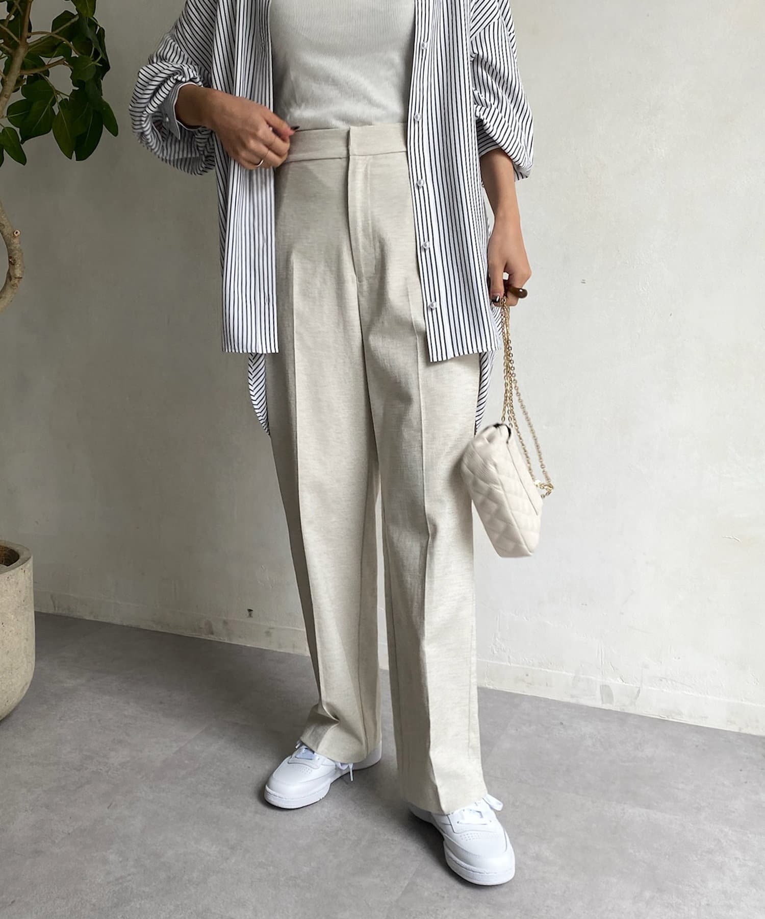 リネン混でドライタッチな質感もあり、カジュアルなスタイルとも相性抜群!