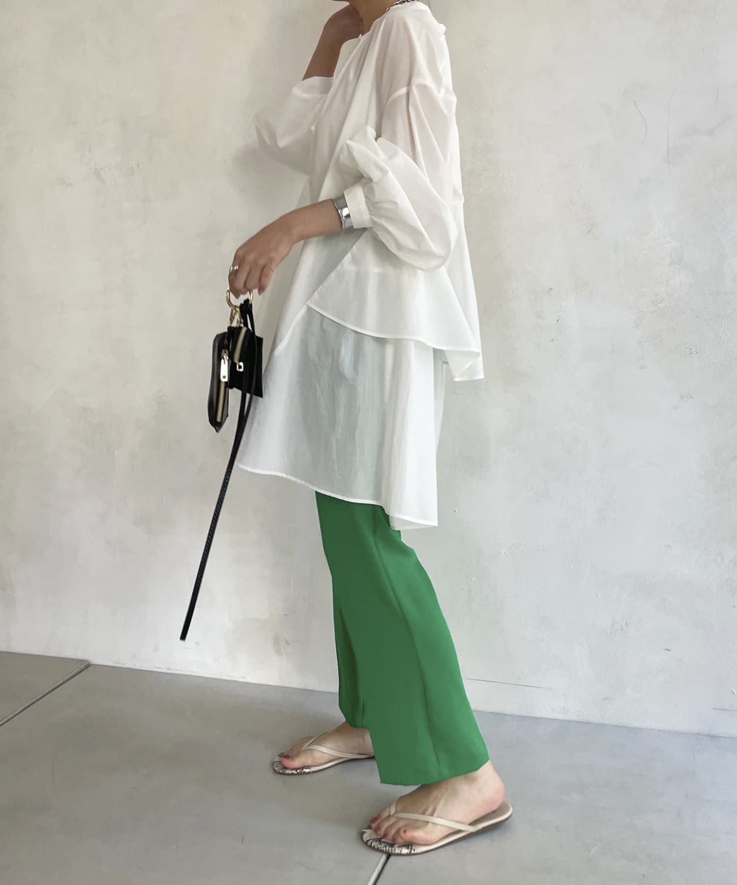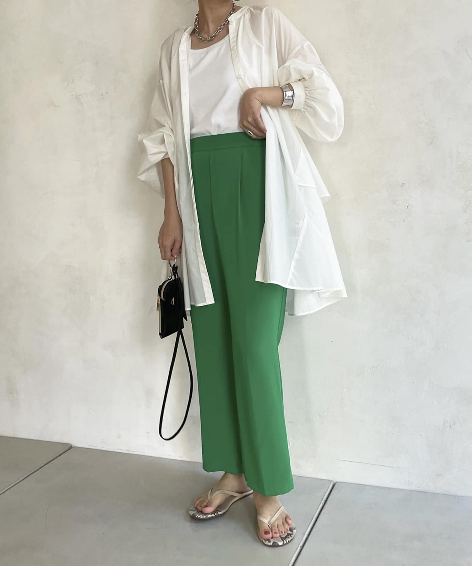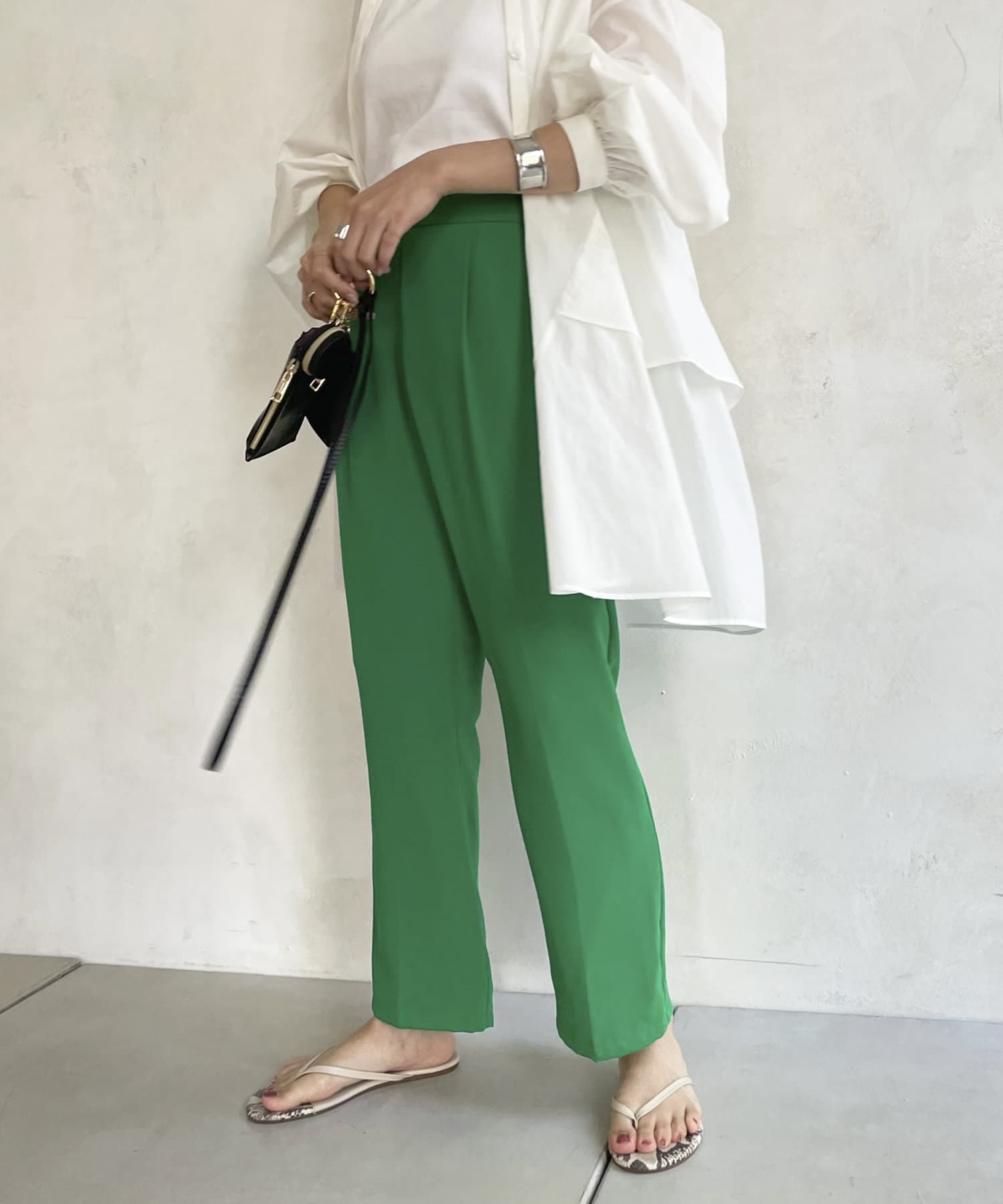 足が綺麗に見える絶妙なシルエットに、更にセンタープレスを施したスタイルアップ効果抜群の一押しアイテムです。