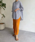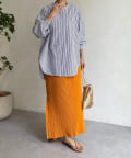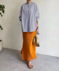 パンツ合わせですっきりと合わせるのはもちろん、スカートと合わせてまた違った表情で着回すのも素敵ですよ◎