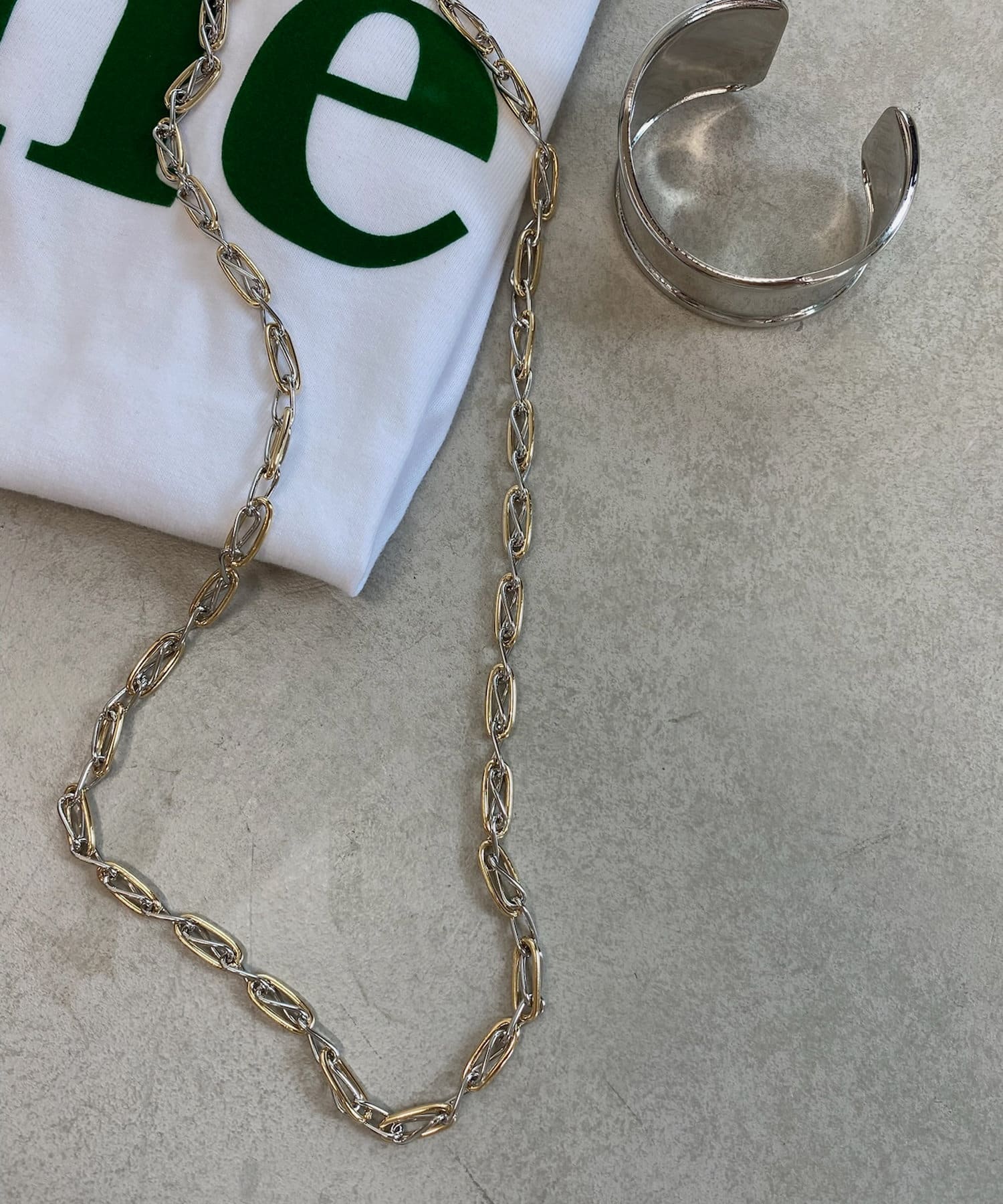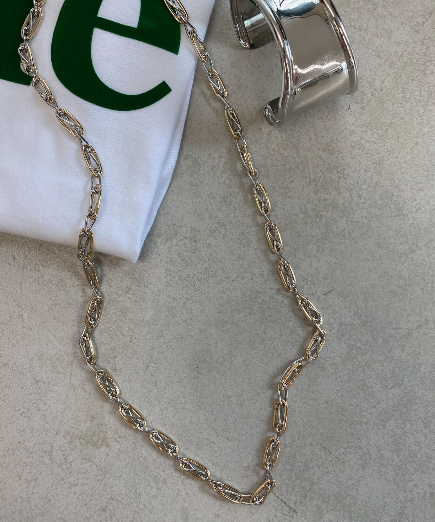 ・ゴールド×シルバーのミックスチェーンデザイン