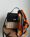 クラッシックなフォルムにフラップ部分をフェイクレザーに仕上げ、春からすぐに使える上品な雰囲気に仕上げました。