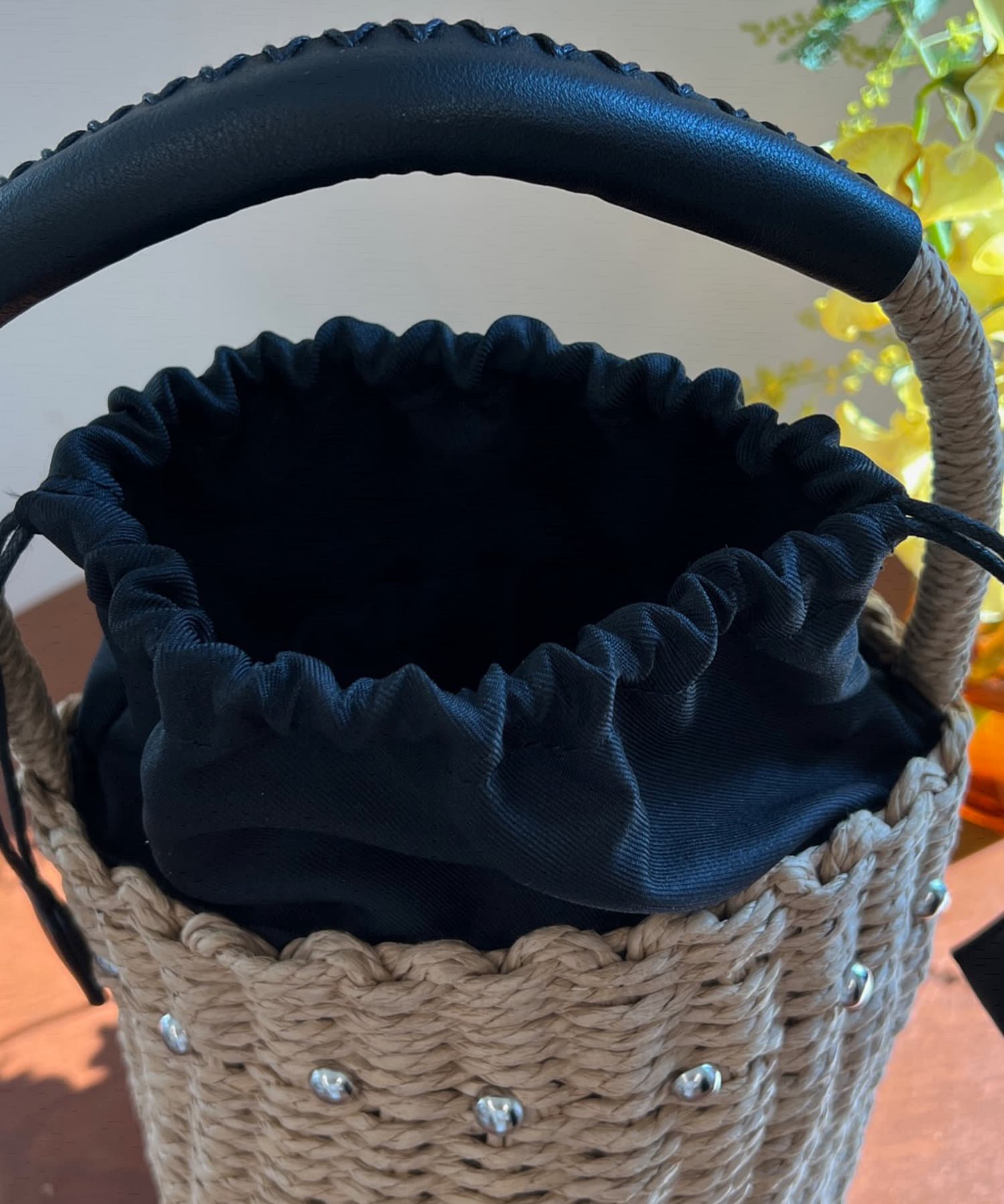 スタッズ付きカゴバッグ