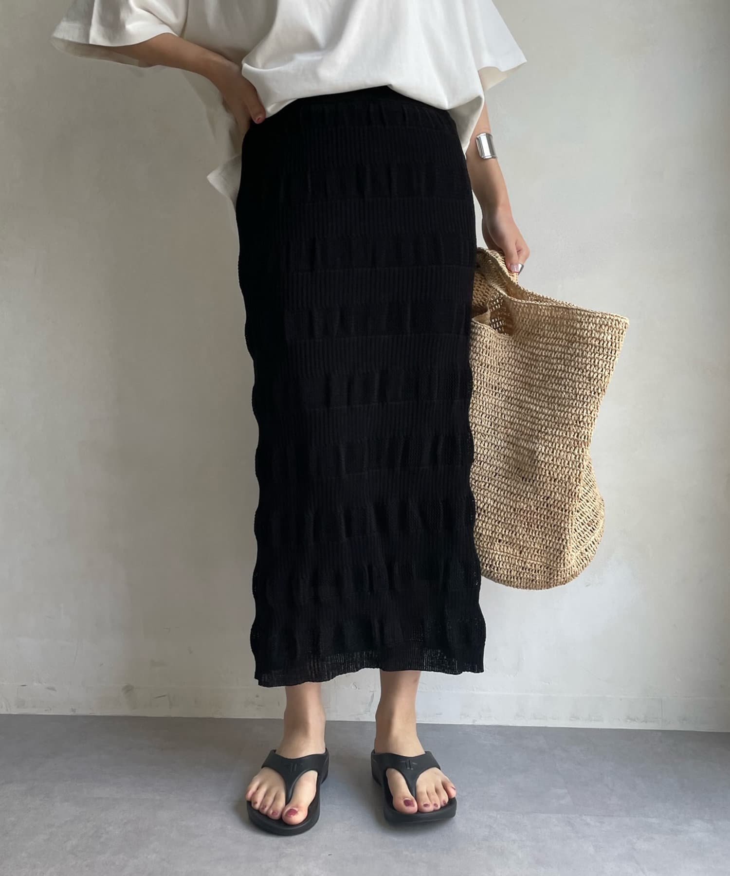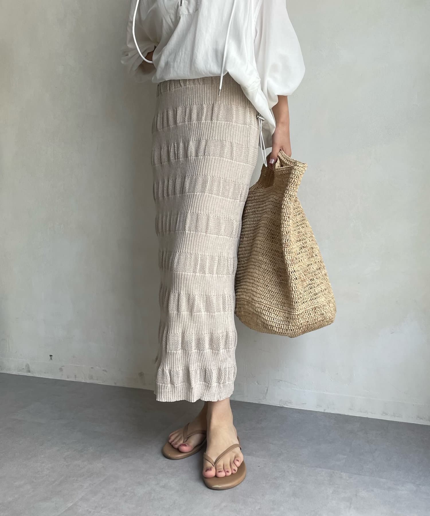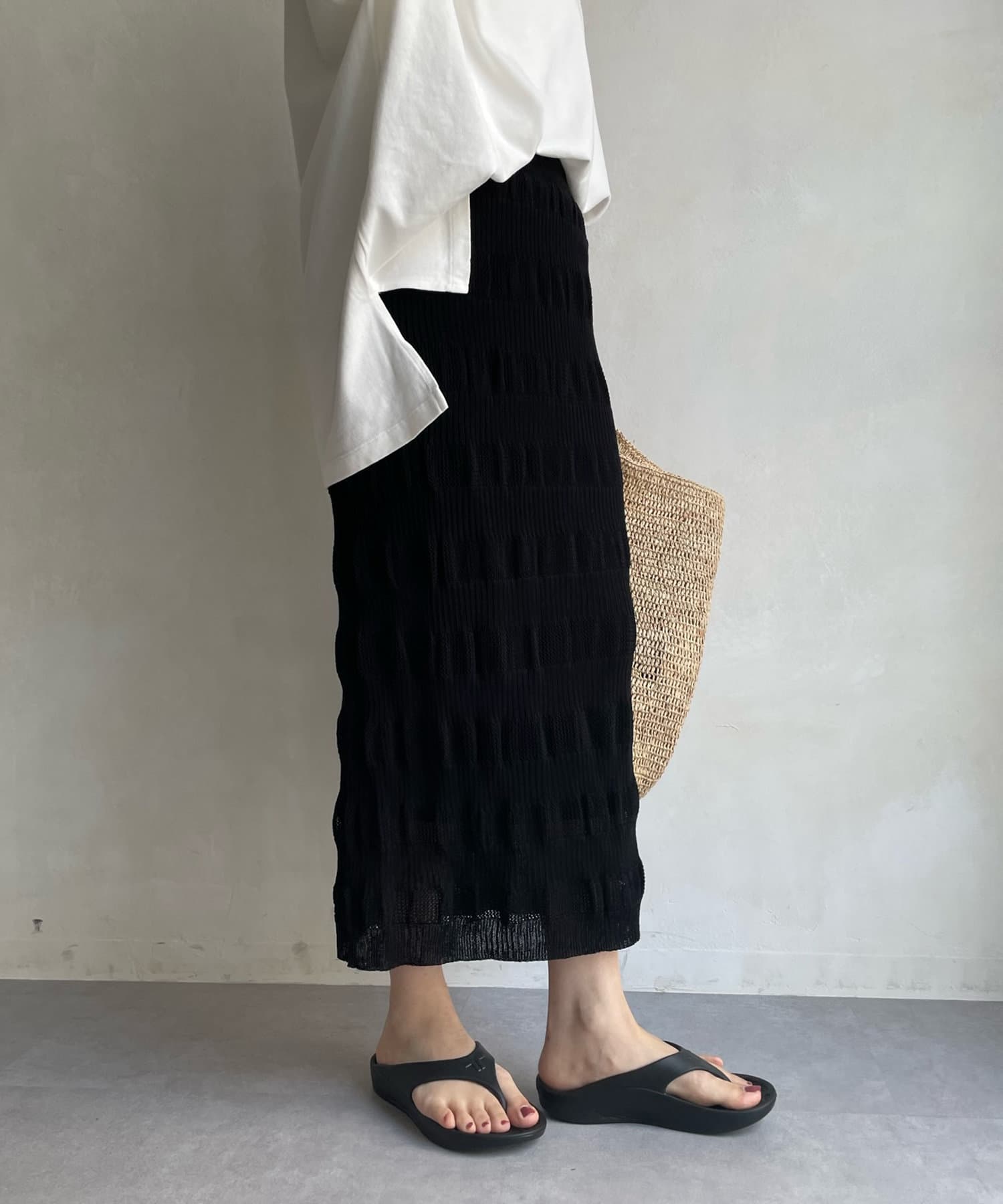リブとメッシュの編地で見た目も涼しげで春夏にピッタリ!ウエストゴム仕様で楽なうえ、ソフトな生地で伸縮性があり、足さばきもしやすく実用性も◎裏表情ある生地感が、シンプルなトップスと合わせるだけでしっかり様見え◎地付きで透ける心配もなく穿いて頂けます。