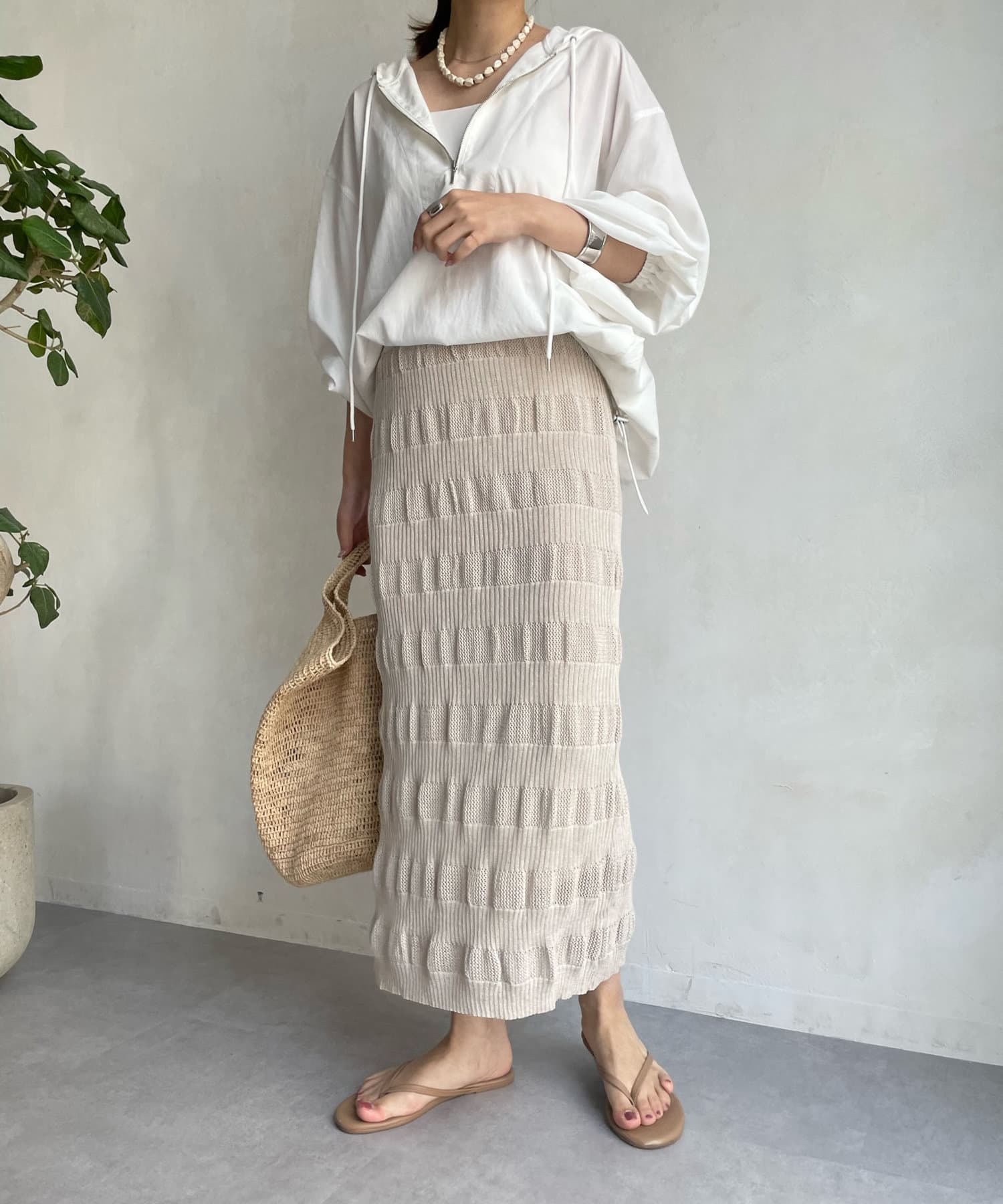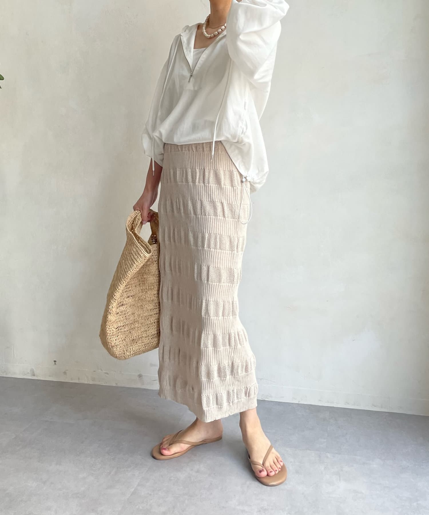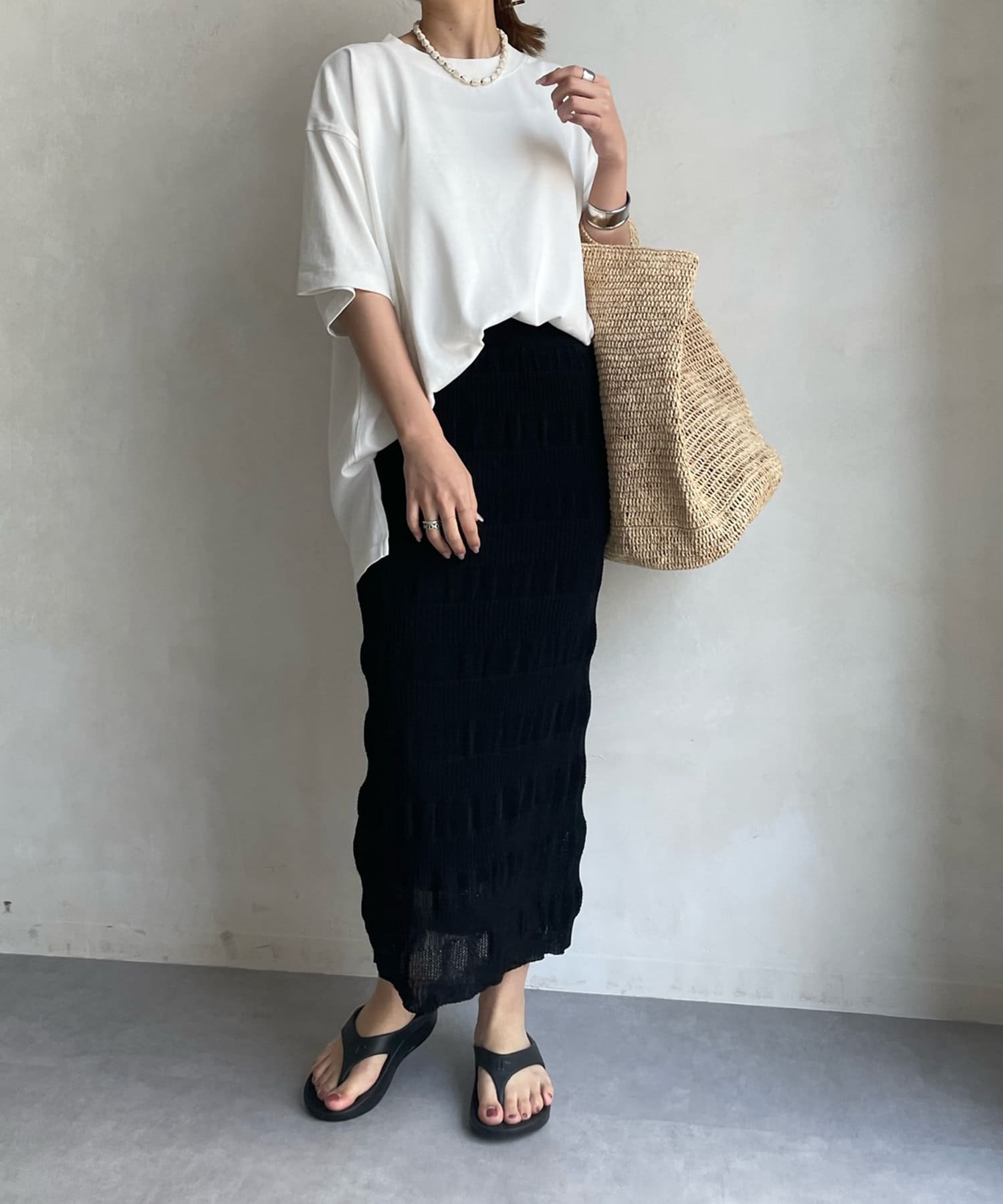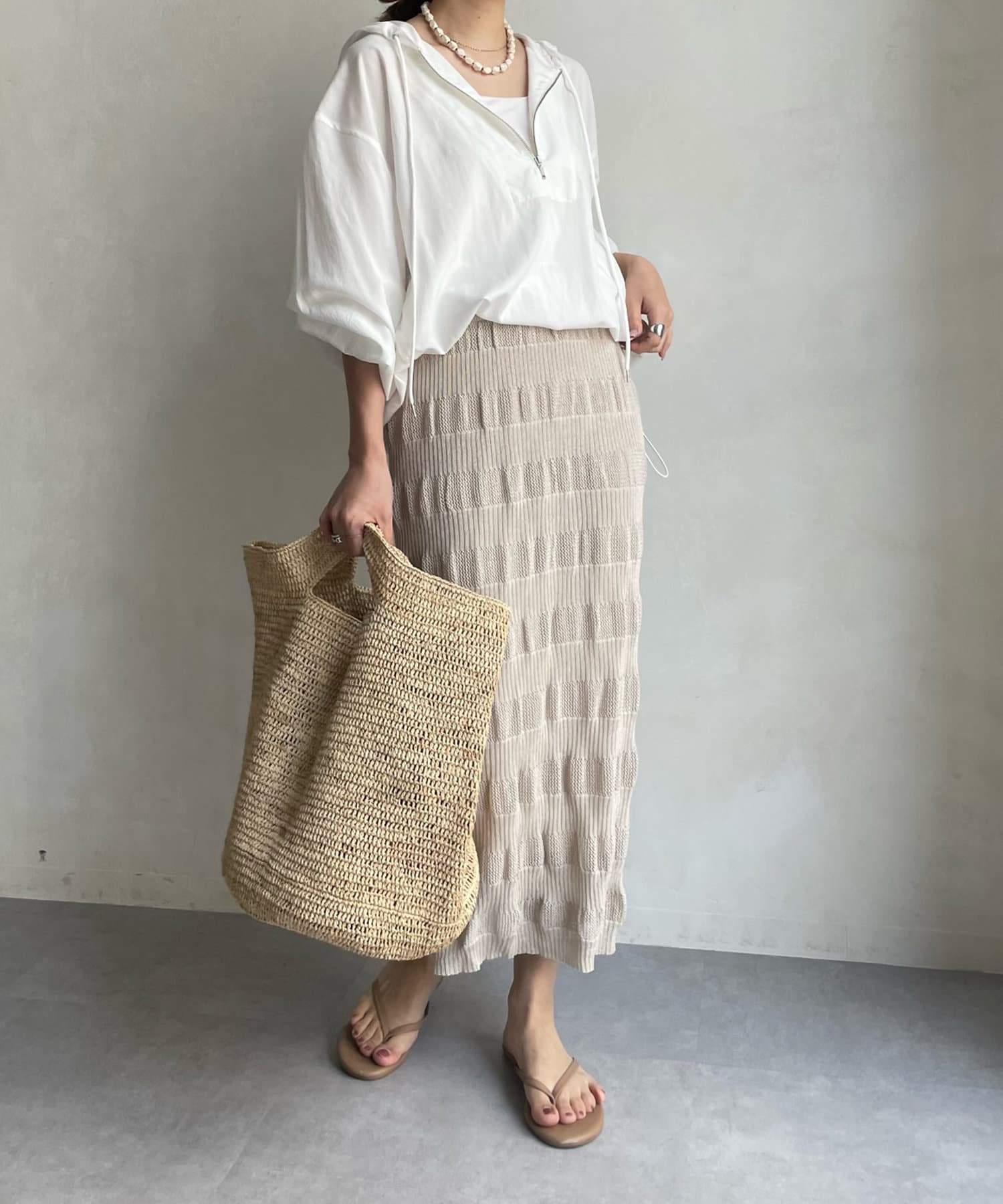 リブとメッシュの編地で見た目も涼しげで春夏にピッタリ!ウエストゴム仕様で楽なうえ、ソフトな生地で伸縮性があり、足さばきもしやすく実用性も◎裏表情ある生地感が、シンプルなトップスと合わせるだけでしっかり様見え◎地付きで透ける心配もなく穿いて頂けます。