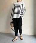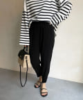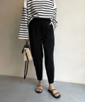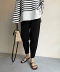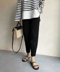 ジョガーパンツのラフなシルエットながら、きれい見えする素材を使用し、大人らしく着こなせる1着。