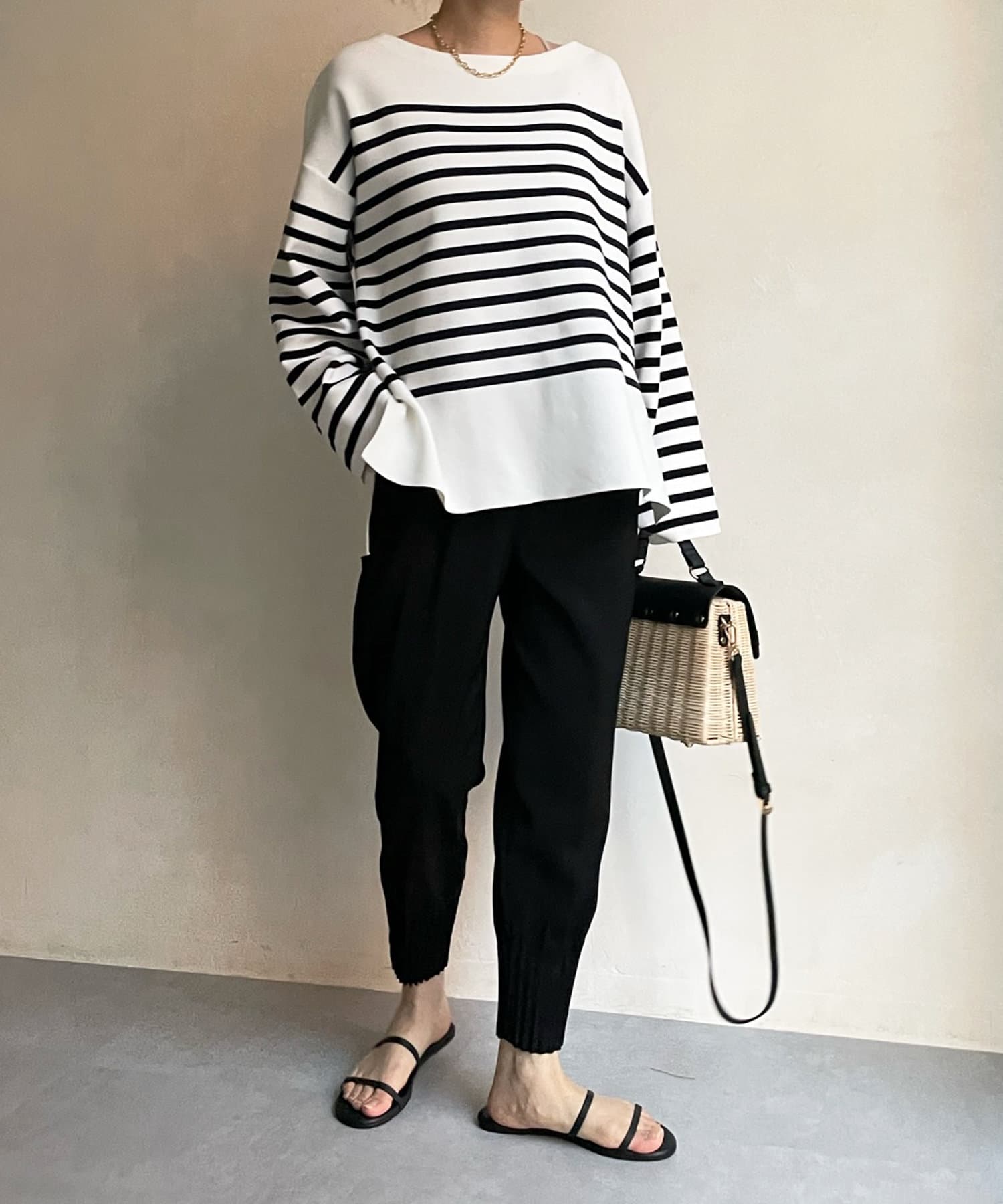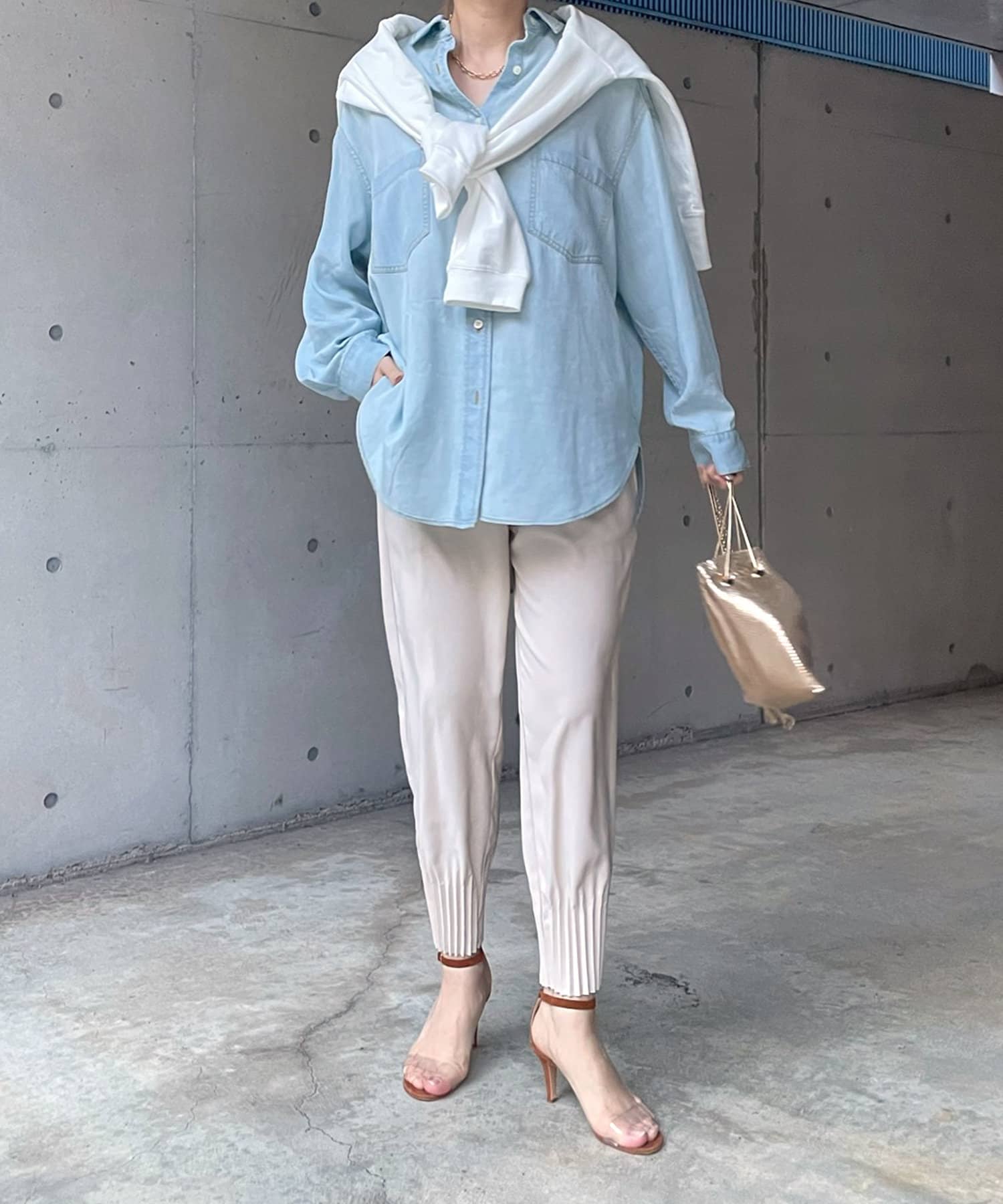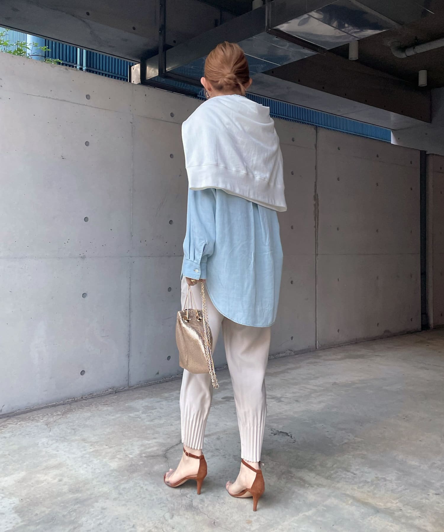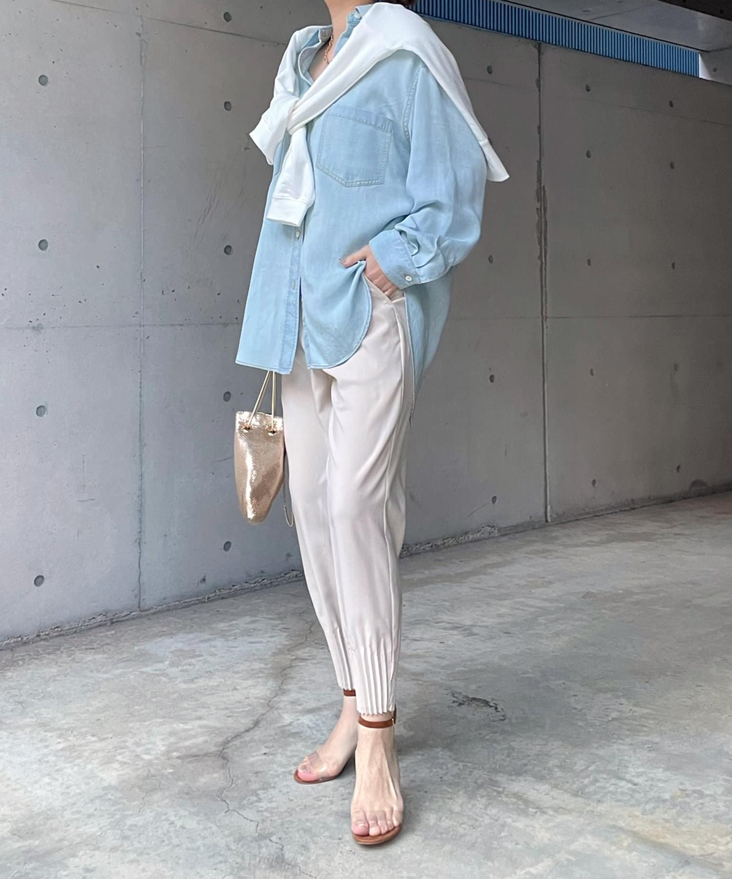 すっきりとしたシルエットなので、ブラウスやルーズなトップスなどとも好相性!