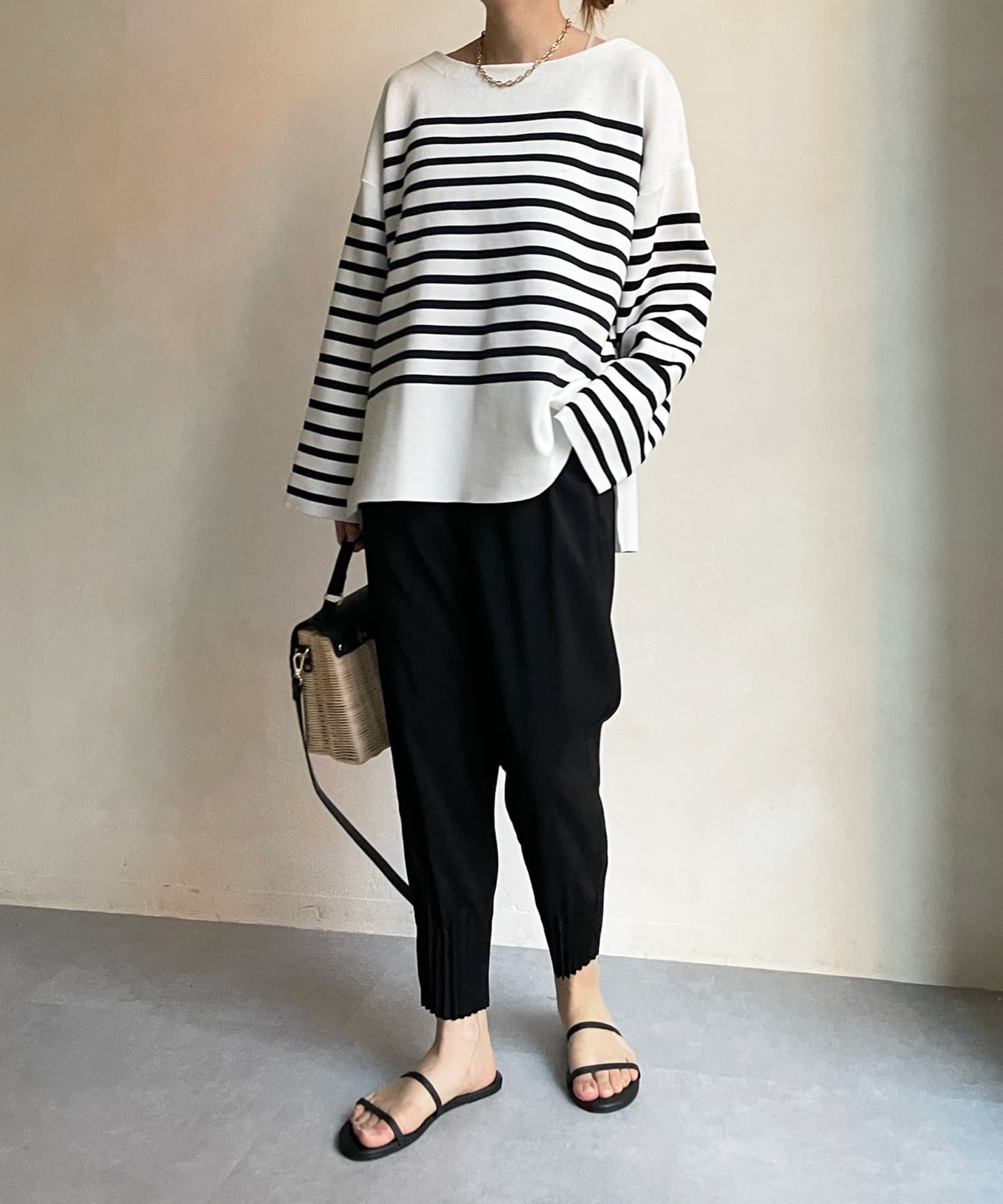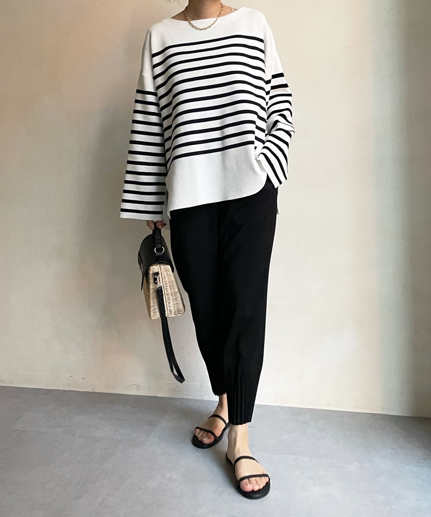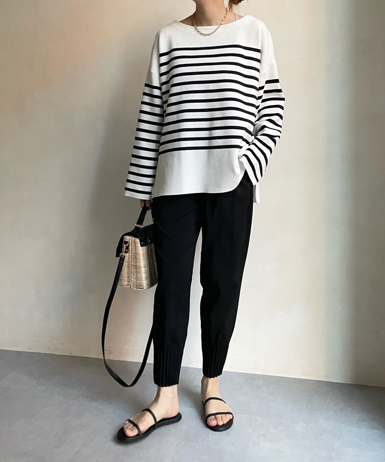 すっきりとしたシルエットなので、ブラウスやルーズなトップスなどとも好相性!