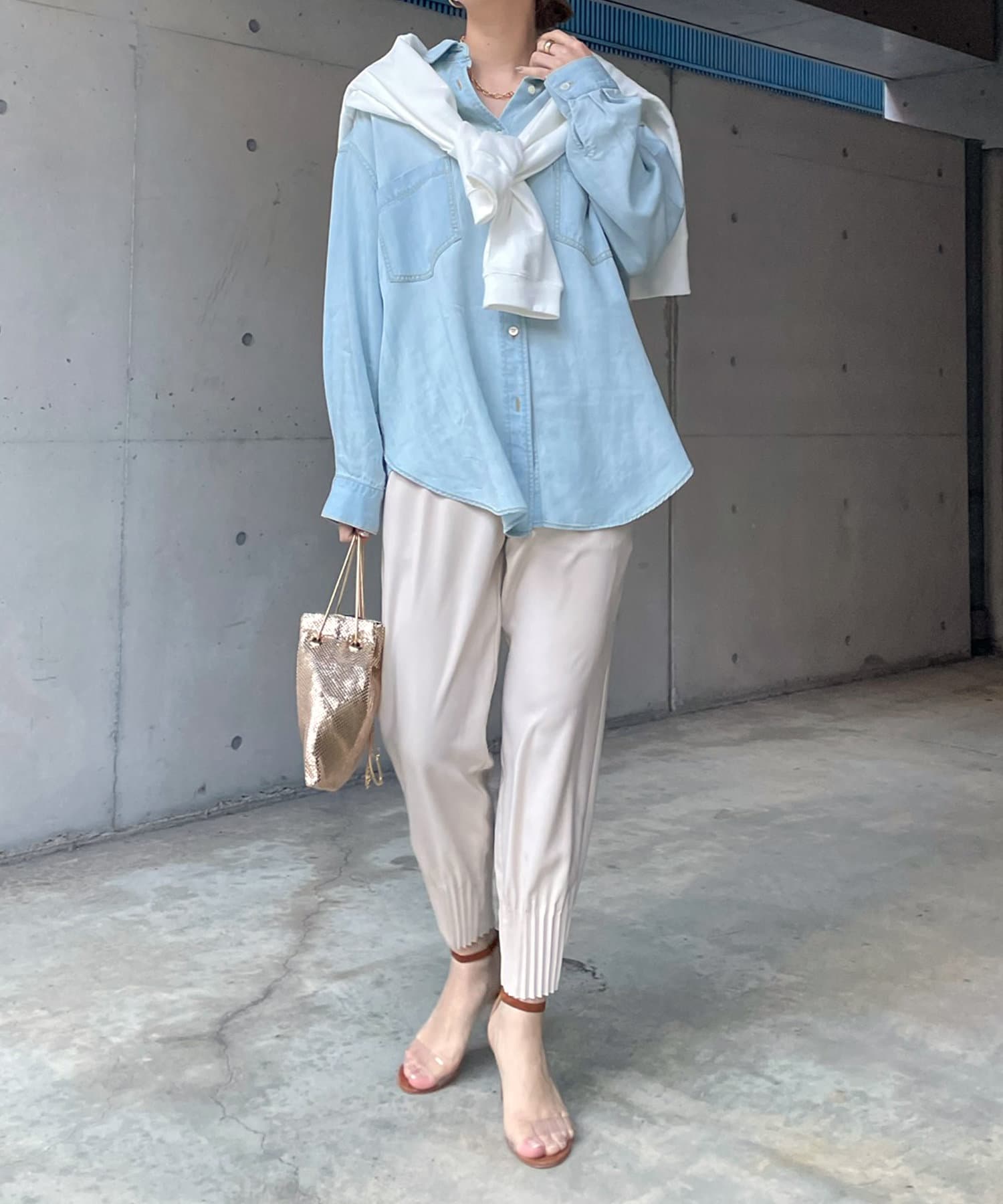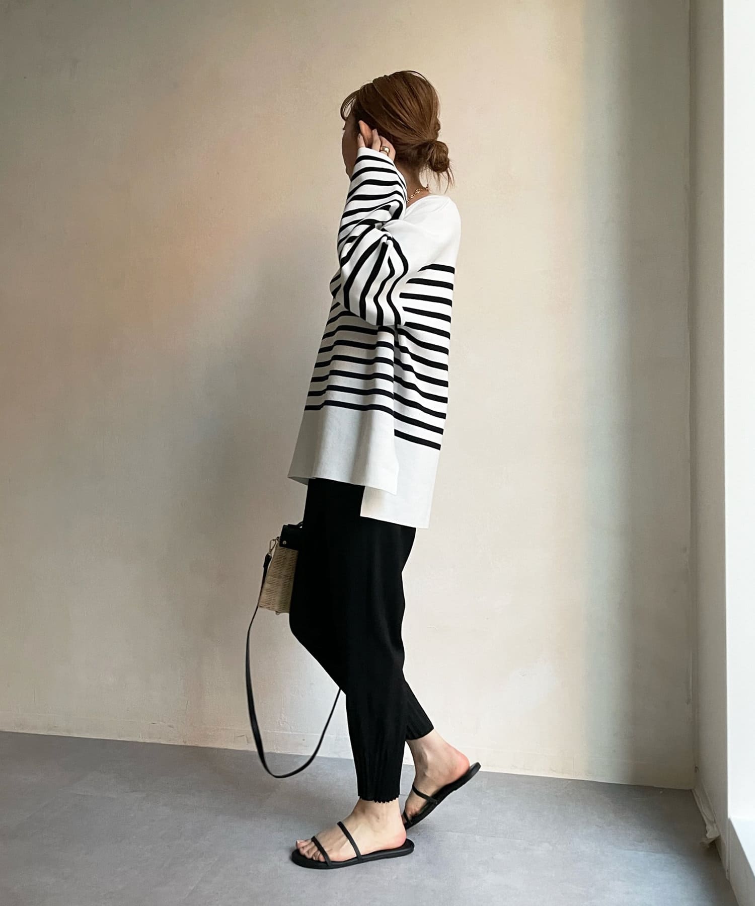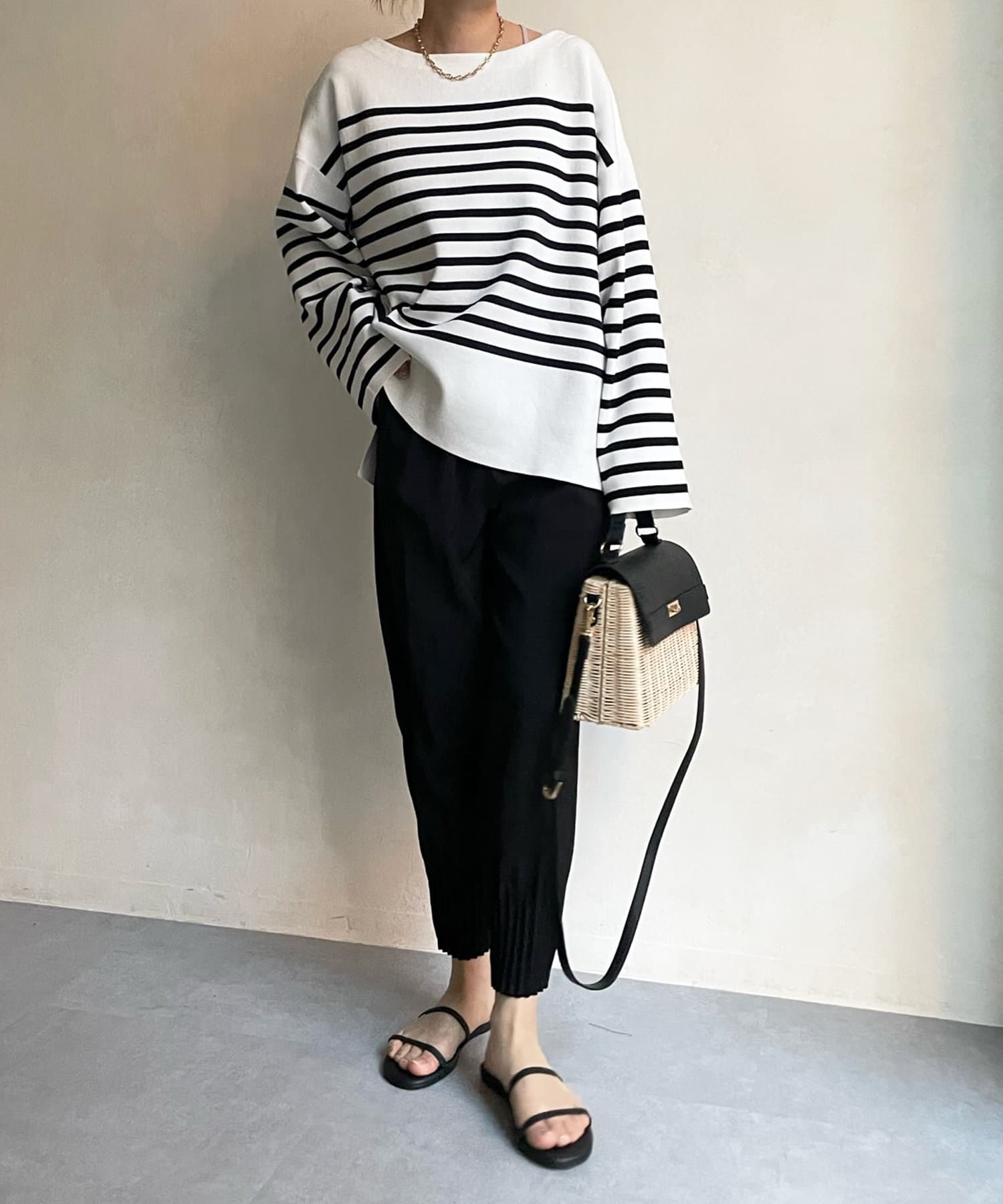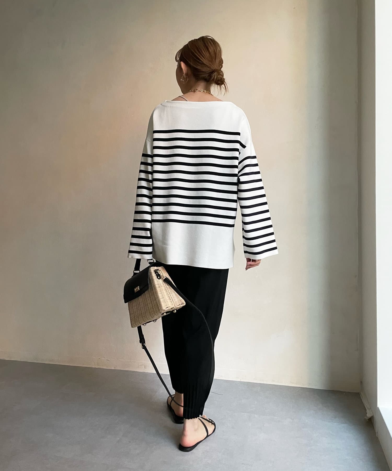 すっきりとしたシルエットなので、ブラウスやルーズなトップスなどとも好相性!