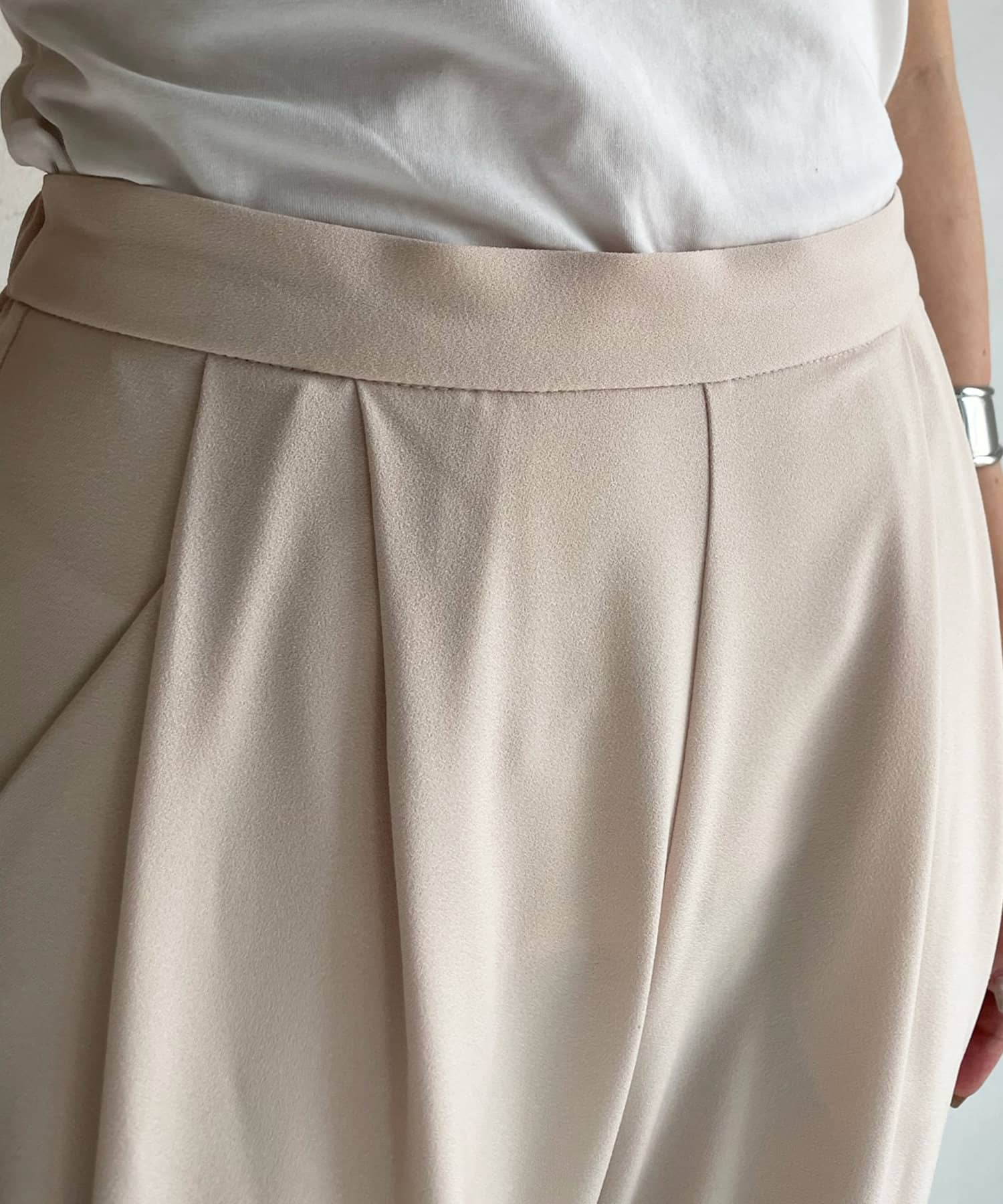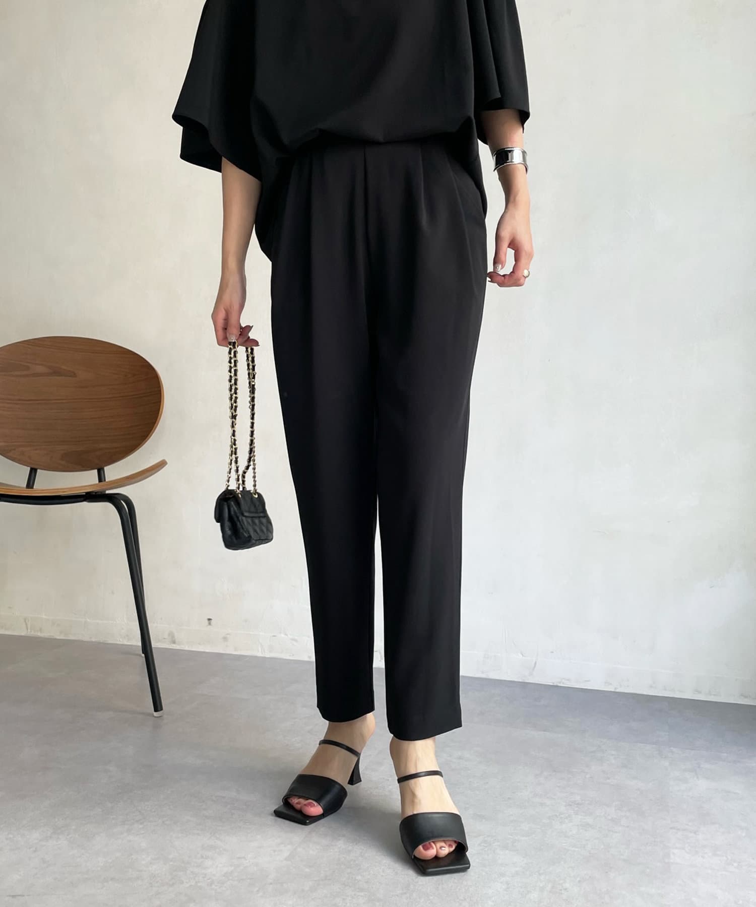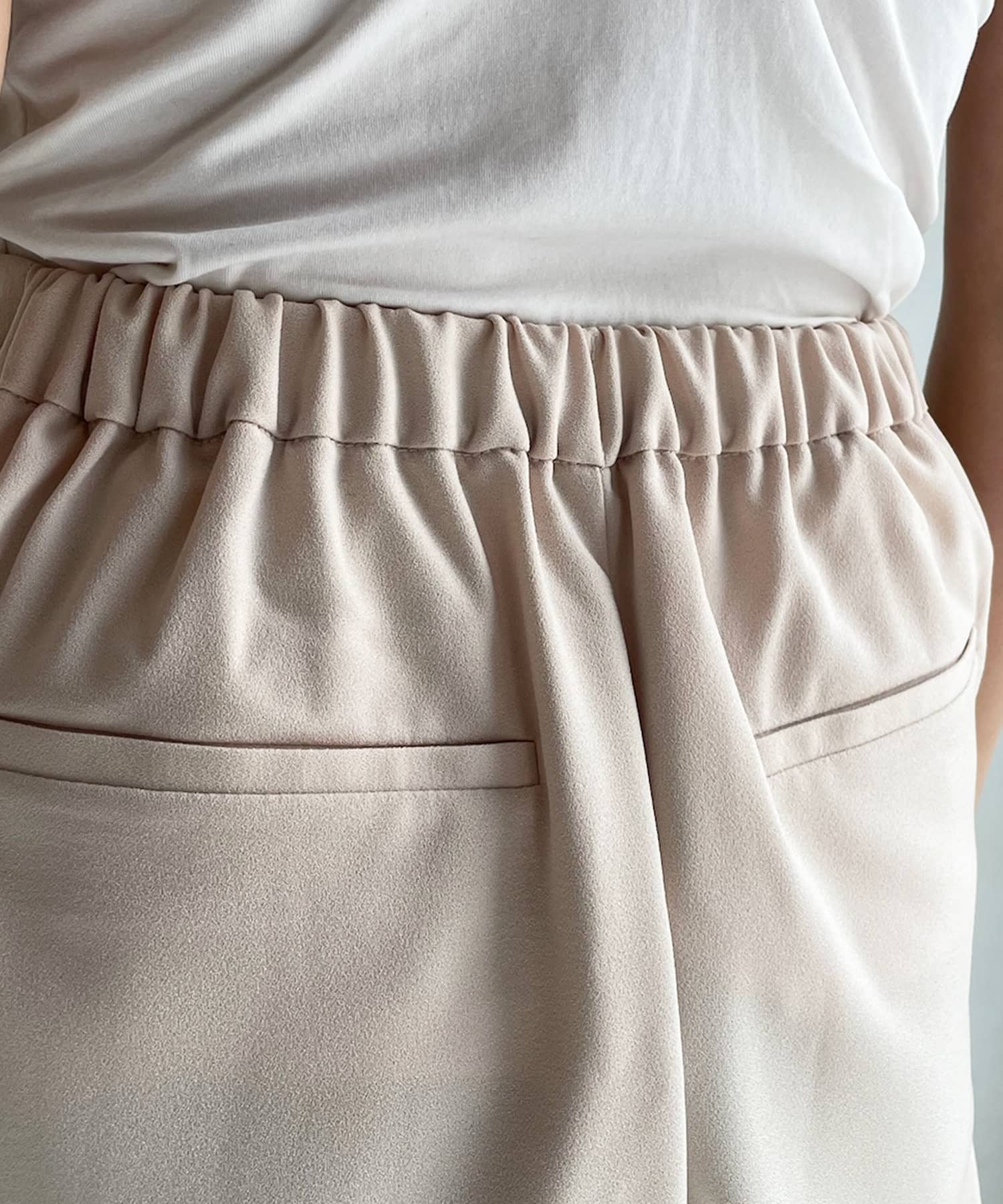 きれい目見えしながらもウエストはゴム仕立てなので、ストレスフリーで着用可能。