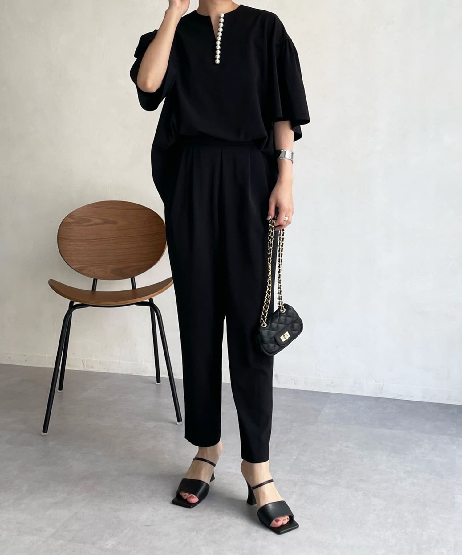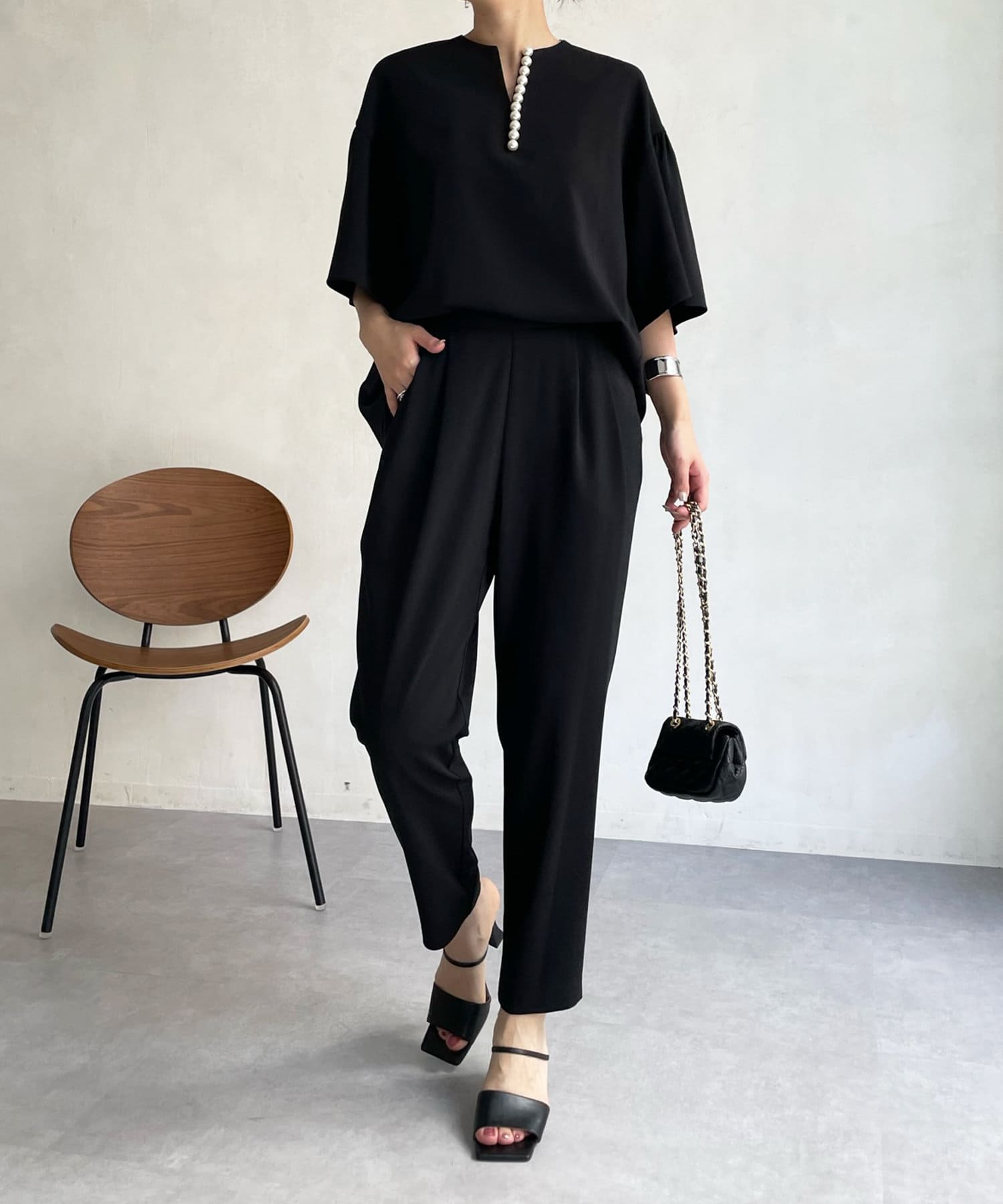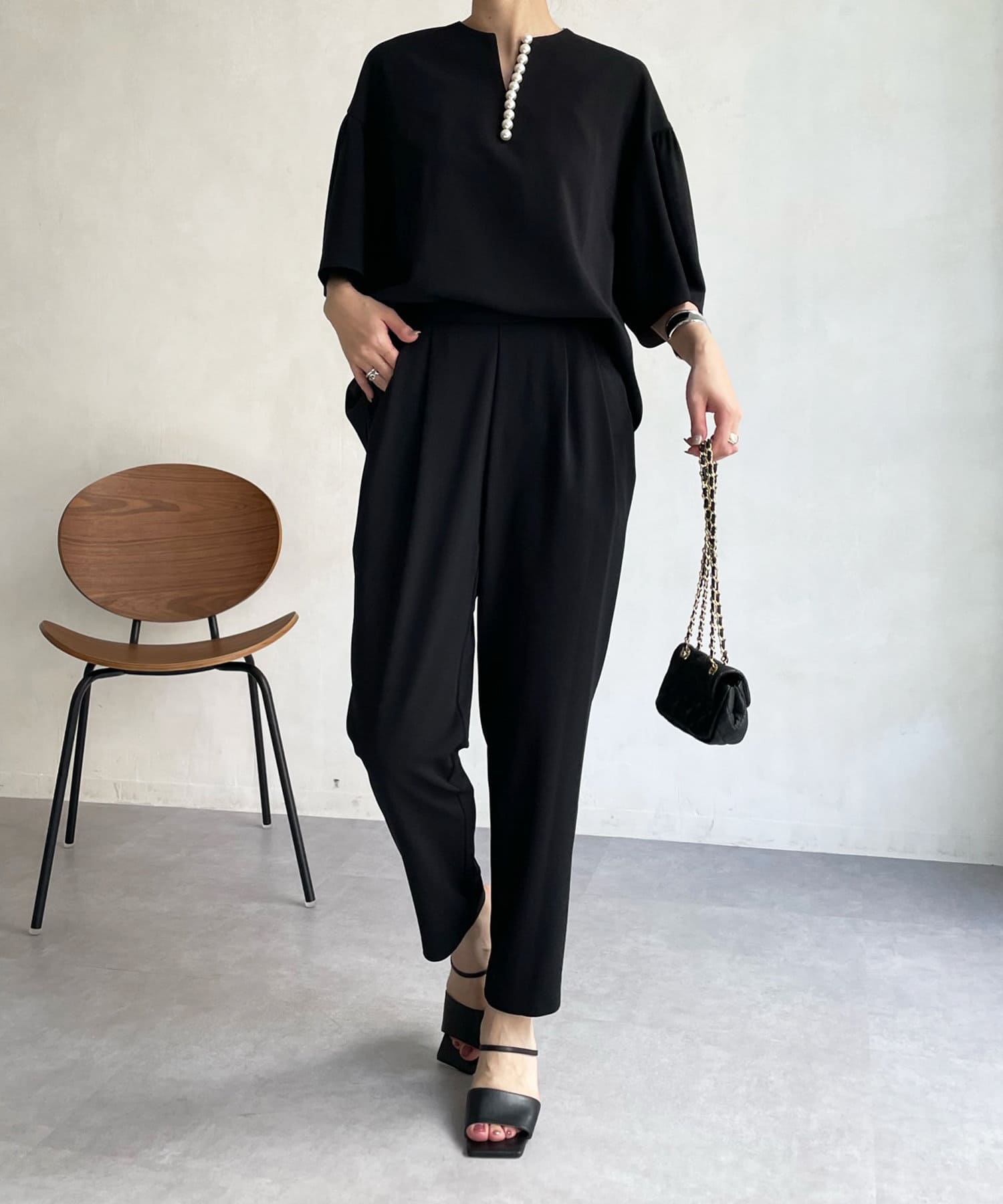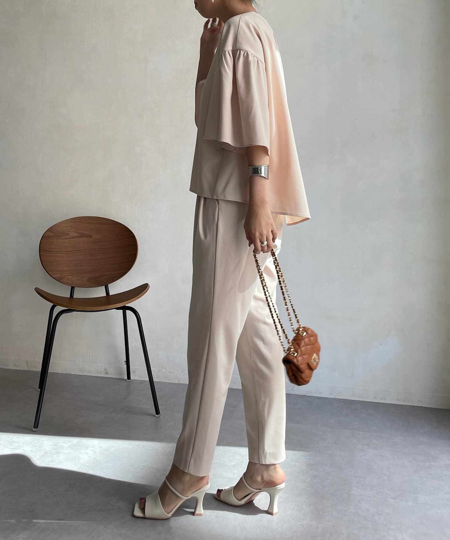 【WEB限定】パール付きスキッパーブラウス とのセットアップスタイルもおすすめですよ◎
