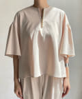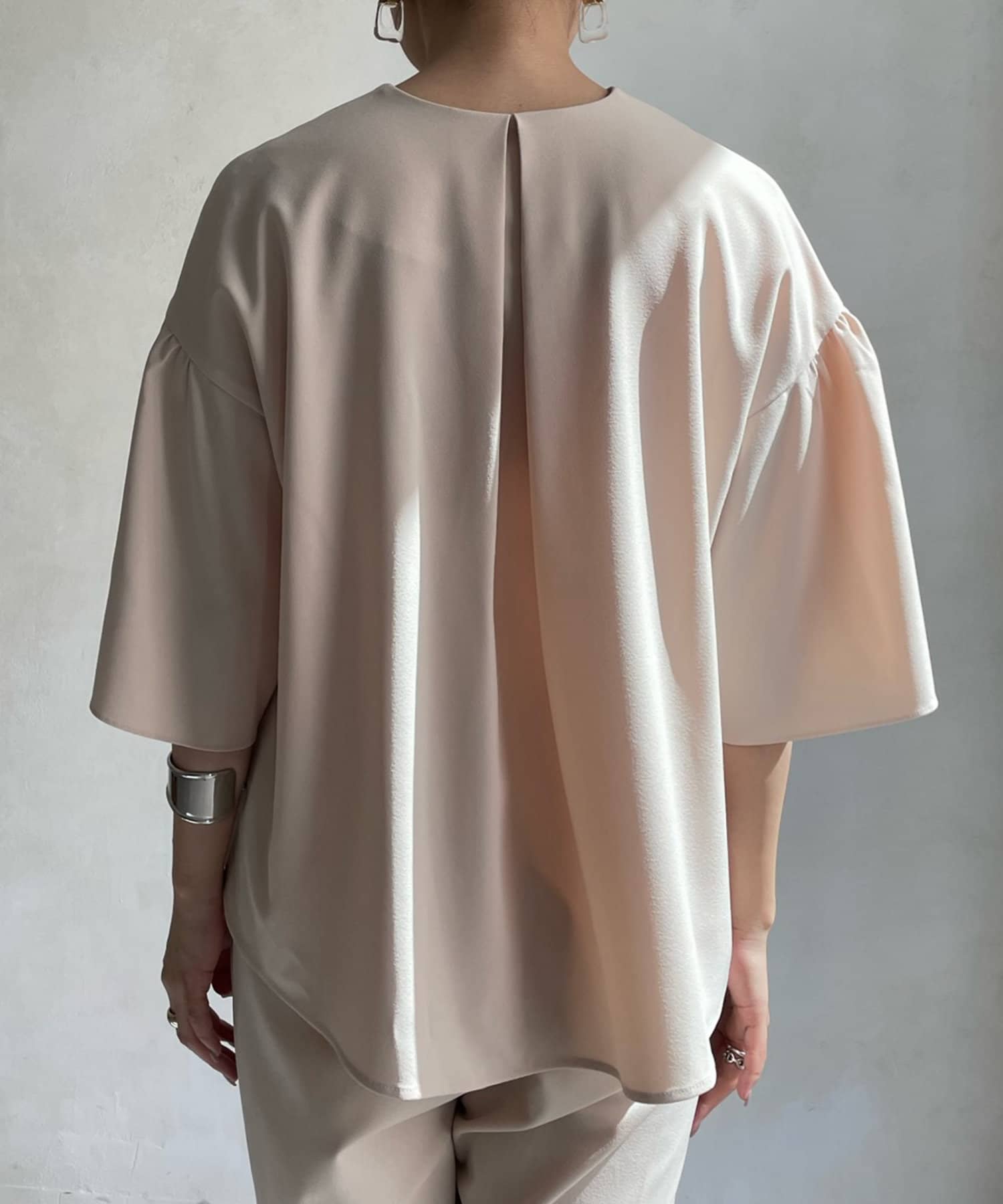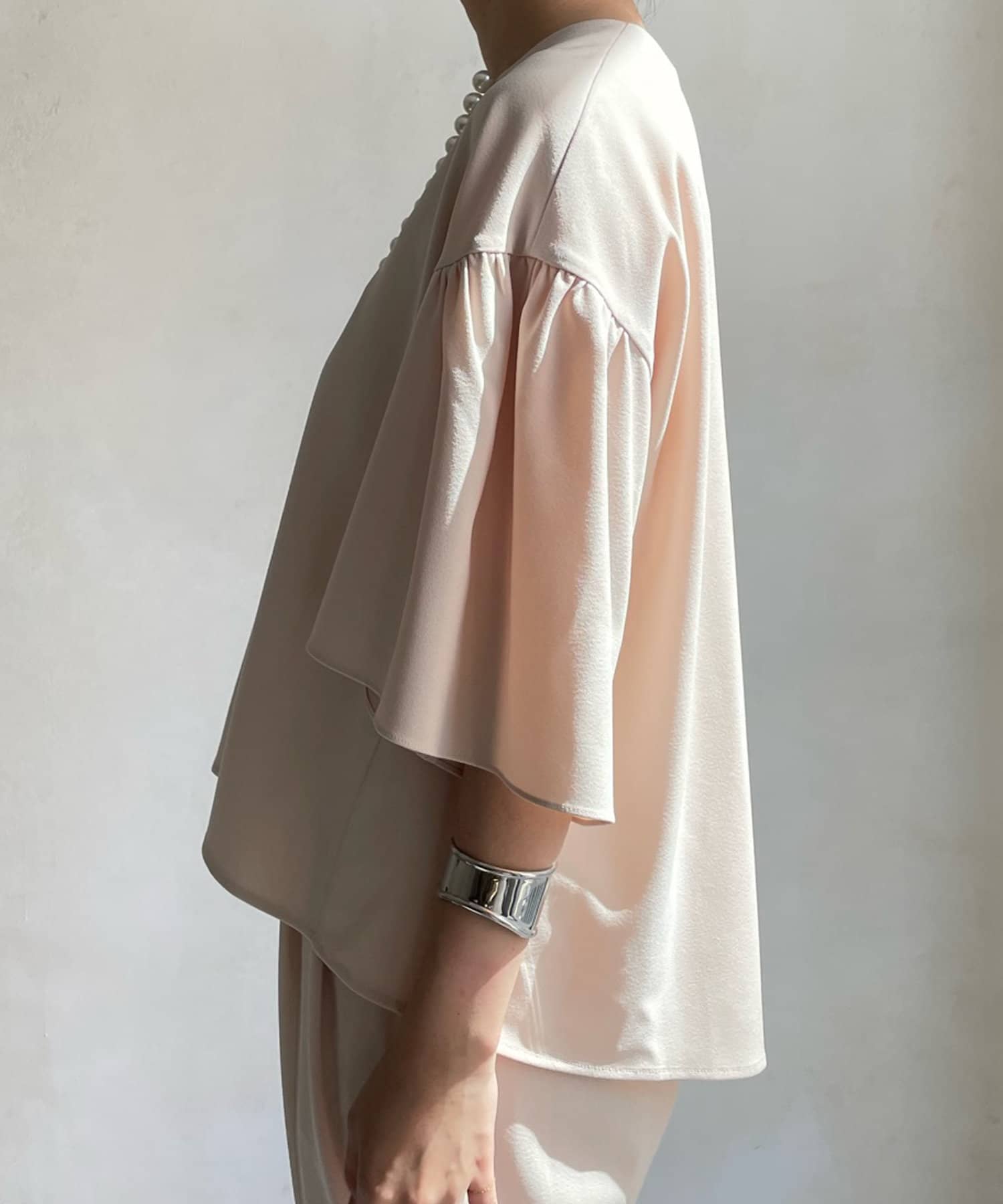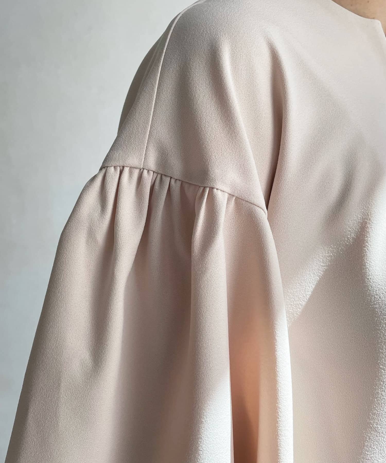 お袖の切替ラインにギャザーを寄せた、ひらっと華やかなシルエットが、さり気なく二の腕もカバーしてくれるうれしいポイント。