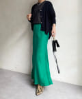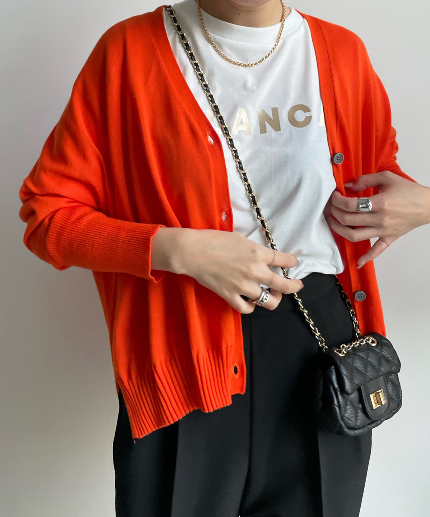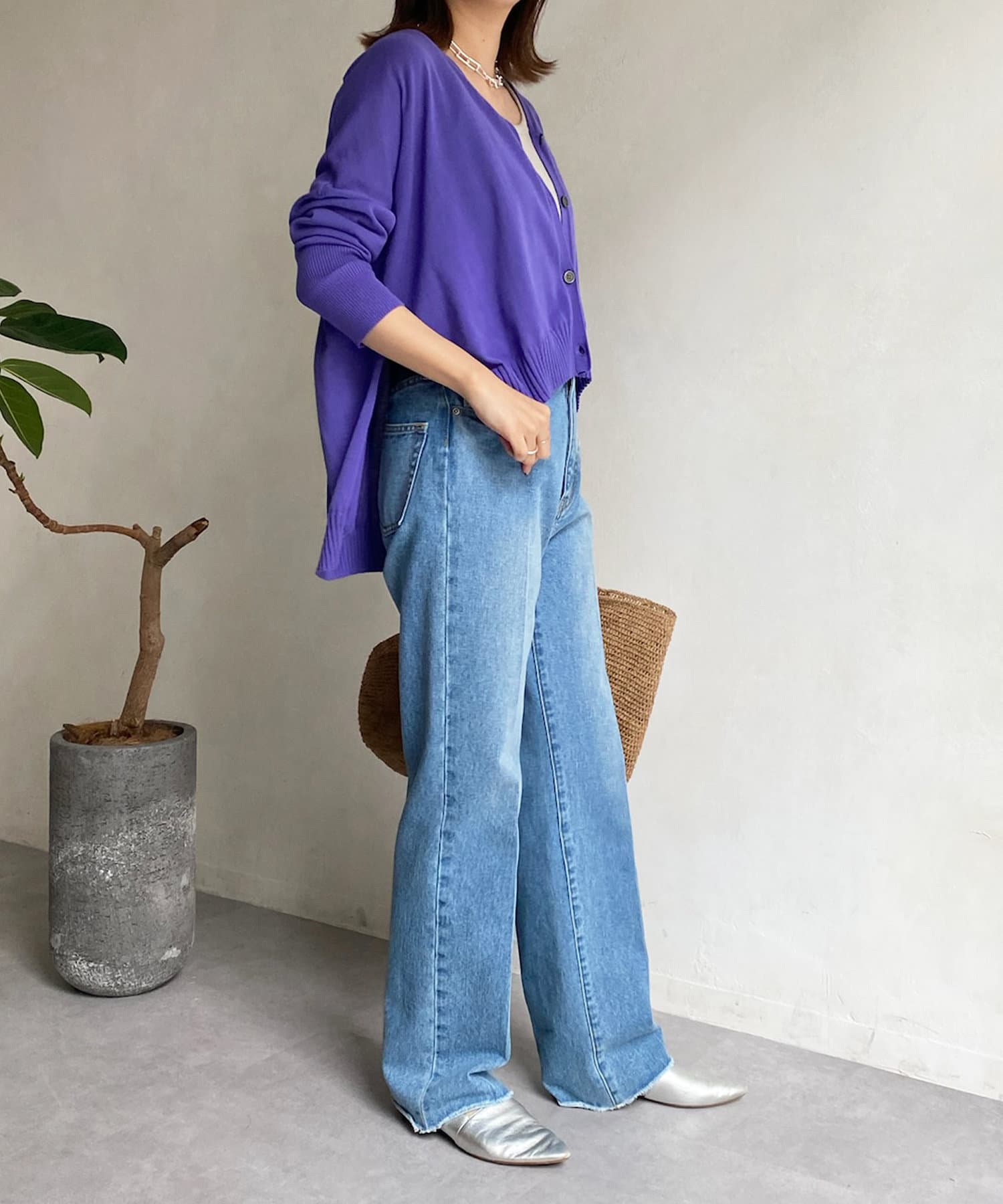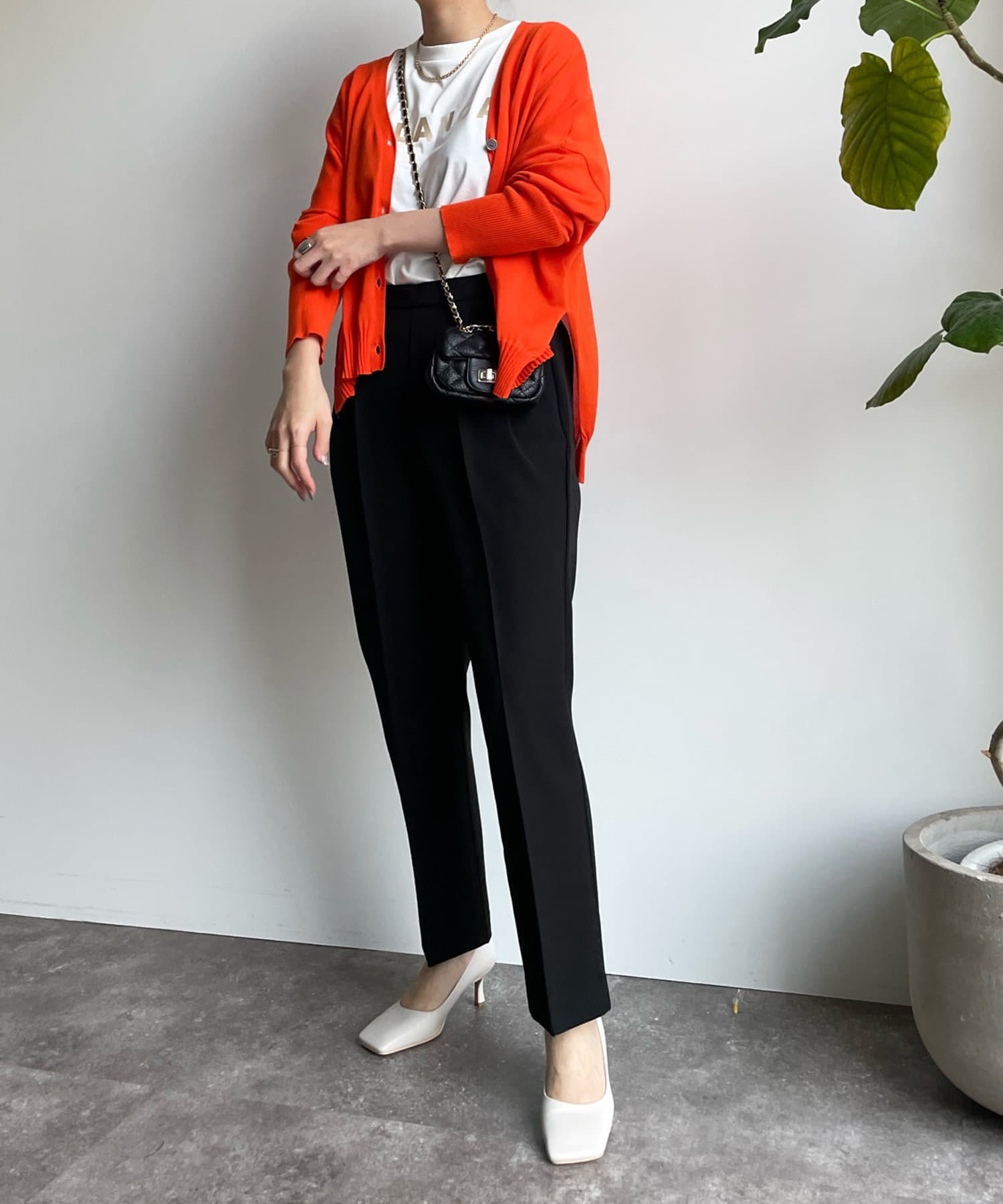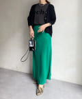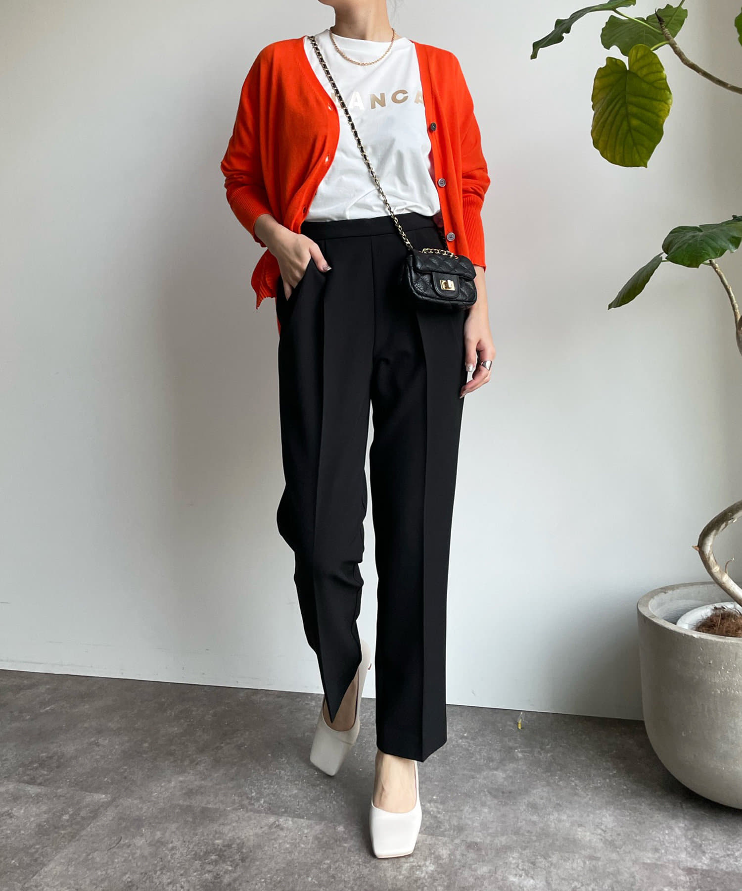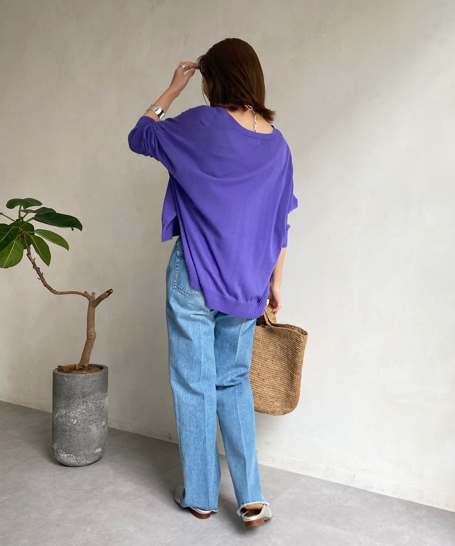 サイドにはざっくりとスリットを入れ、前後差のある丈感に。抜け感たっぷりの印象を与えます。