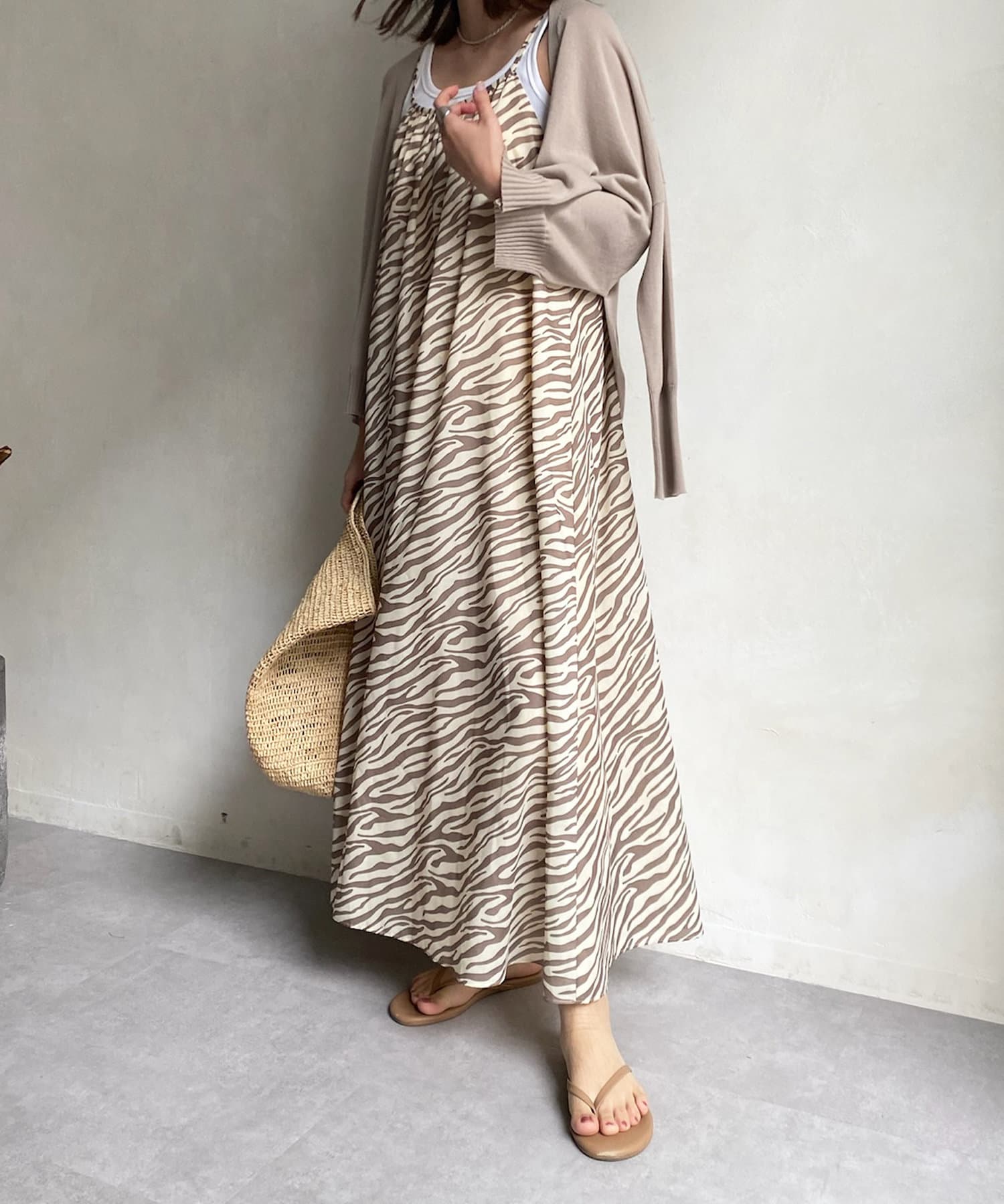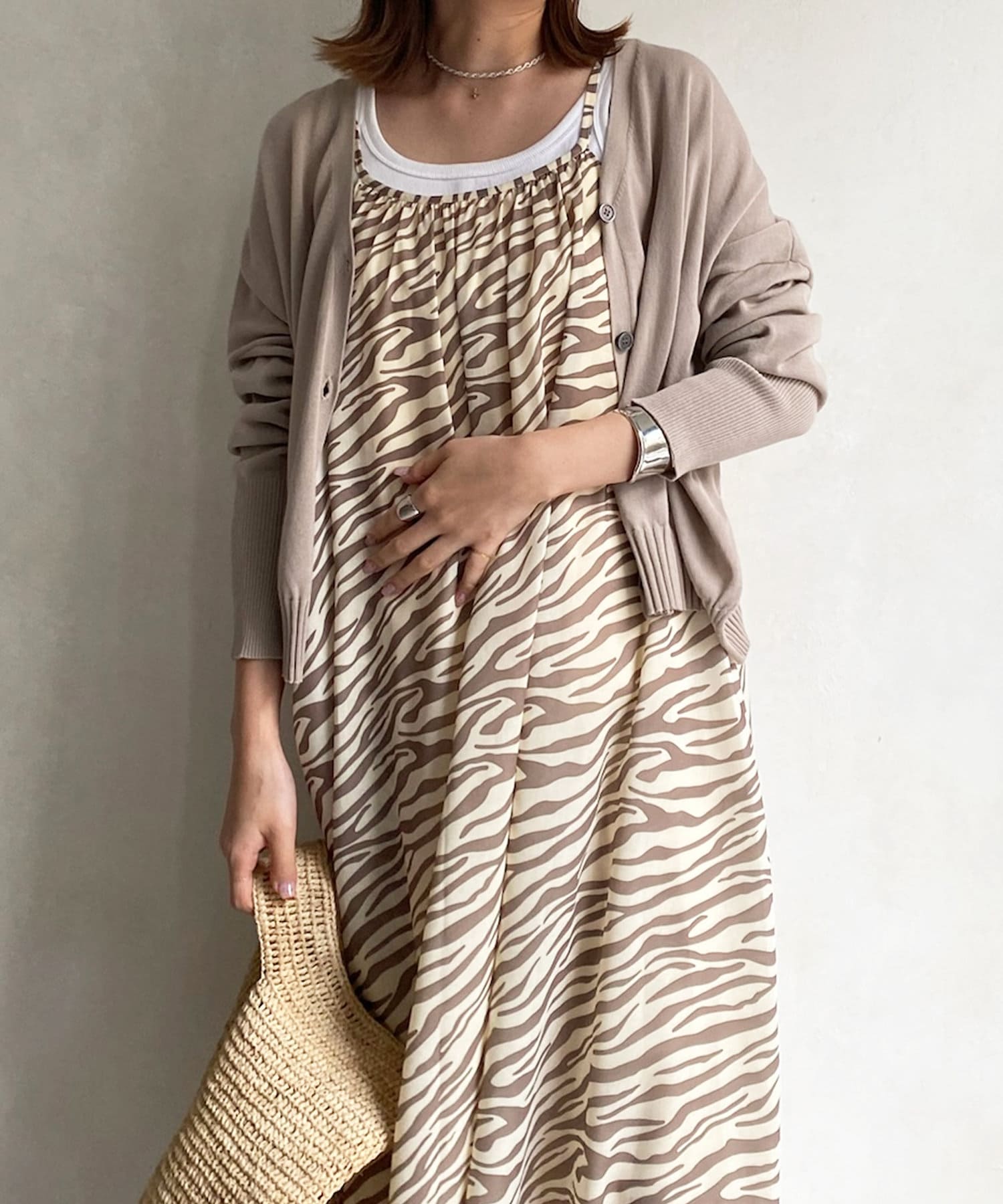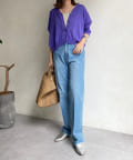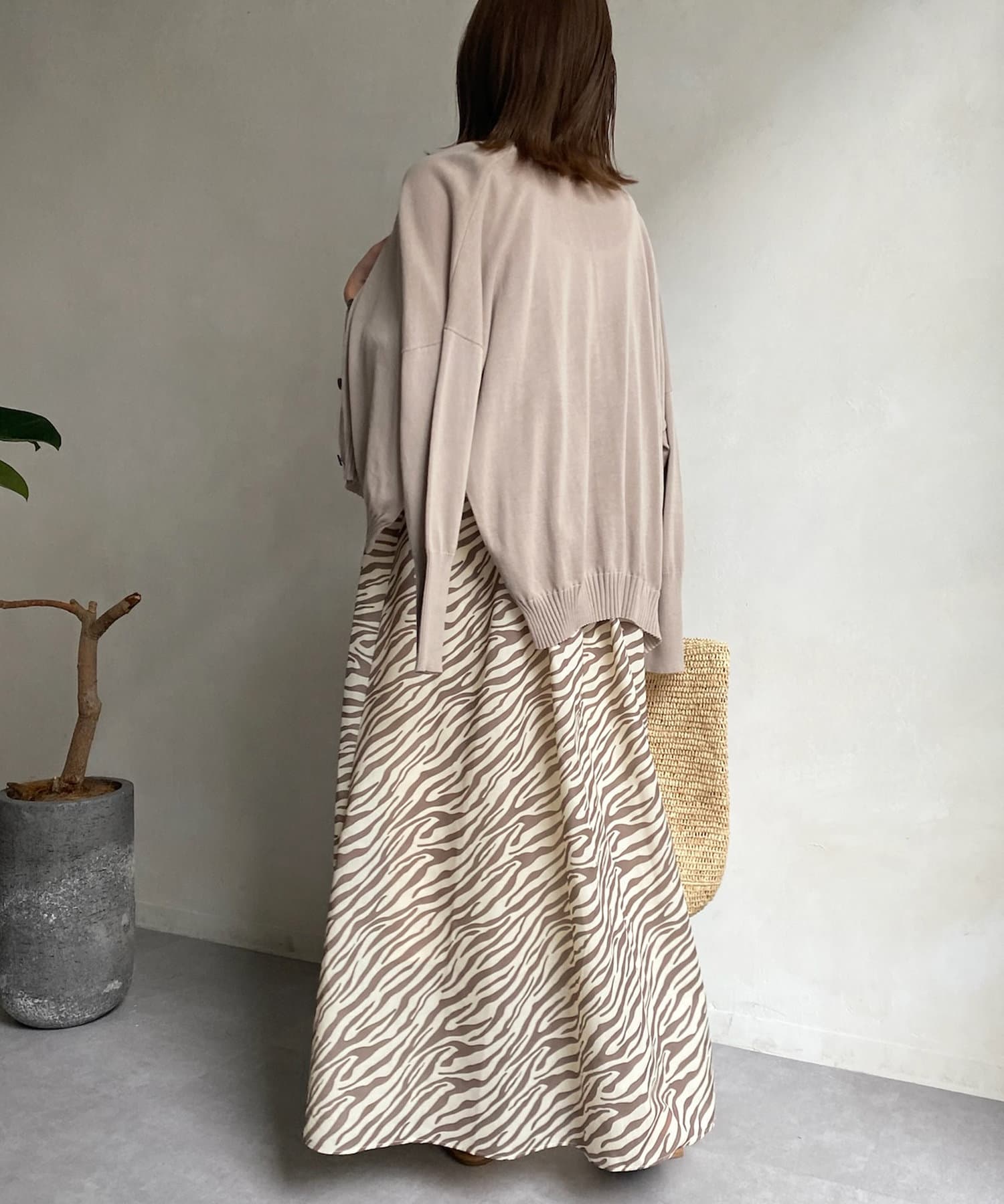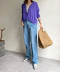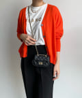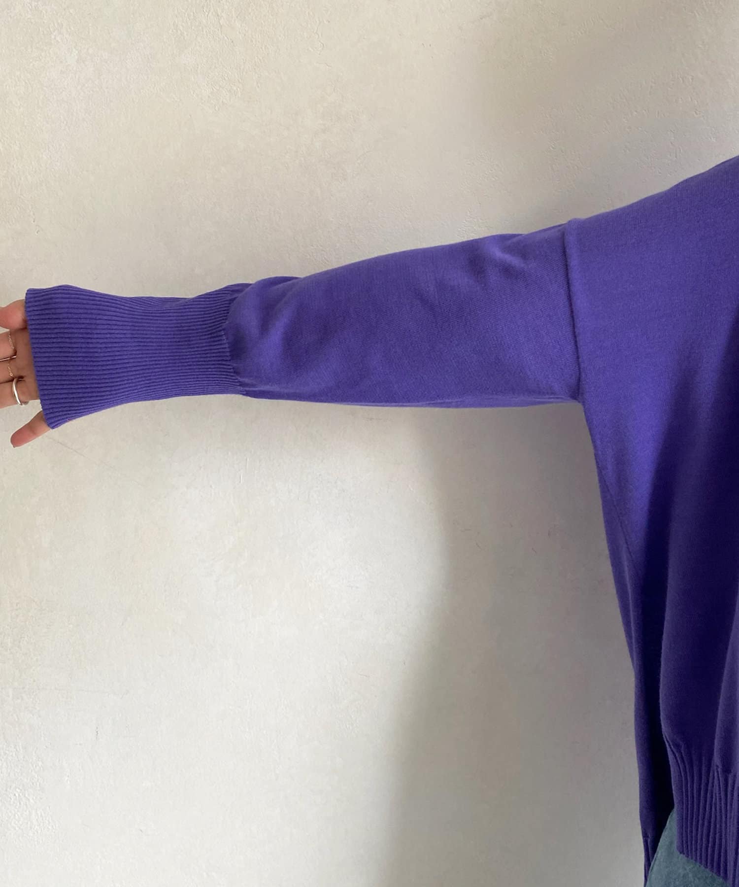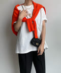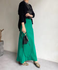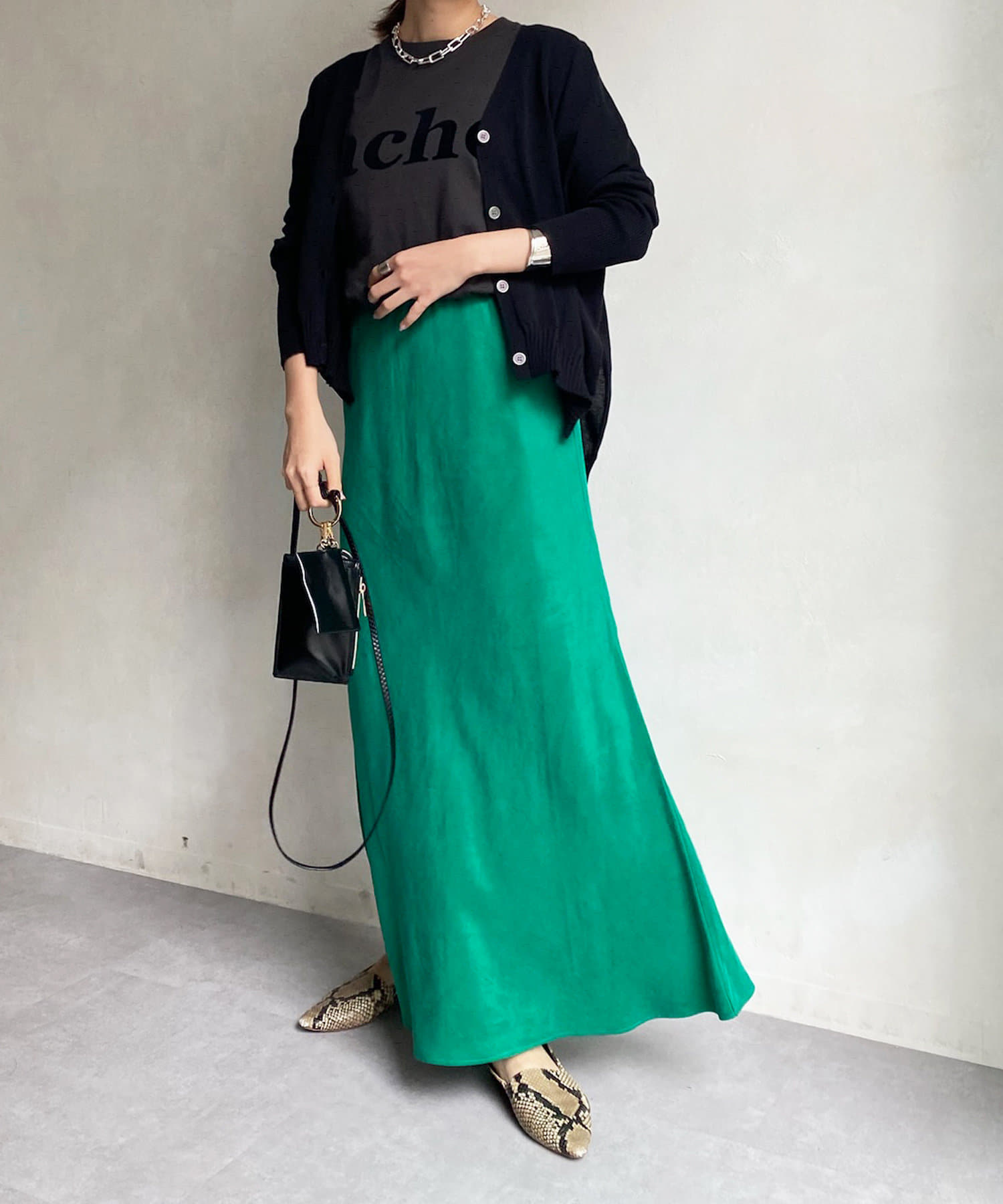 サイドにはざっくりとスリットを入れ、前後差のある丈感に。抜け感たっぷりの印象を与えます。