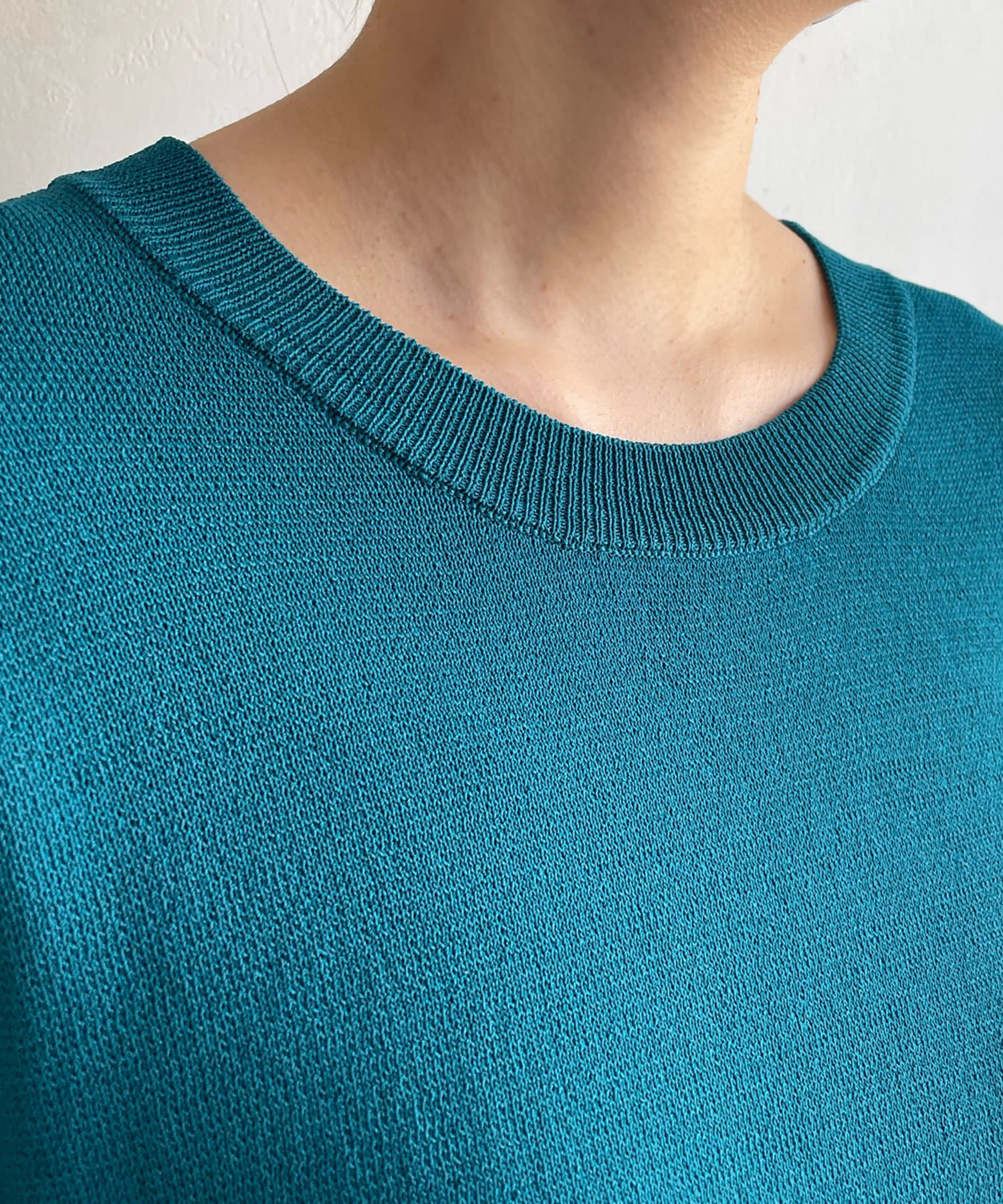 落ち感があり、涼し気な薄手の素材で仕上げたサマーニット。