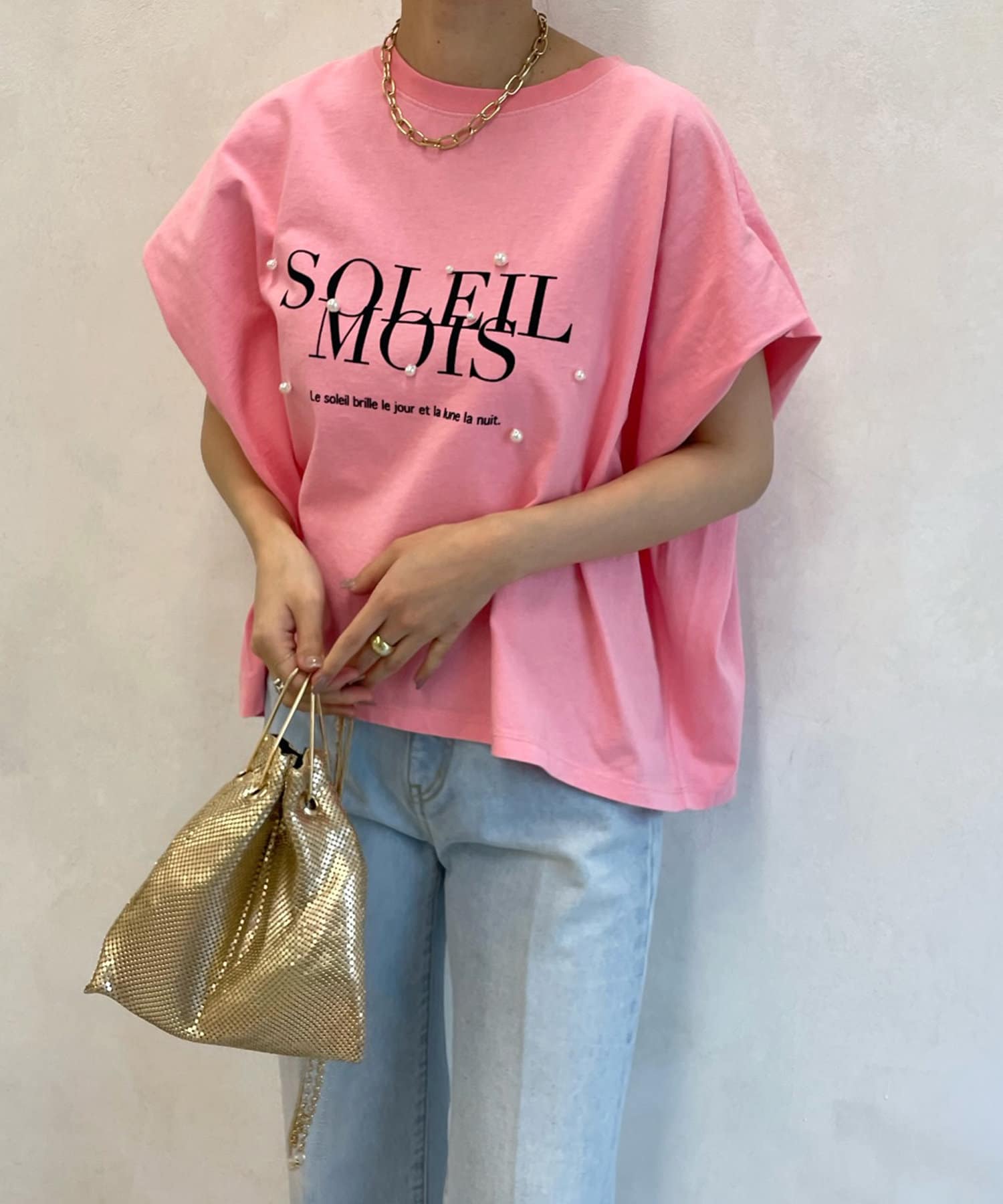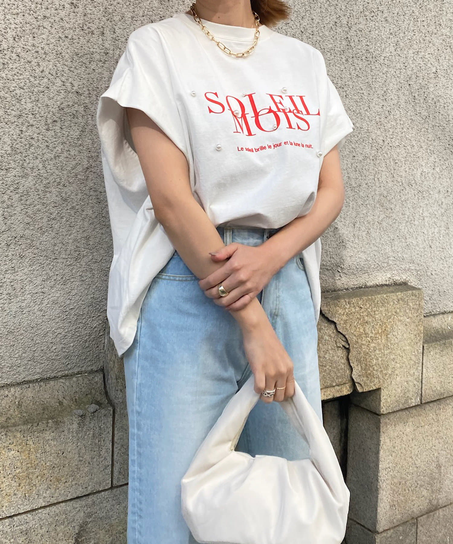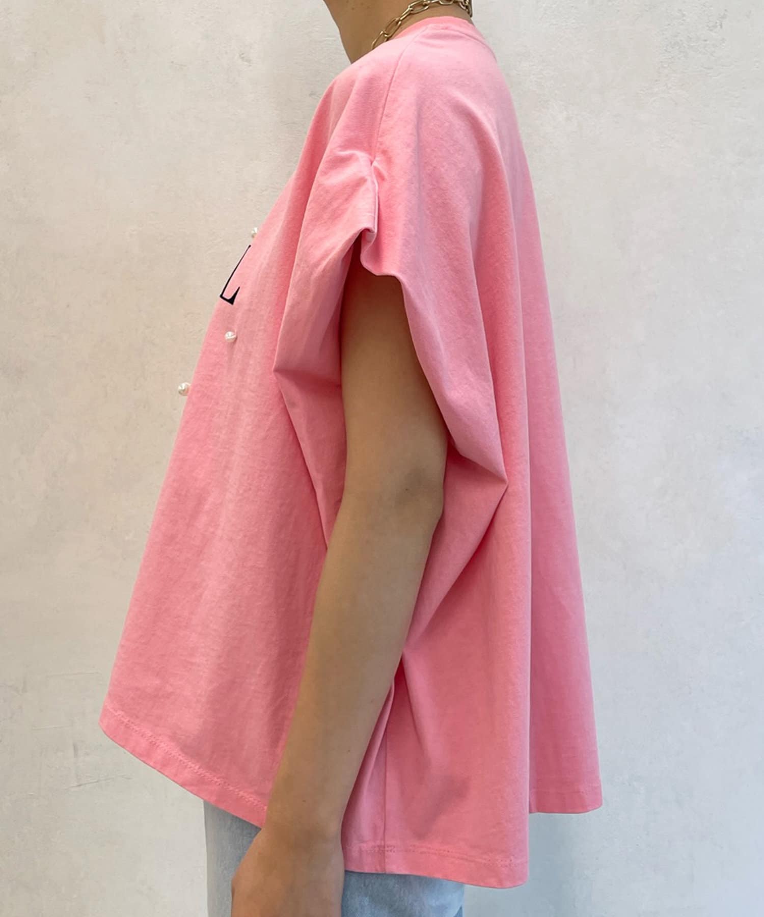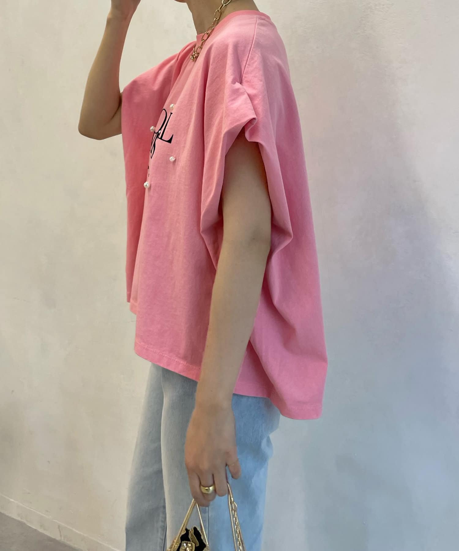 配色に拘った、大人に決まるフロッキーロゴのデザインに、立体的なパールのパーツで、フェミニンな要素をプラス。