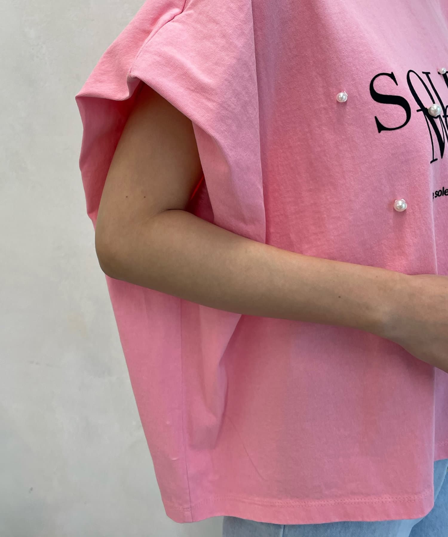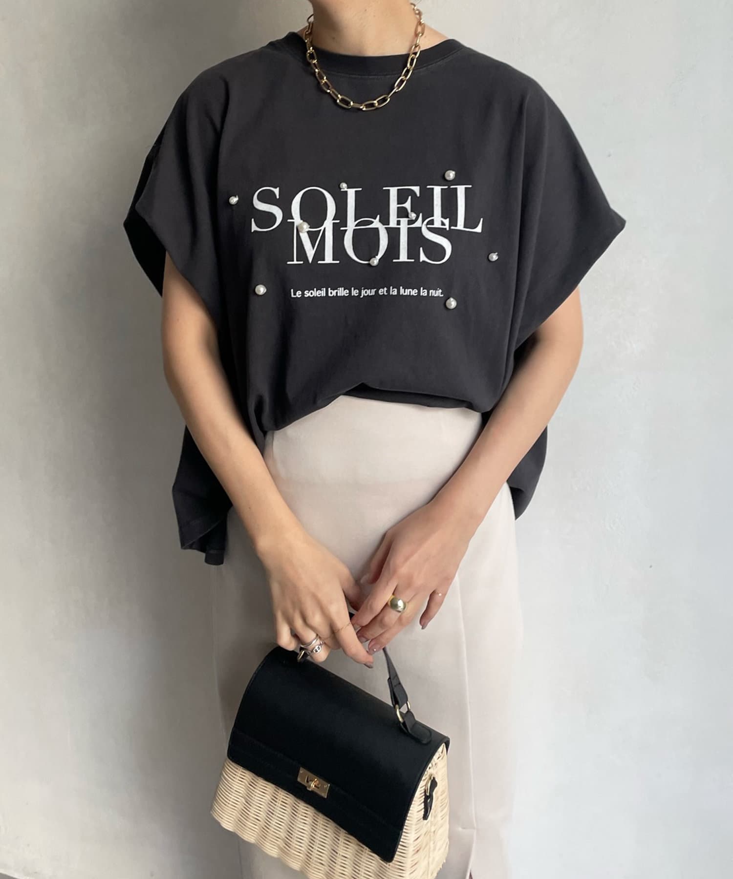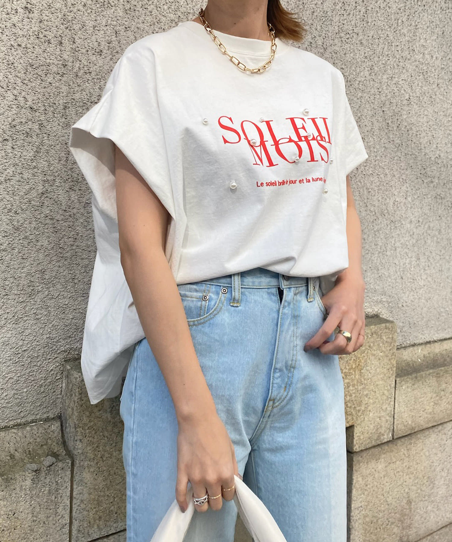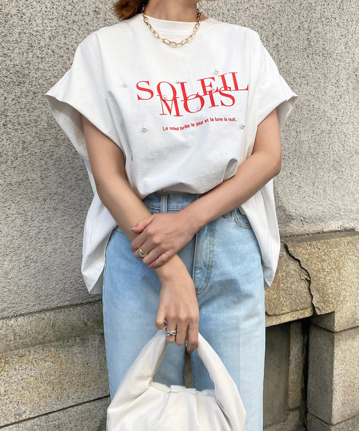 配色に拘った、大人に決まるフロッキーロゴのデザインに、立体的なパールのパーツで、フェミニンな要素をプラス。
