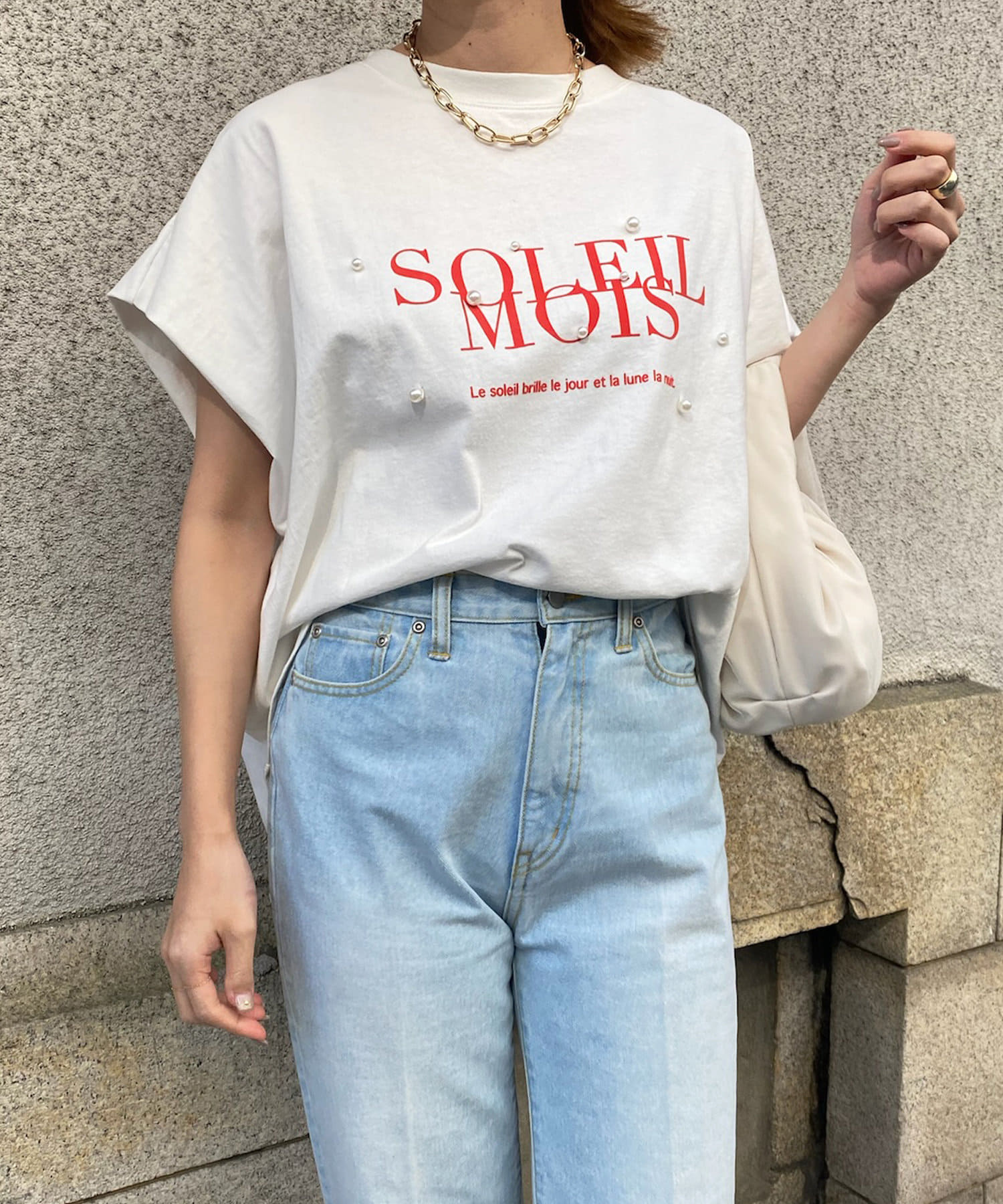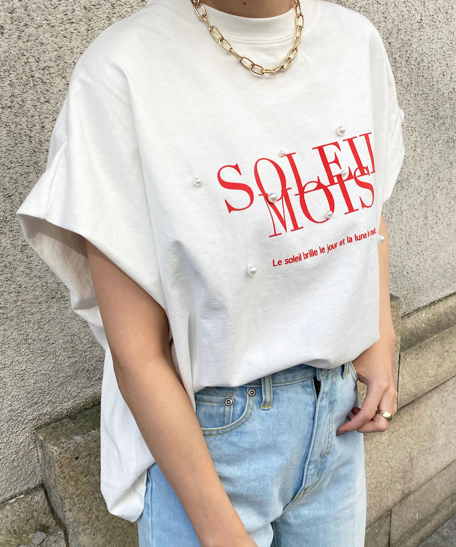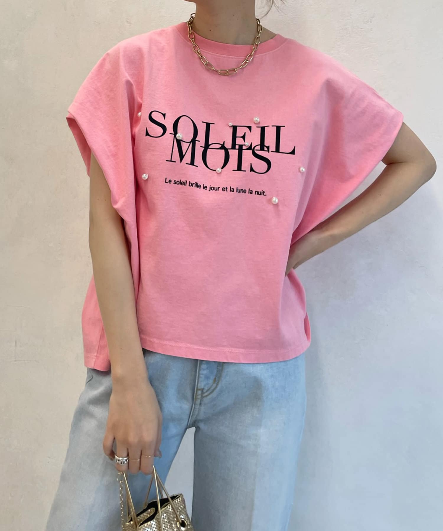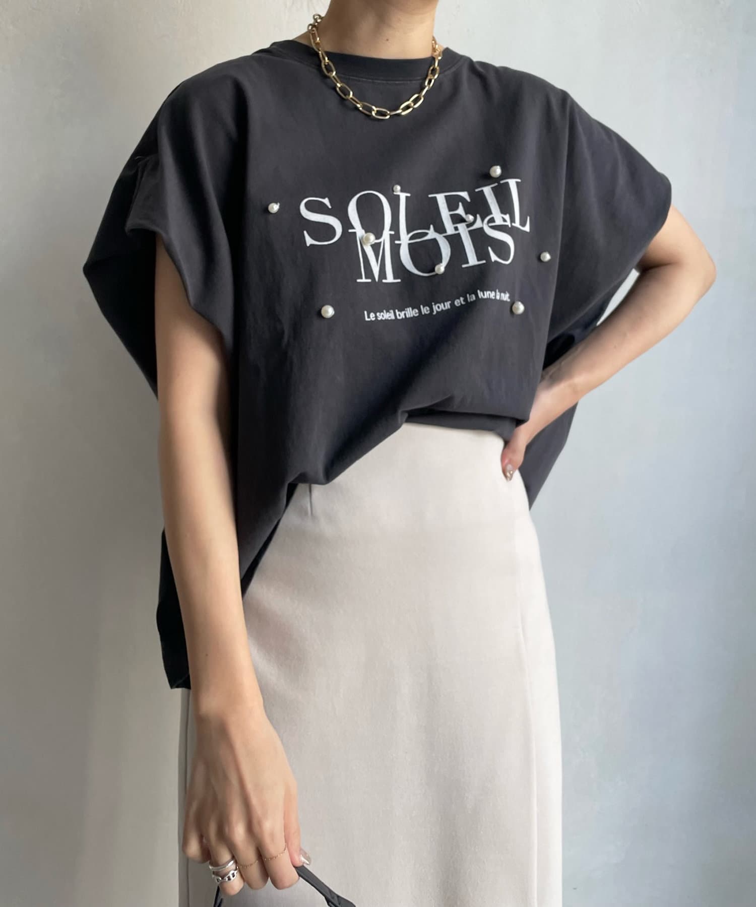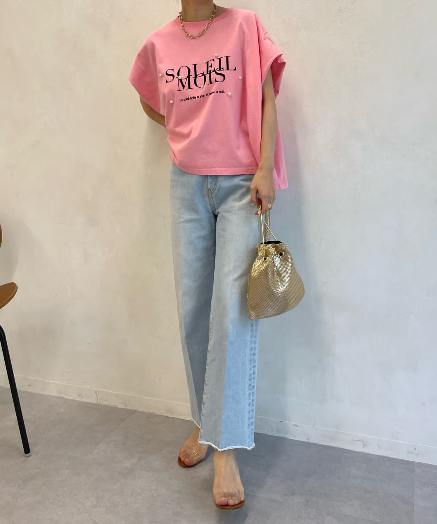 配色に拘った、大人に決まるフロッキーロゴのデザインに、立体的なパールのパーツで、フェミニンな要素をプラス。