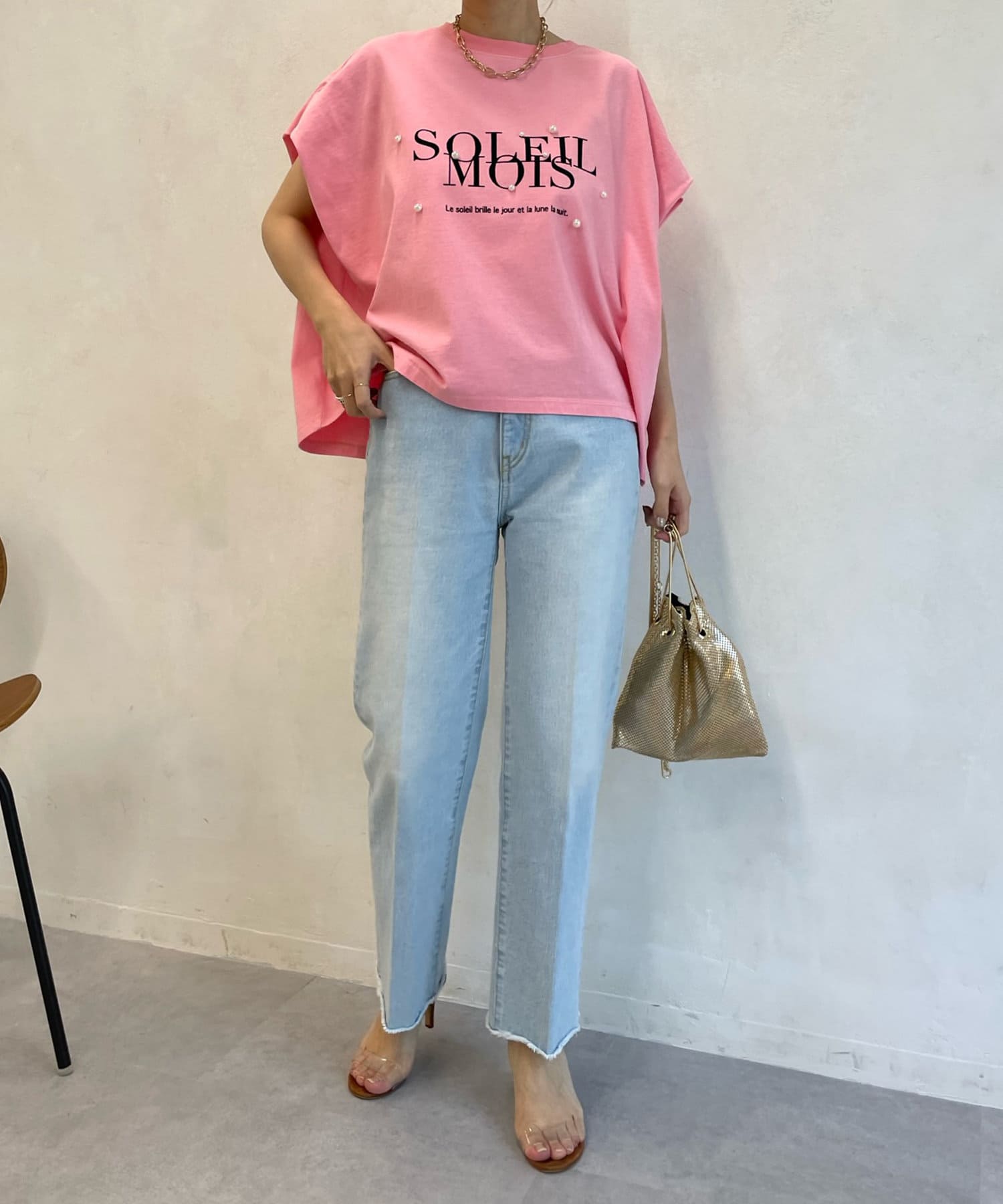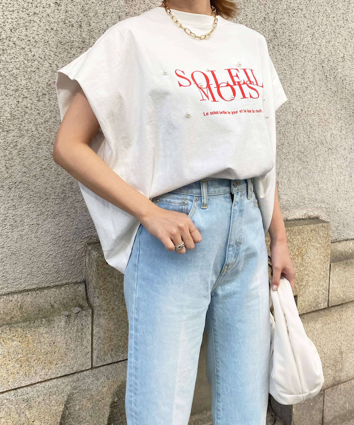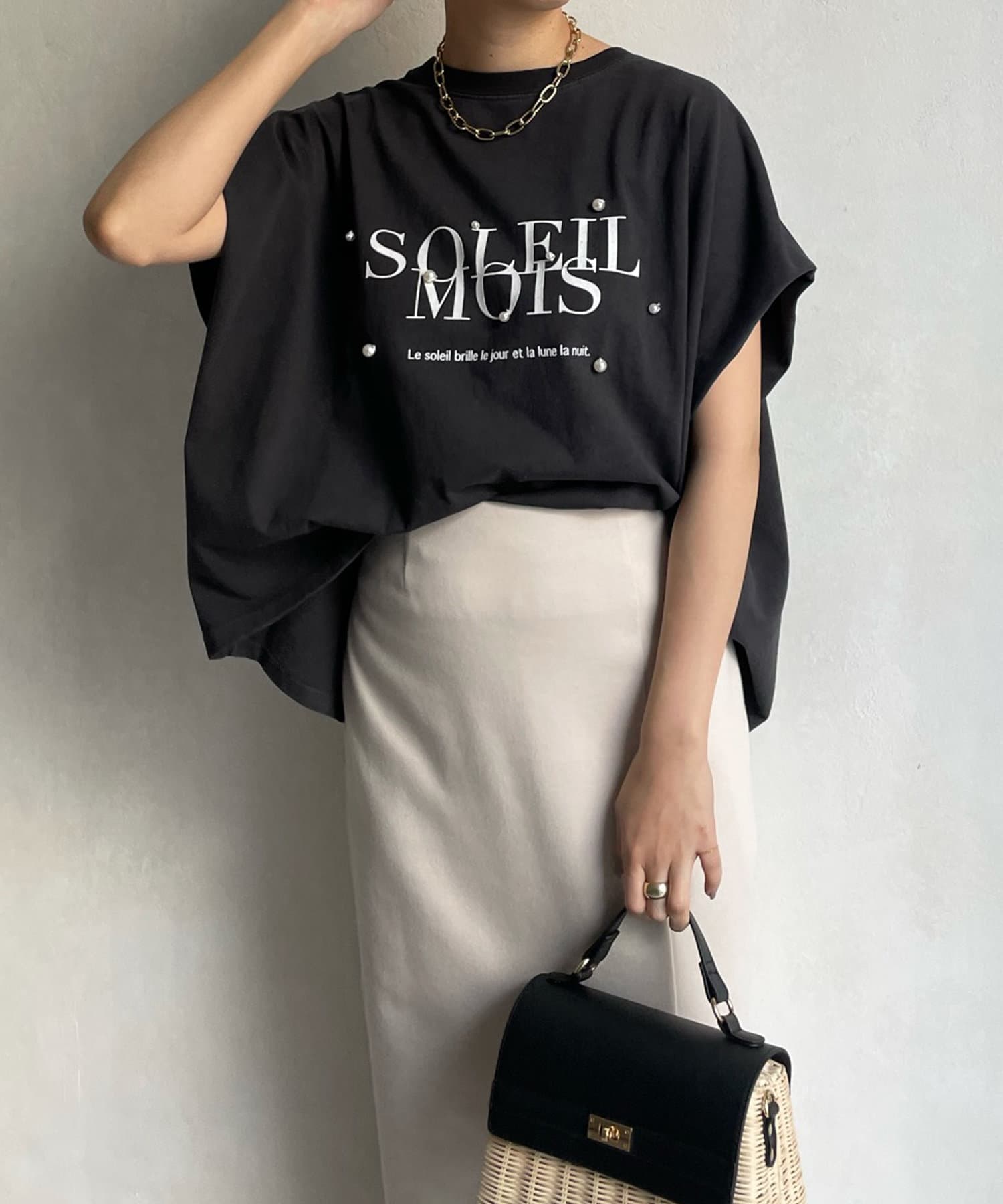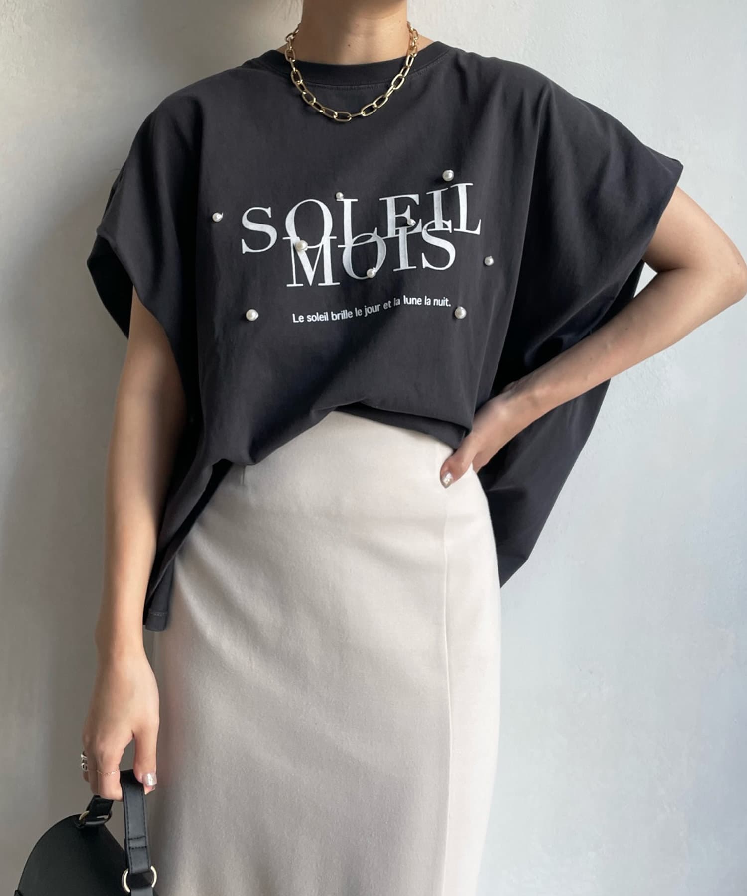 配色に拘った、大人に決まるフロッキーロゴのデザインに、立体的なパールのパーツで、フェミニンな要素をプラス。