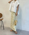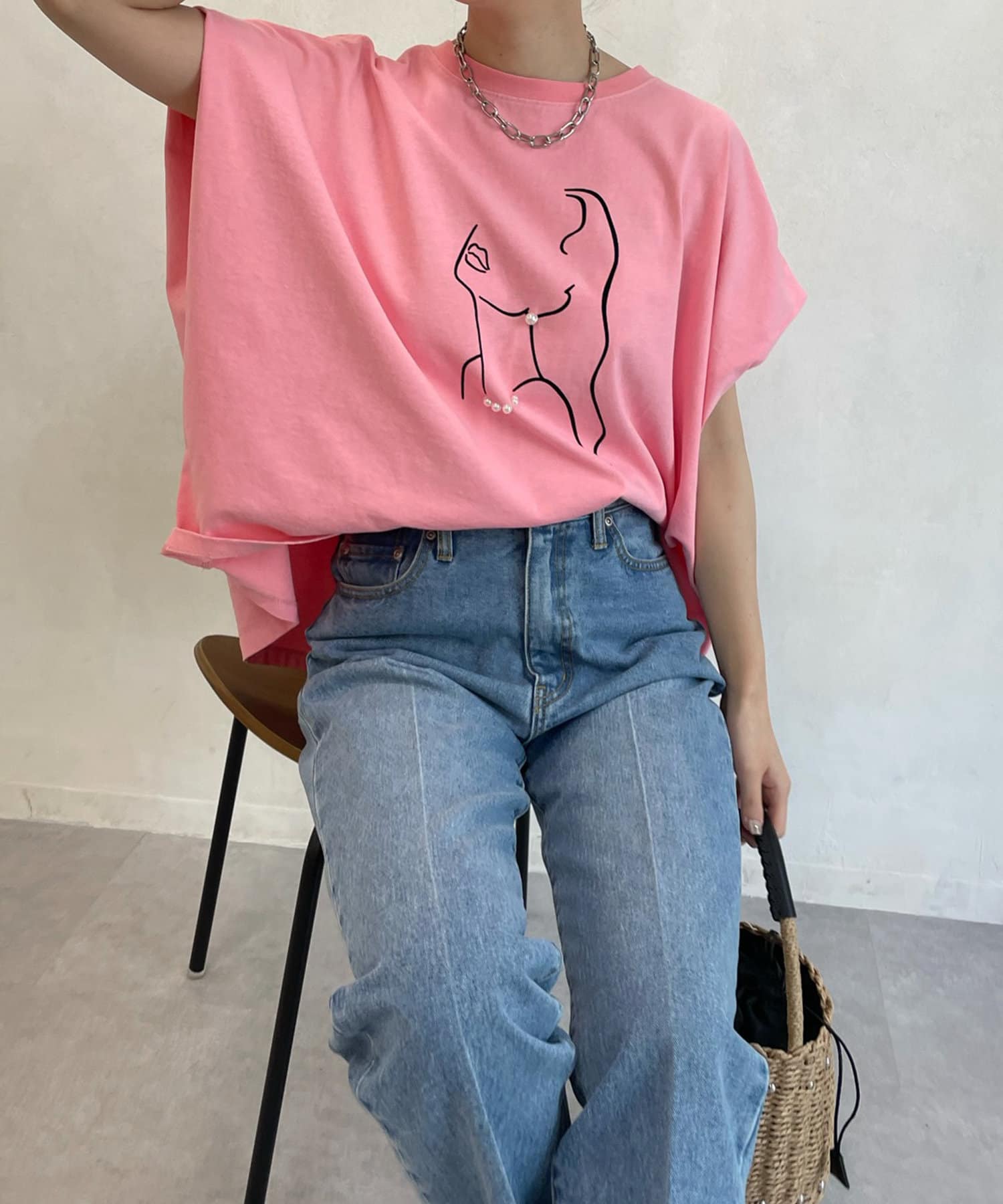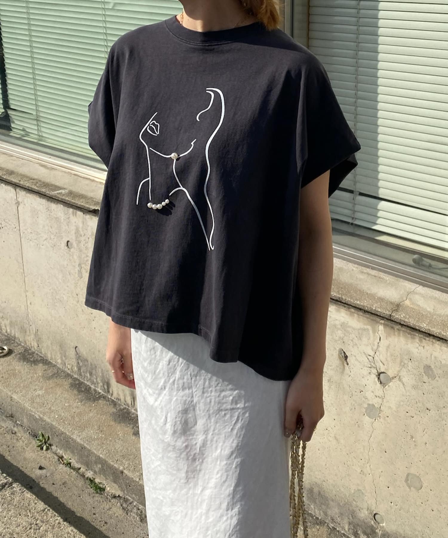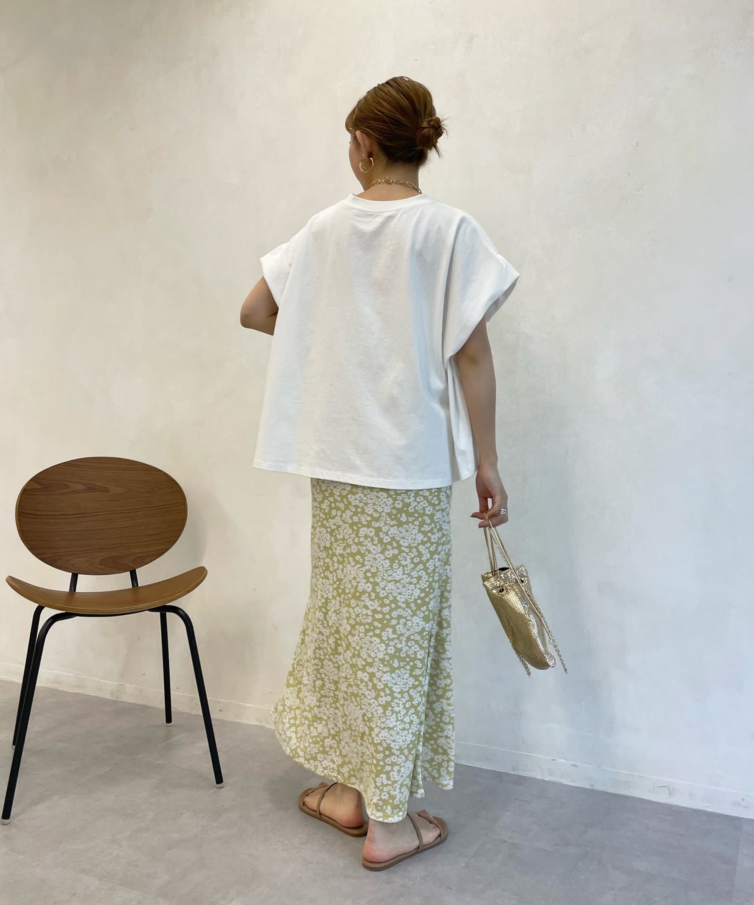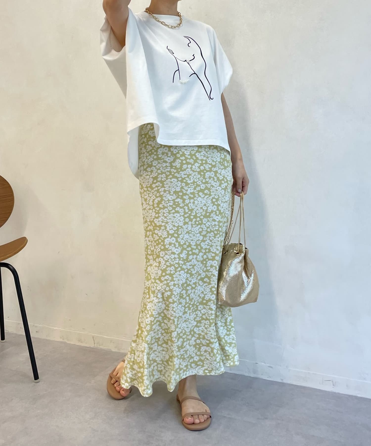 手描き風のプリントに立体的なパールのパーツで、フェミニンな要素をプラス。