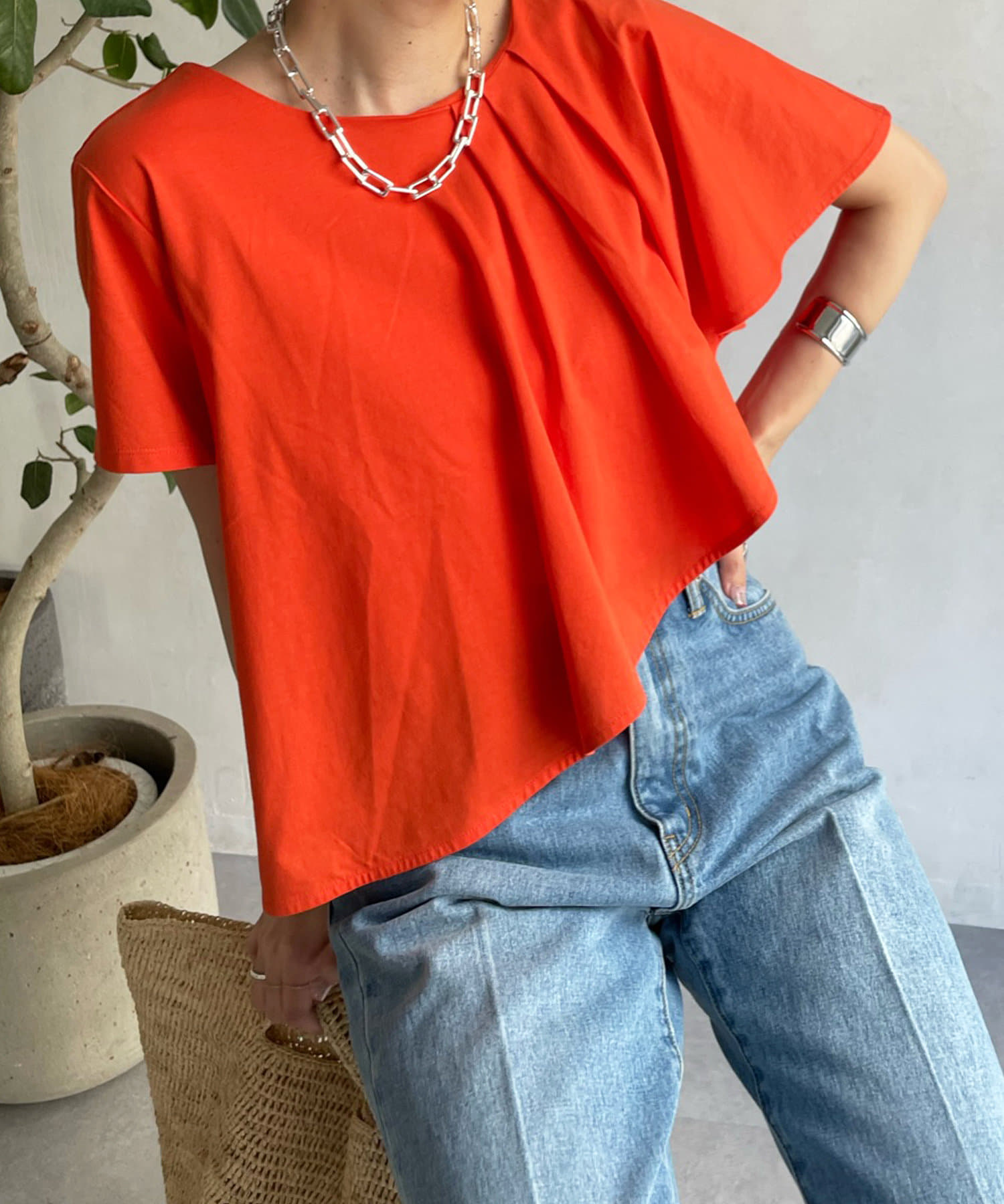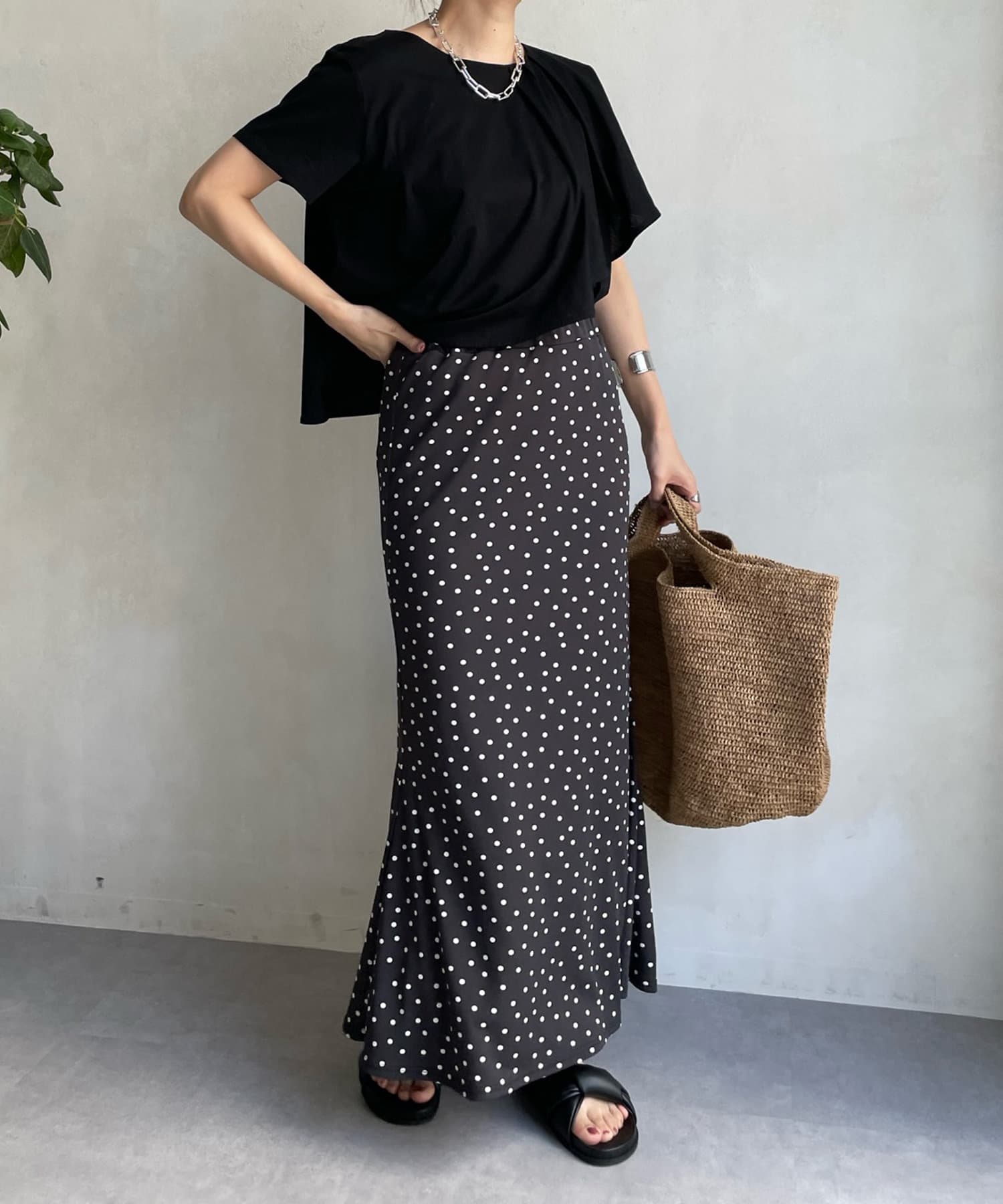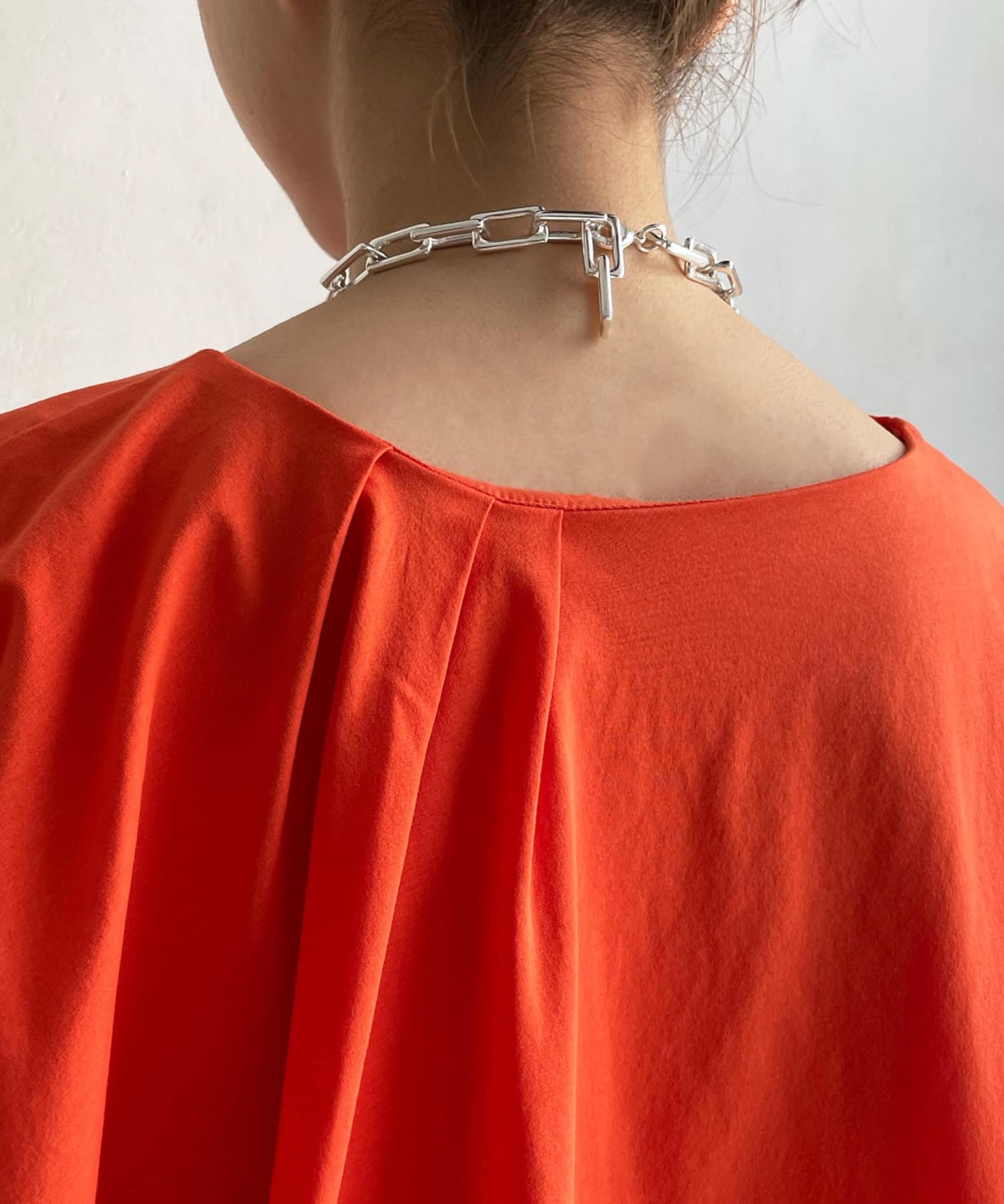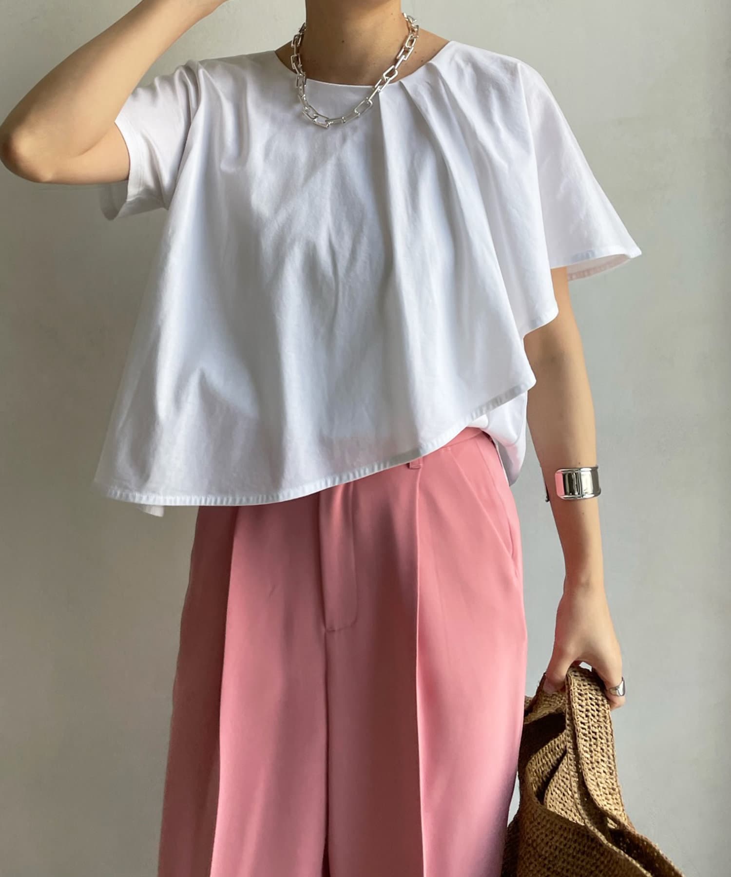 綿100%のカットソー素材で仕上げた綺麗見え抜群の1着。