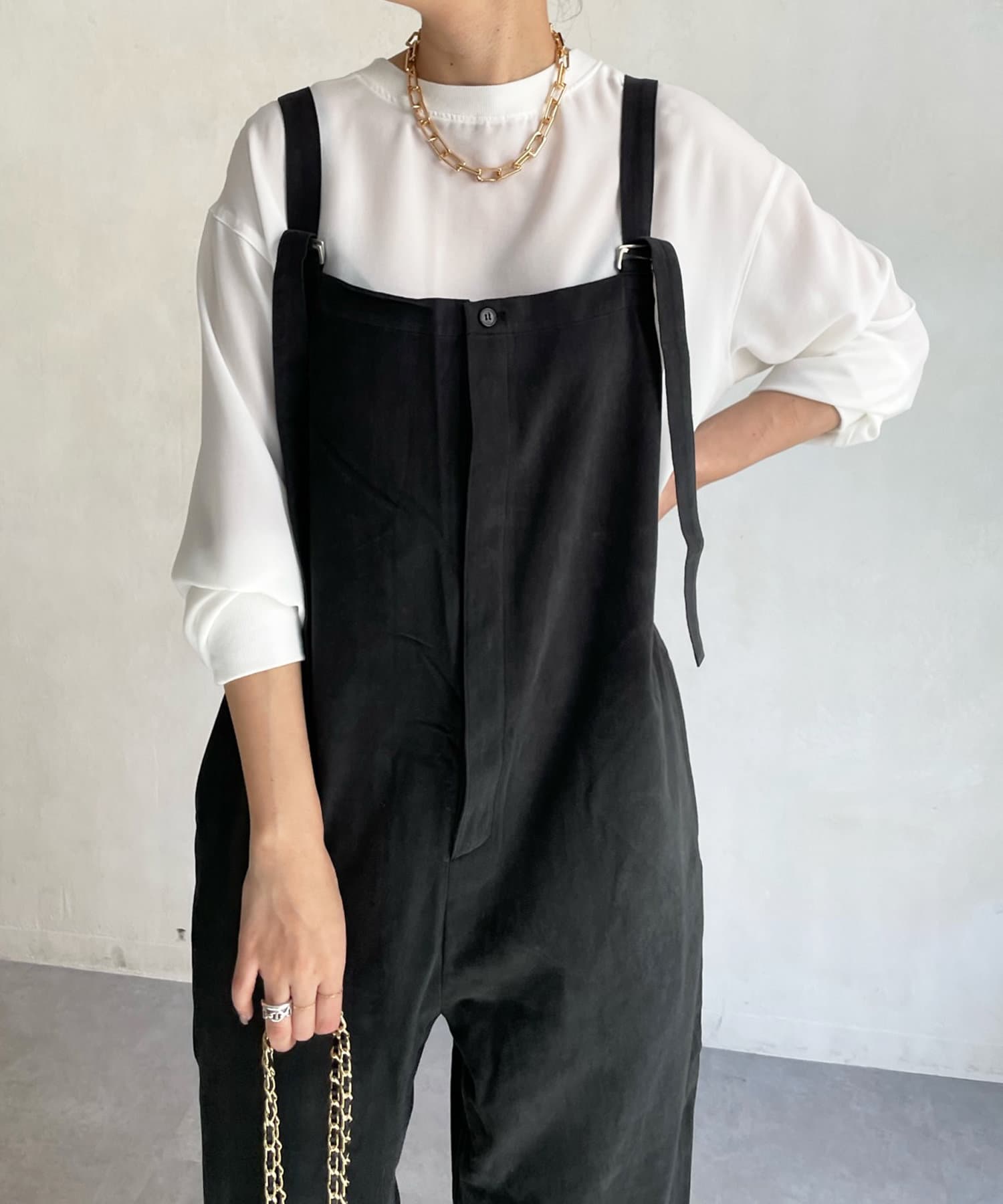 オールシーズン愛用出来る、ゆったりとしたシルエットが魅力のオールインワン。