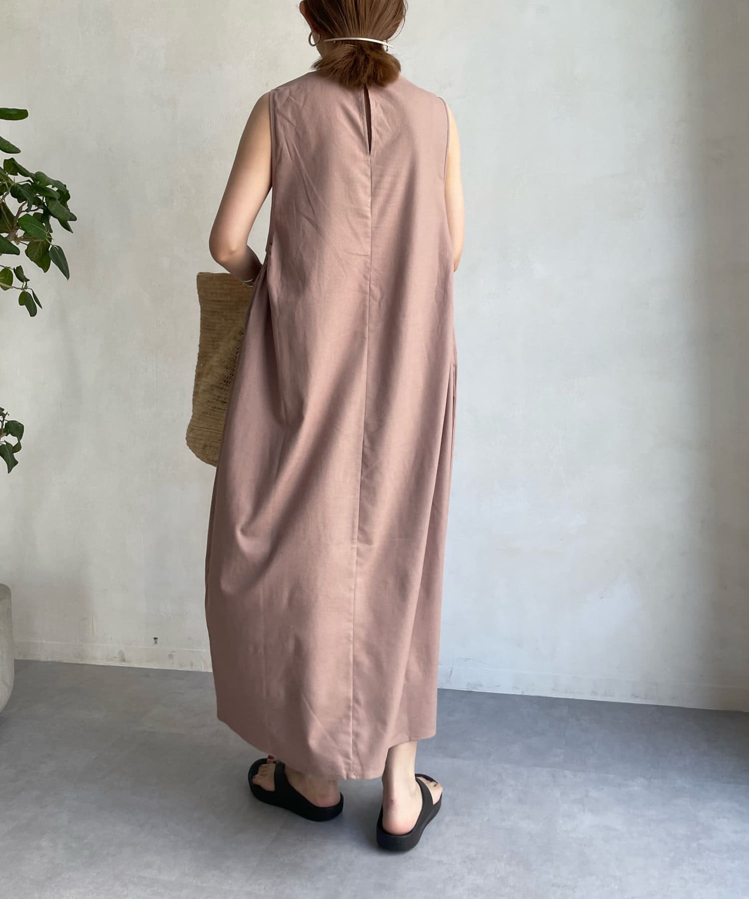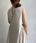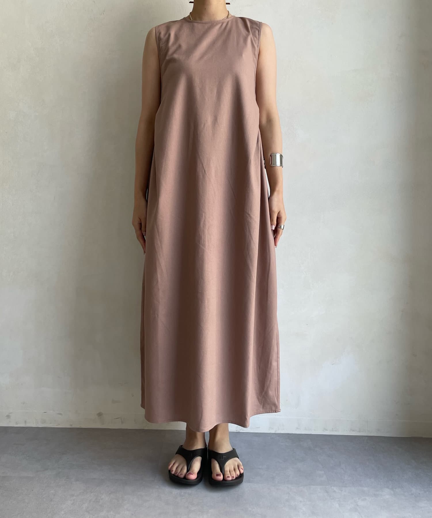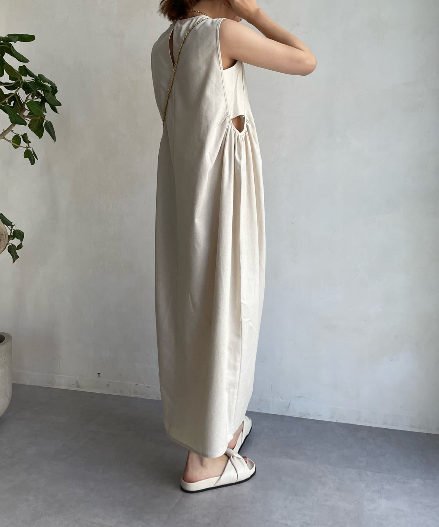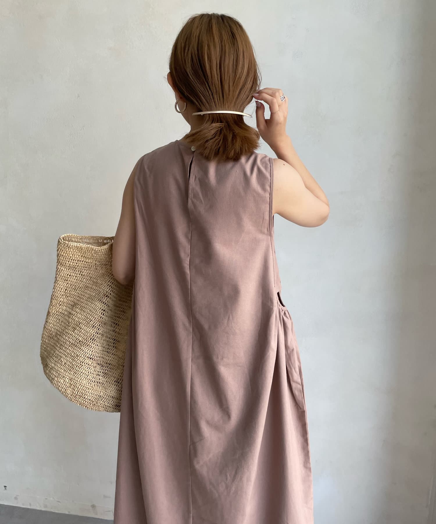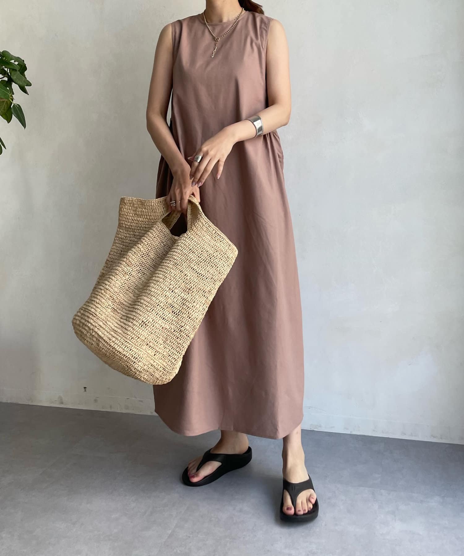 サイドにギャザーもあり、ボディーラインを拾わないシルエットが春夏に着心地の良いワンピースです。