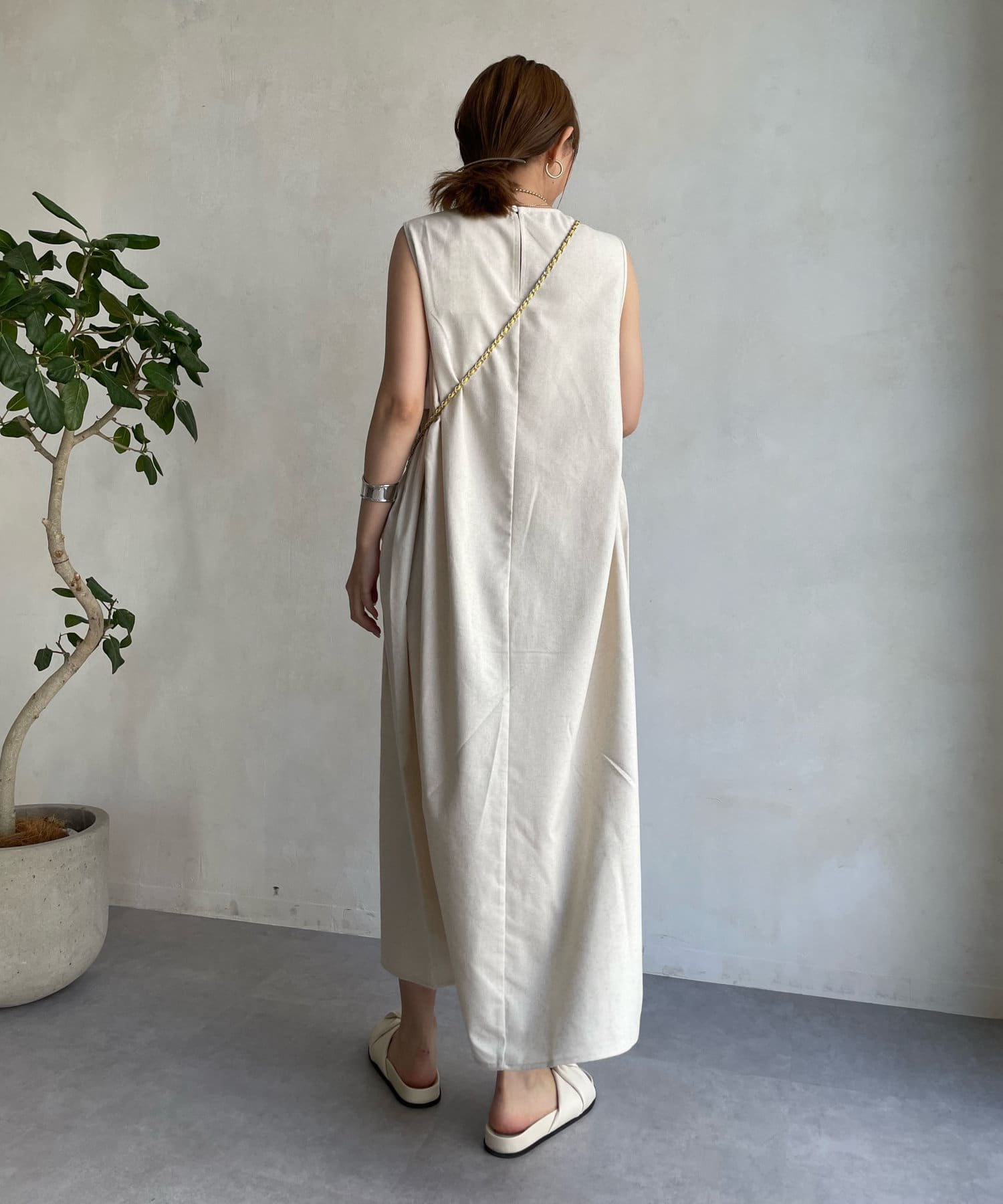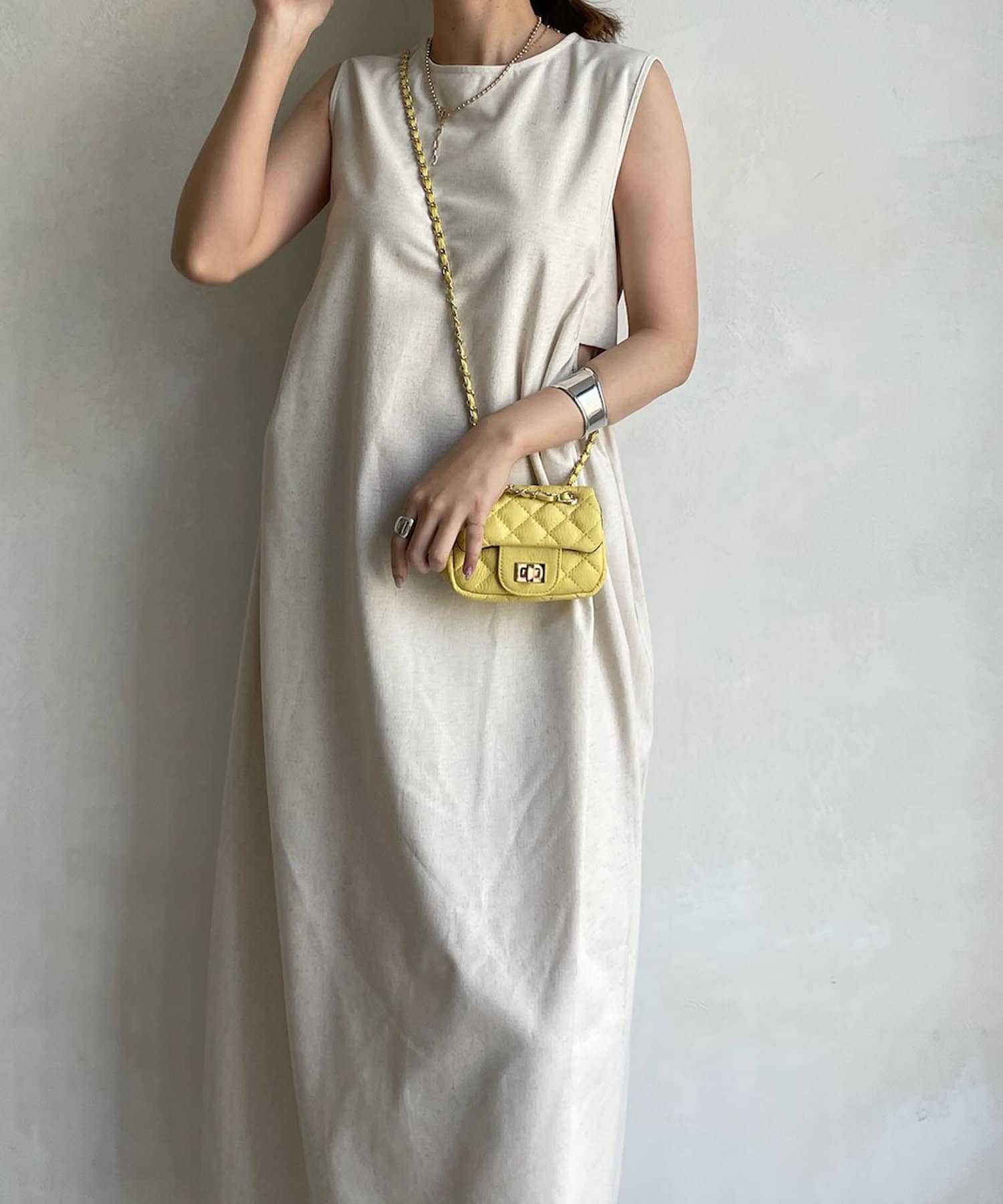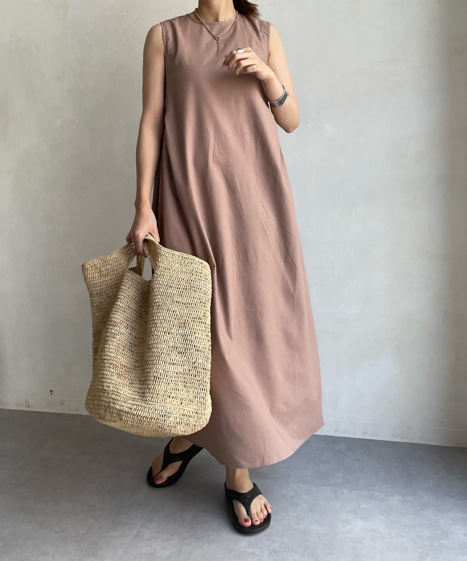 シンプルなので、ボリュームのあるアクセサリーをポイントにしたり、春夏のシーズン小物で雰囲気を変えてお楽しみいただけますよ。