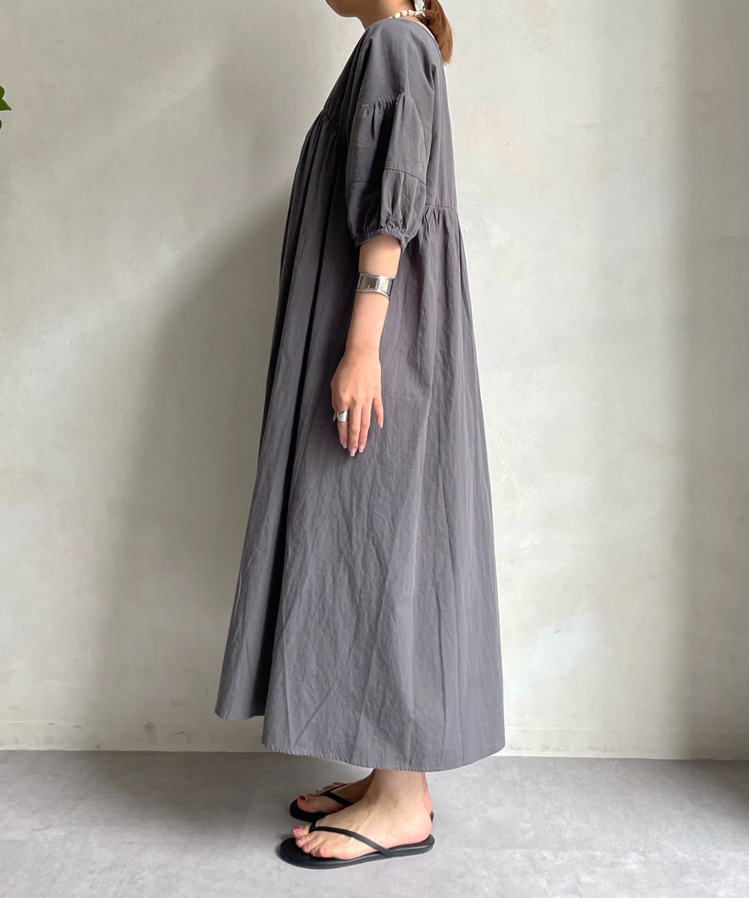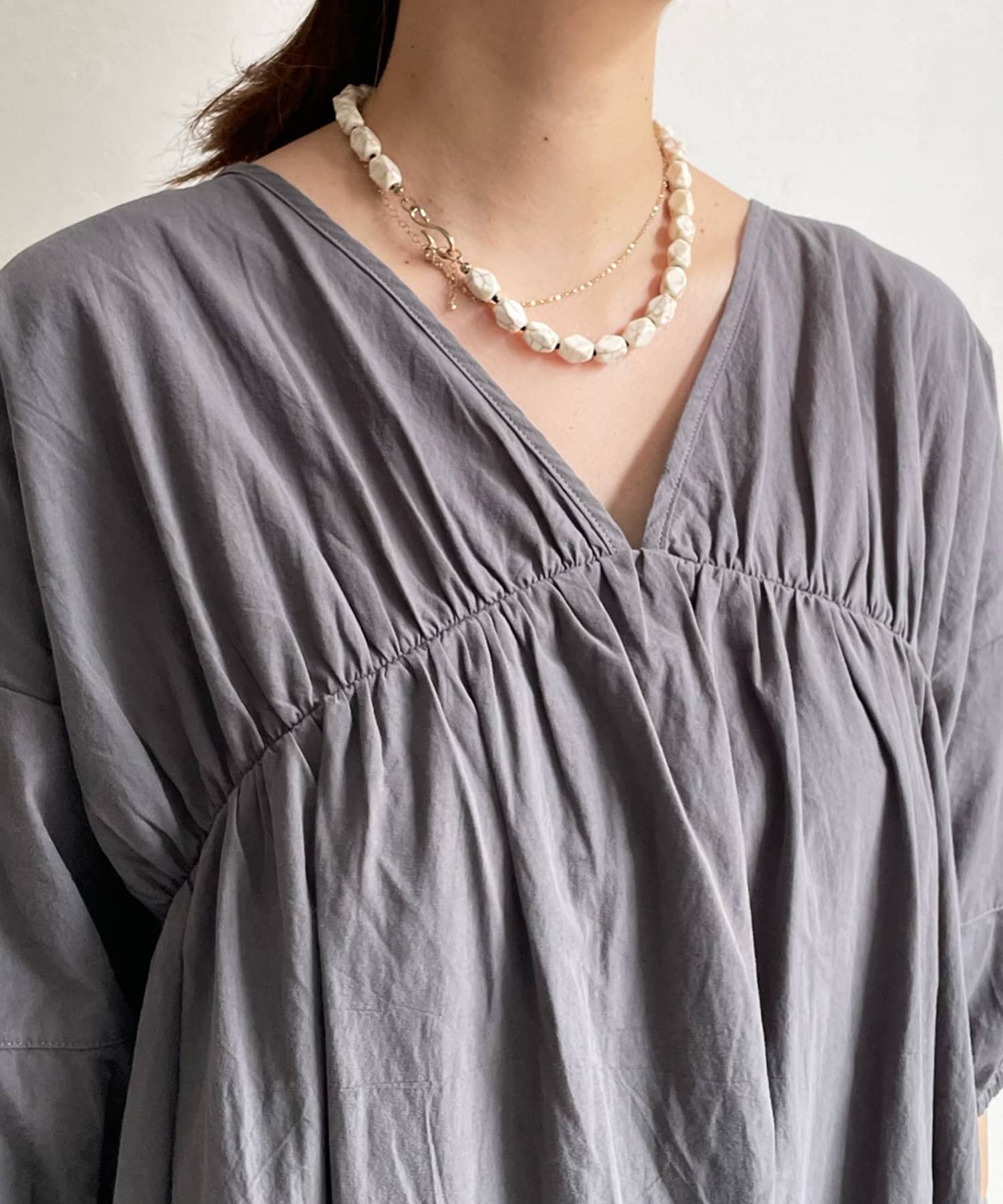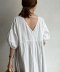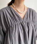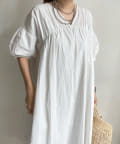 ギャザーをたっぷり施し、お袖はぽわんとバルーンシルエットで仕上げかわいらしさをプラス。