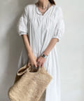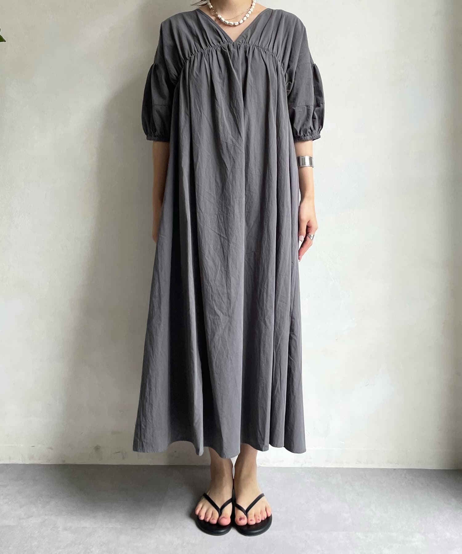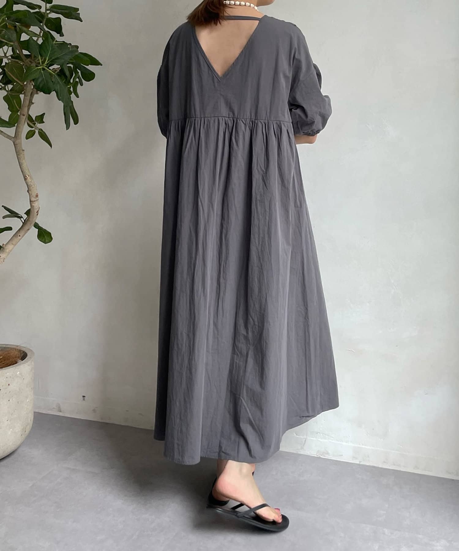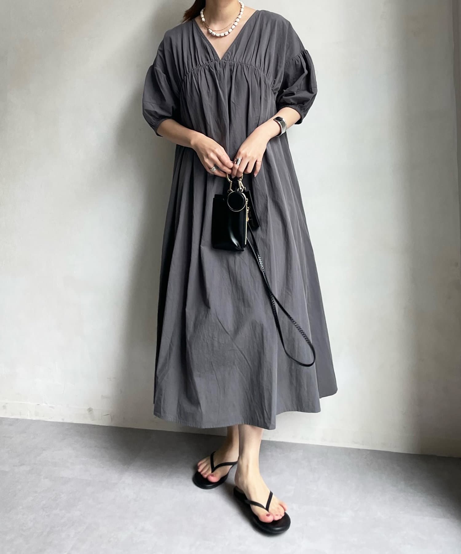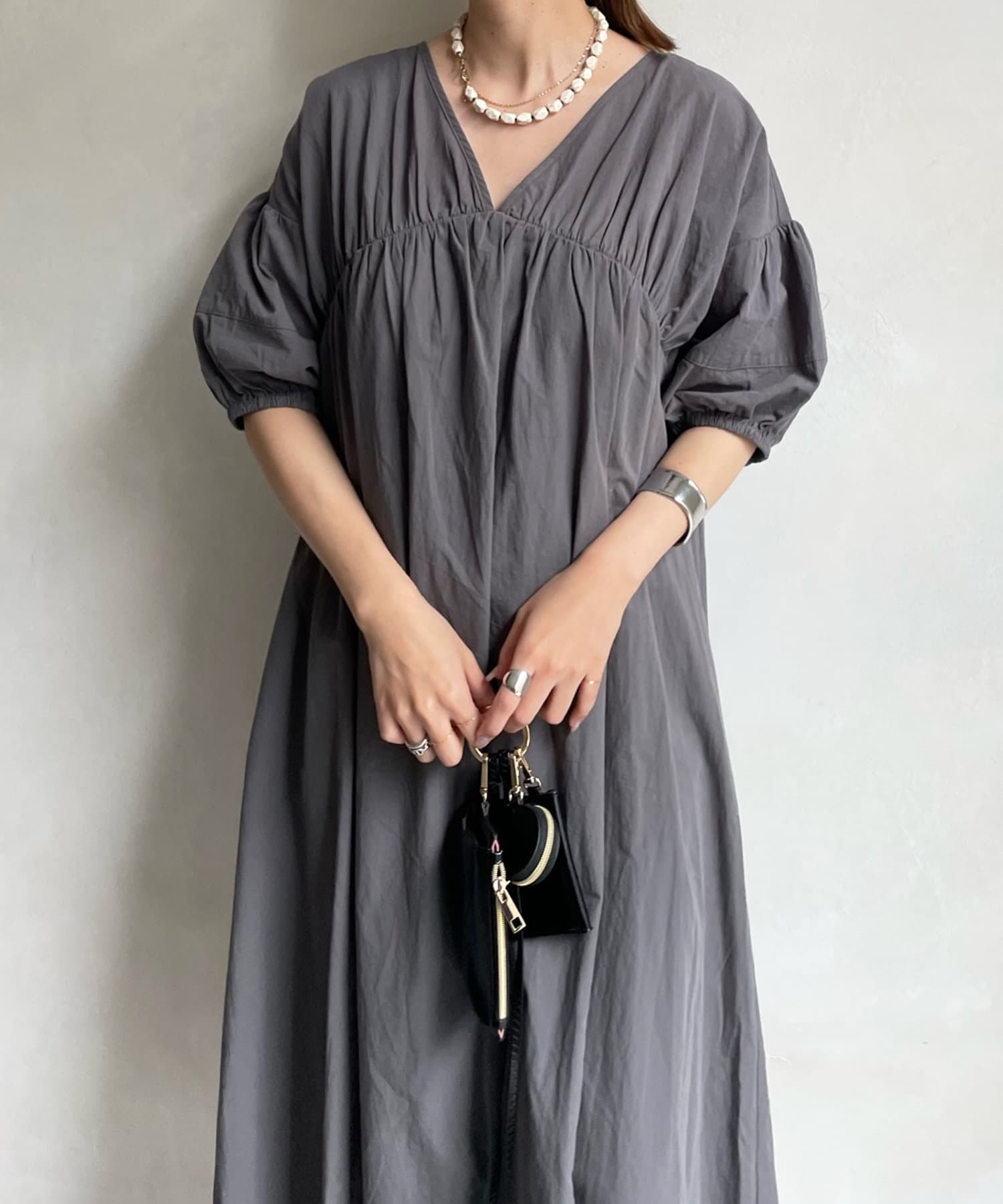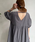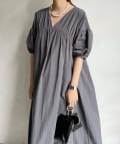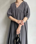 【WEB限定】Vネック切替ギャザーワンピース