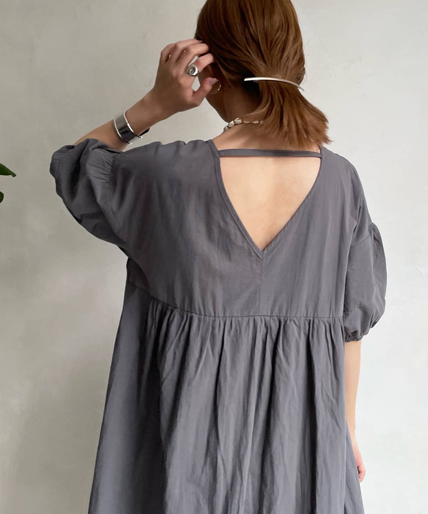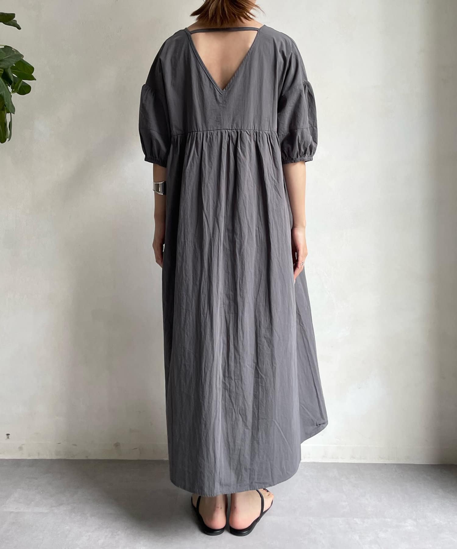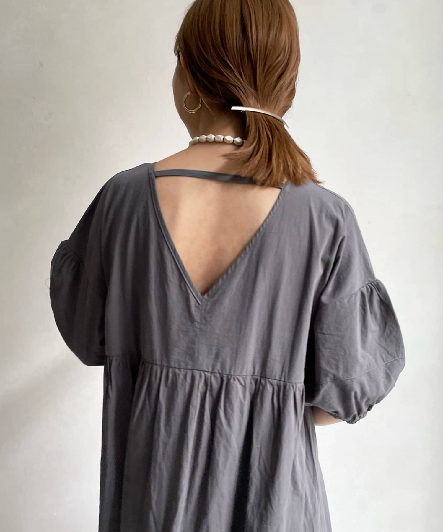 前後共にVネックのすっきり見えがポイントのワンピース。