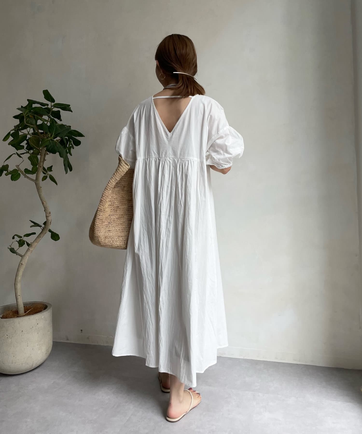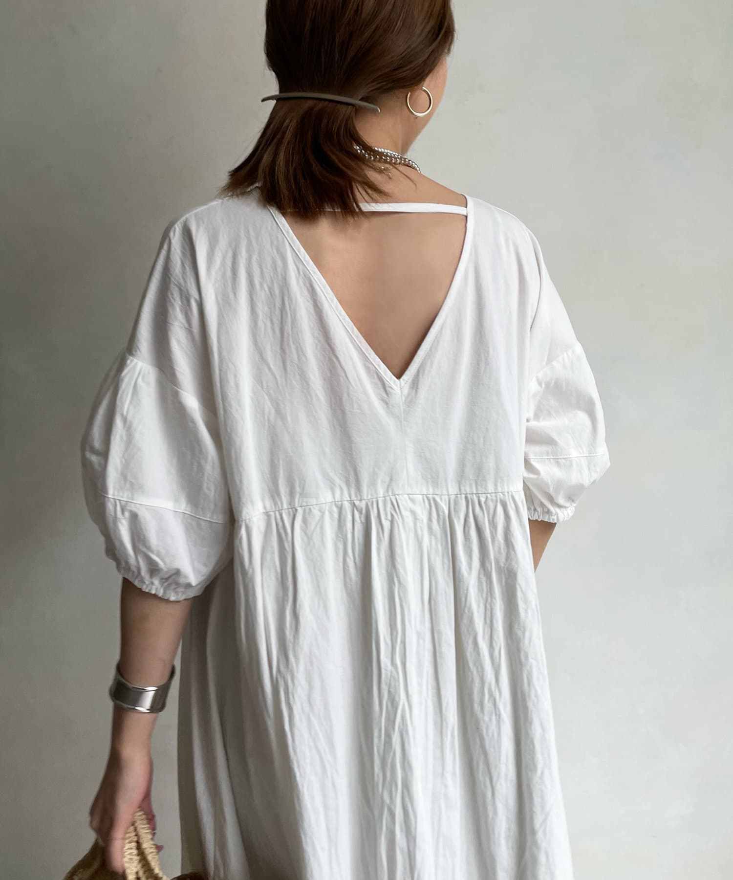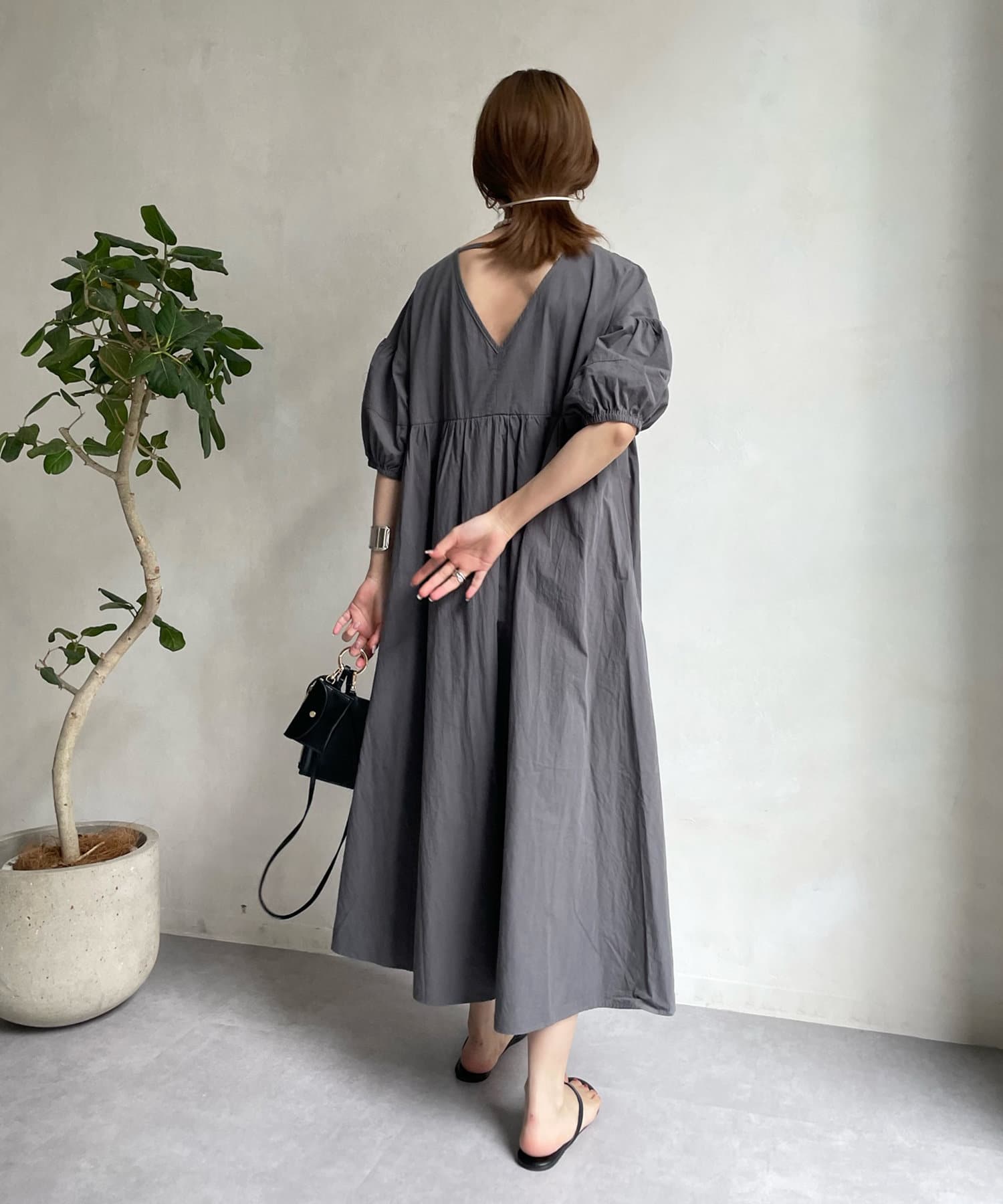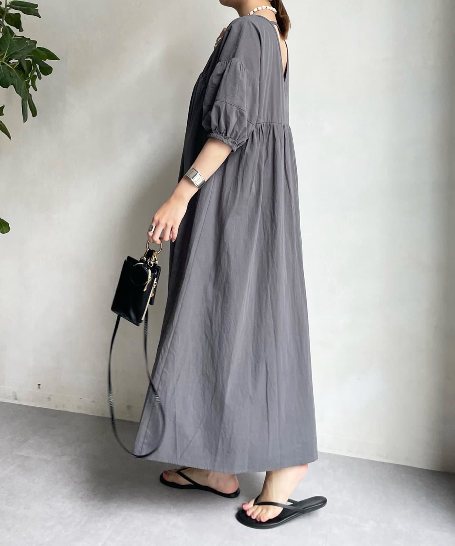 前後共にVネックのすっきり見えがポイントのワンピース。