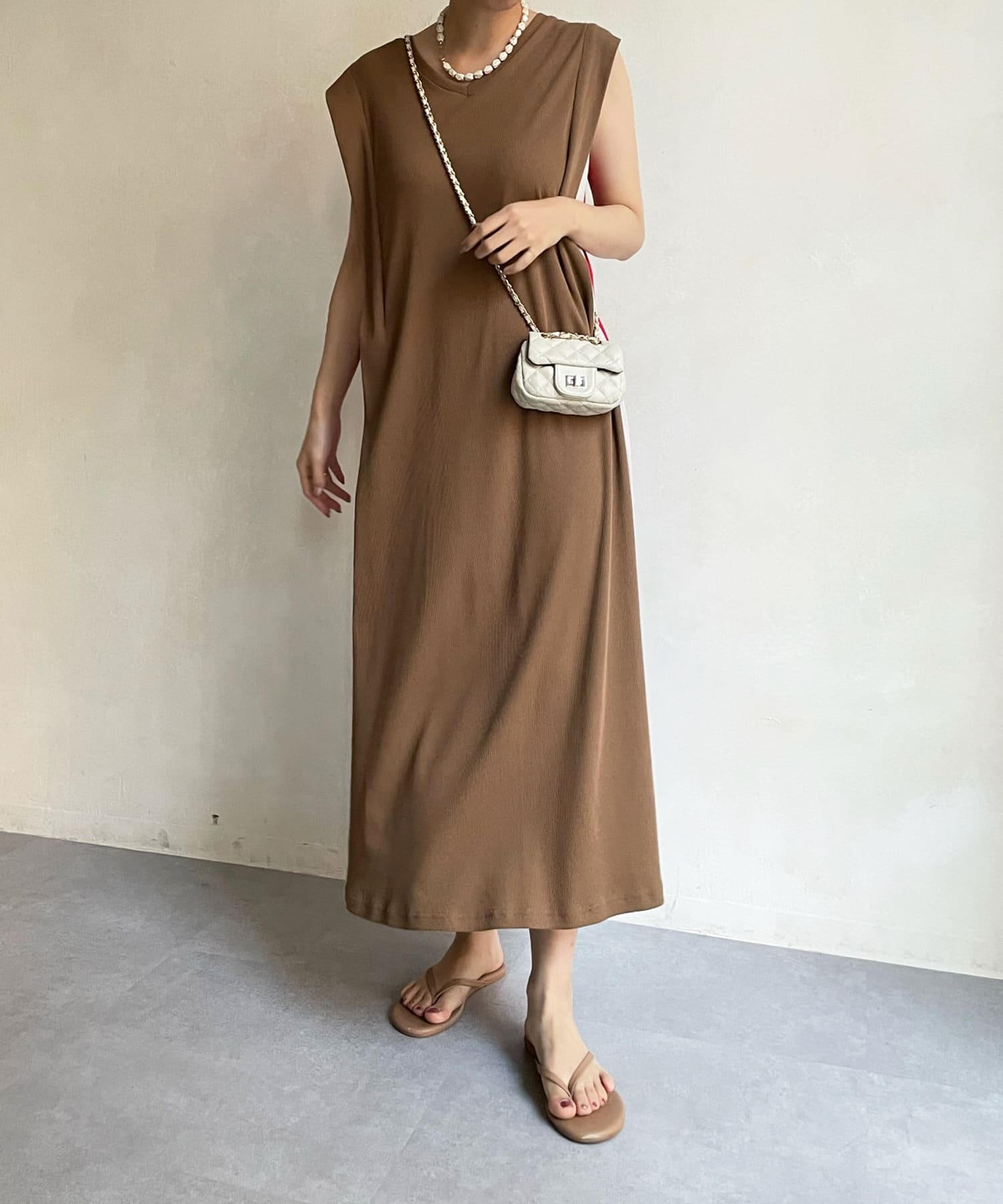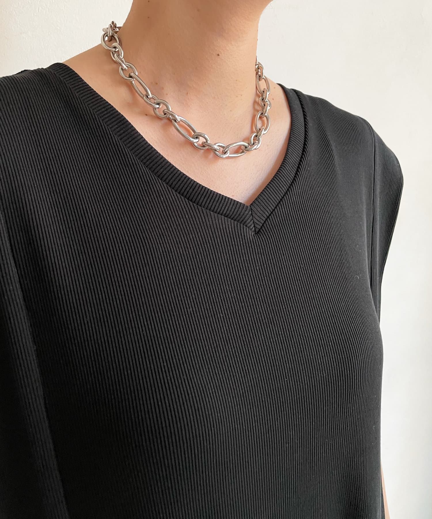 柔らかく着心地の良いリブ素材でボディーラインを拾わず、ノンストレスで着用頂けます◎