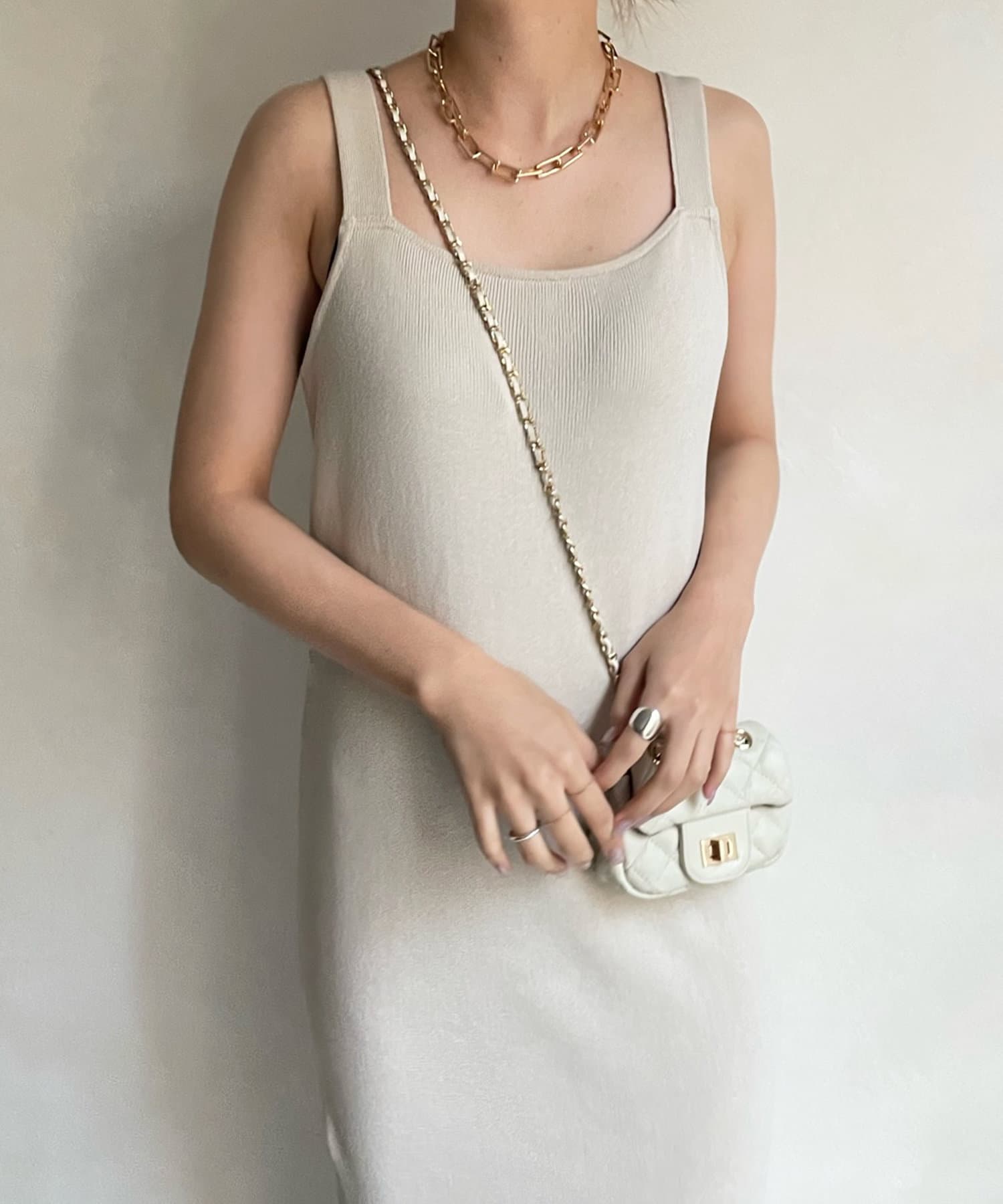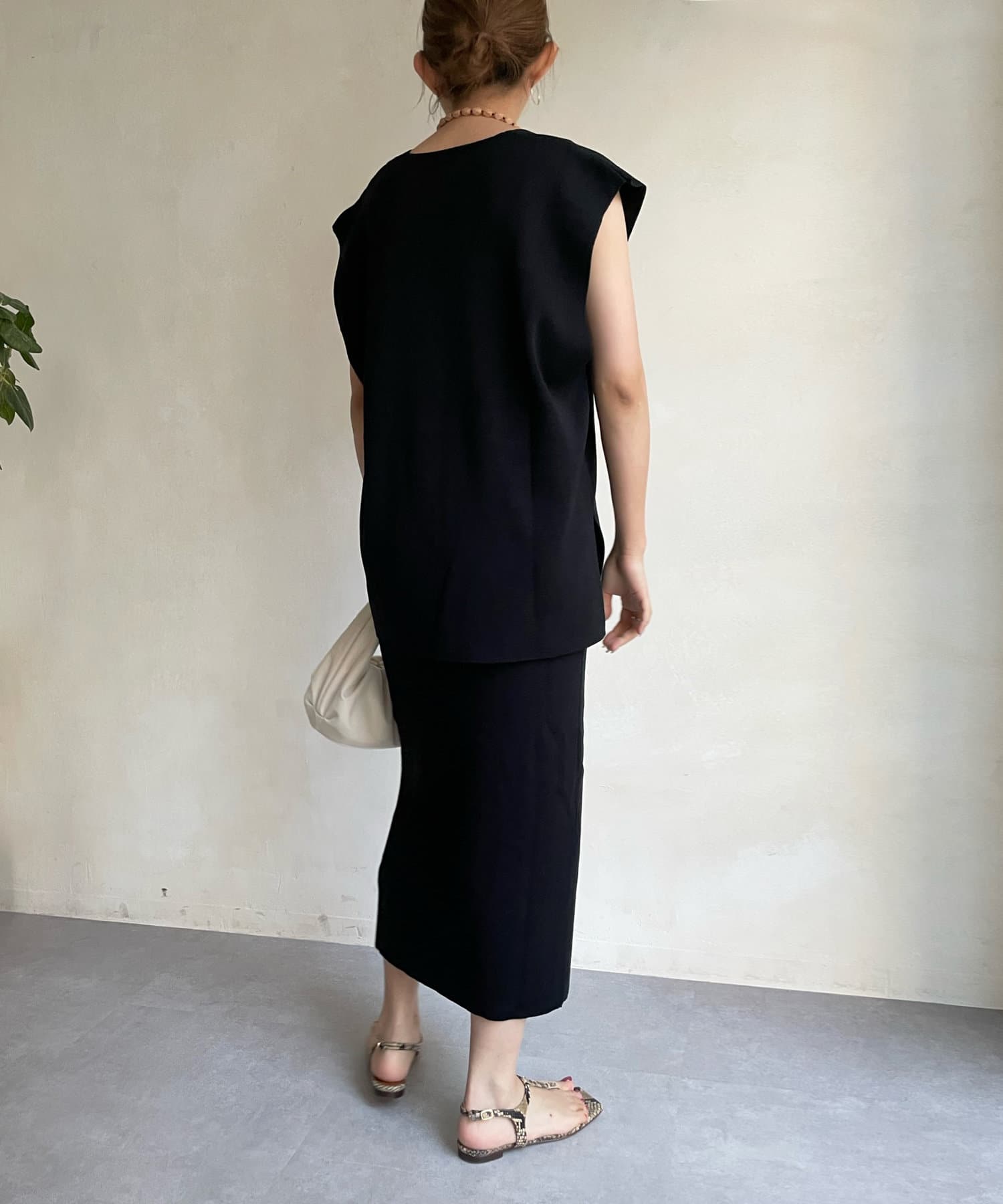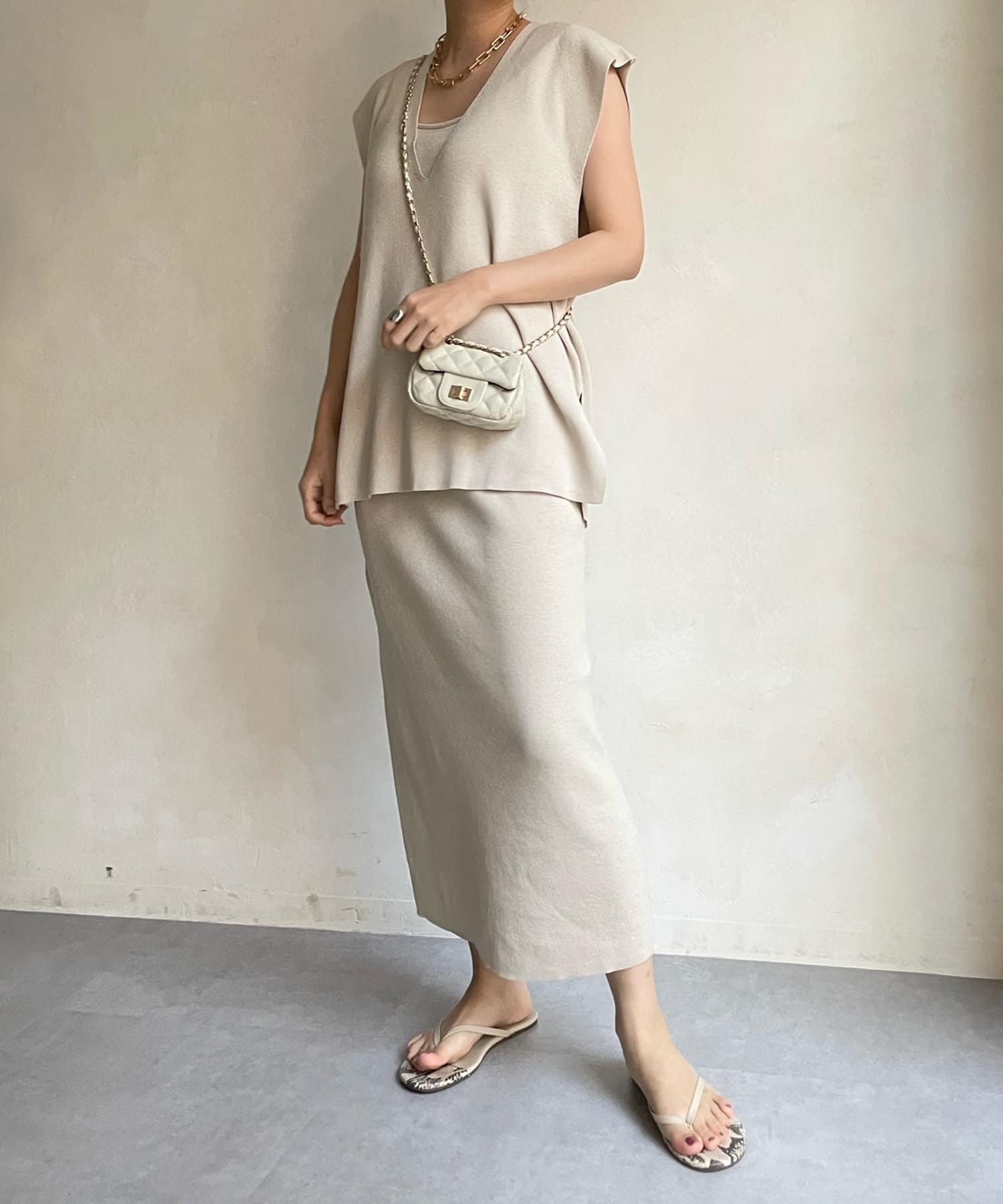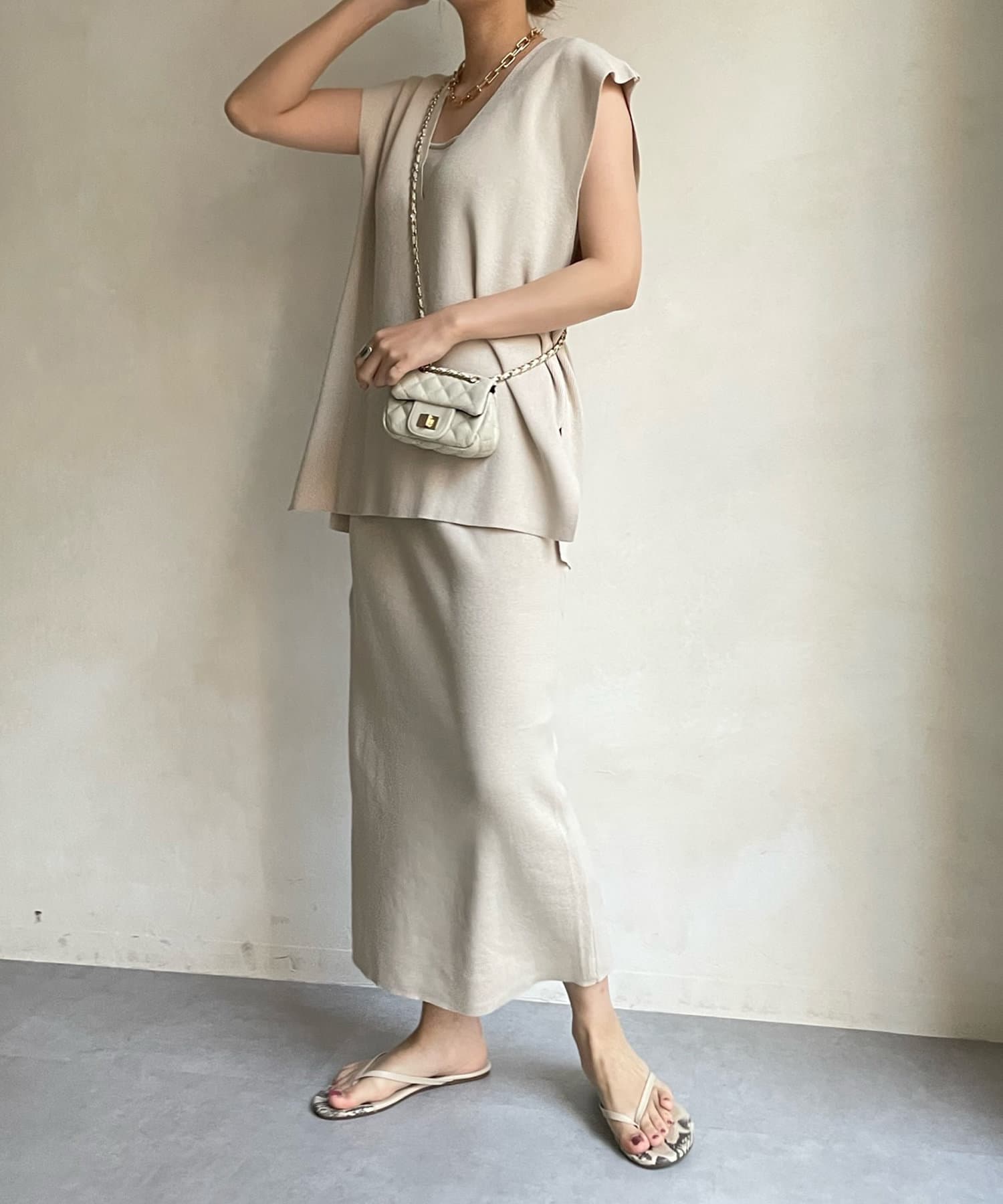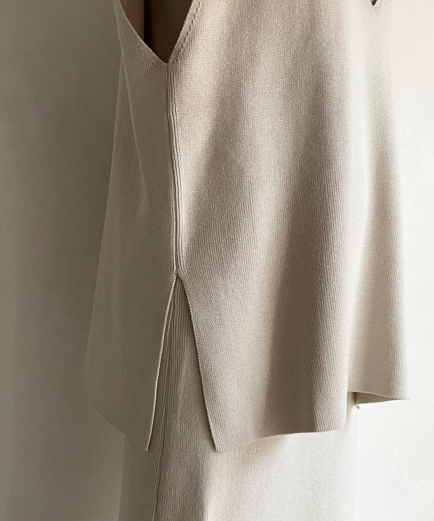 さらり着られる素材のニットベストと、ワンピースがセットになったアイテム。
