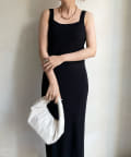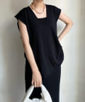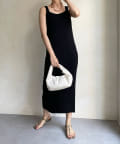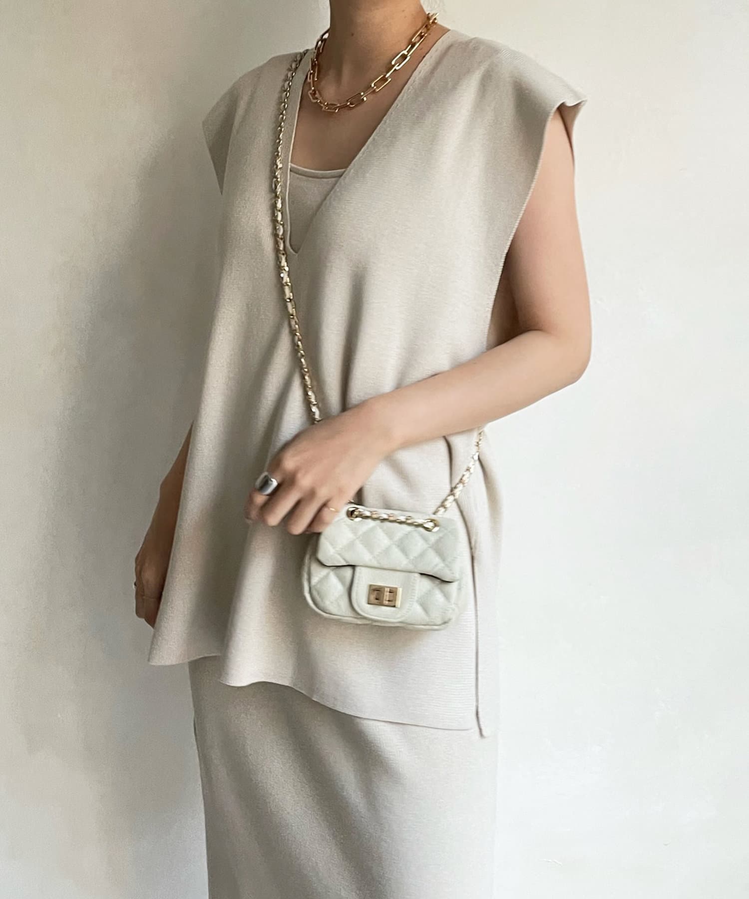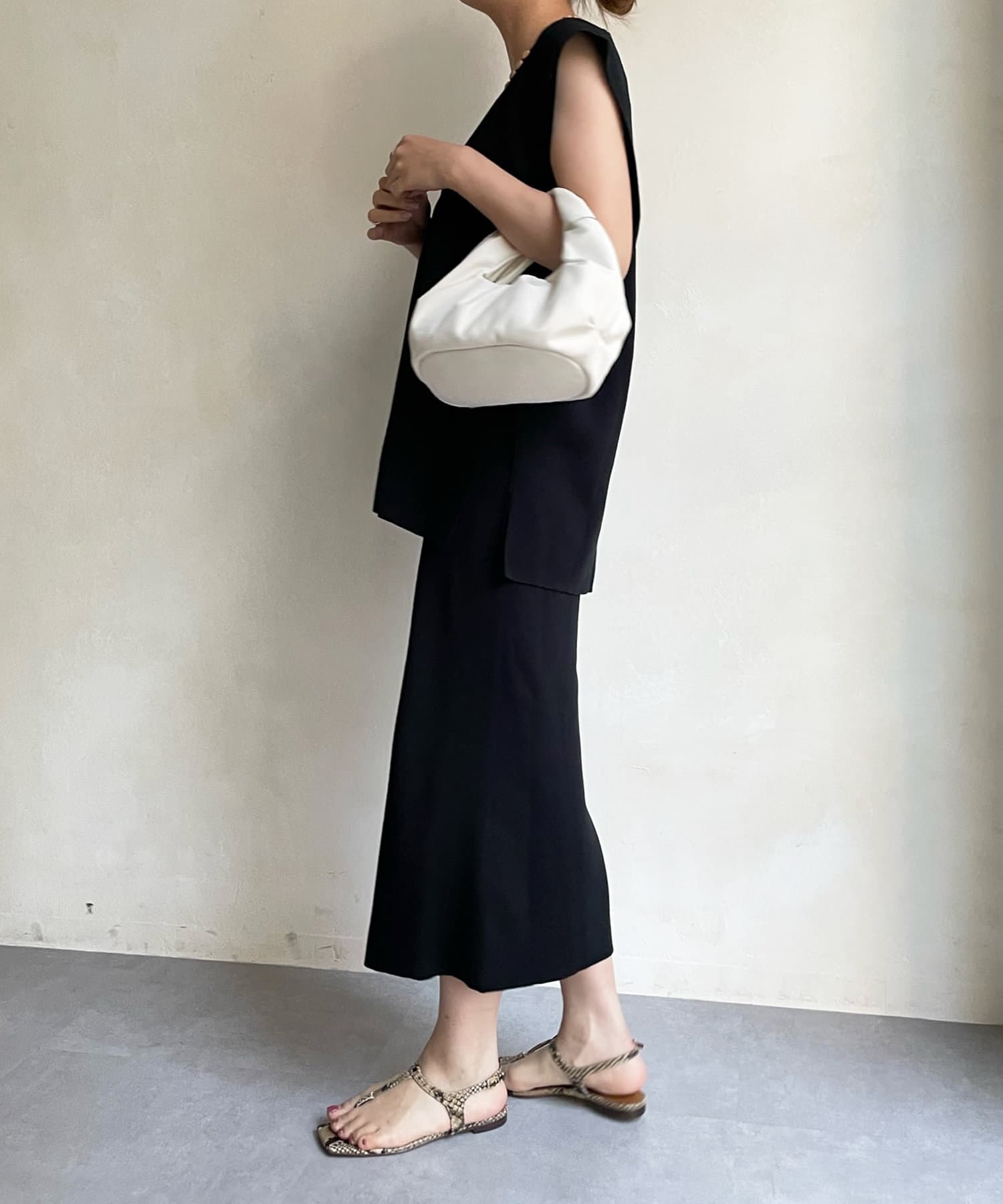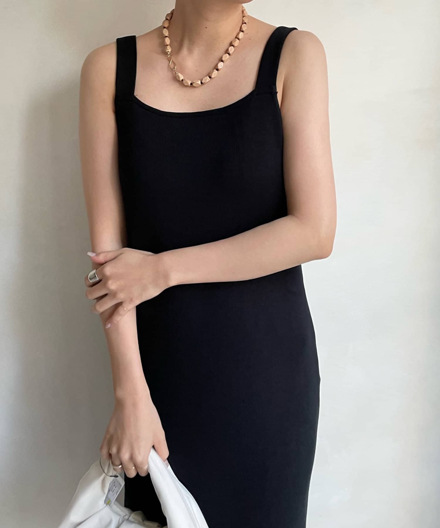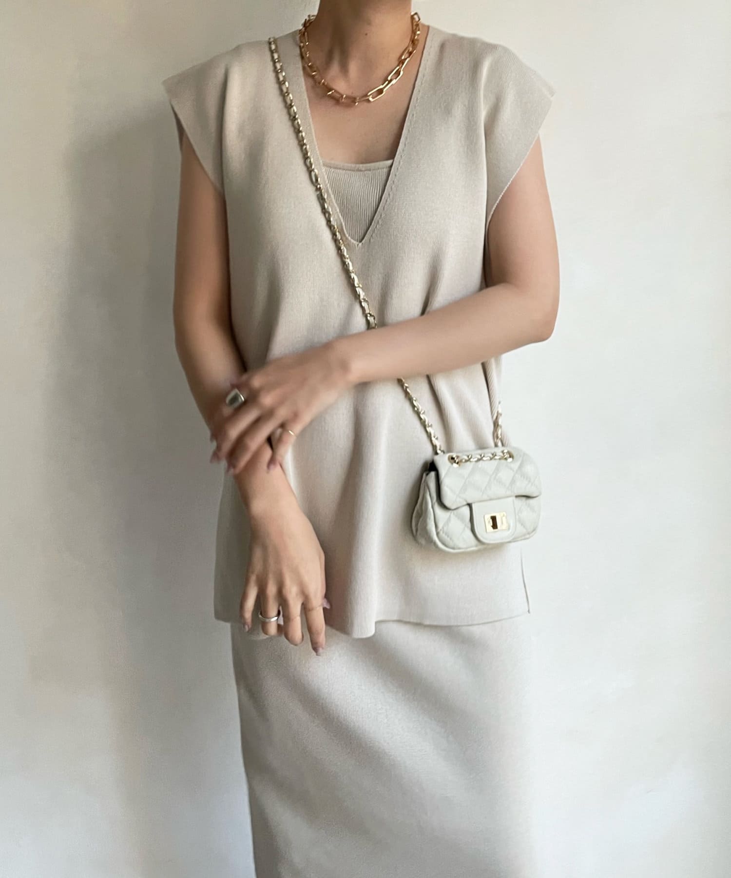 さらり着られる素材のニットベストと、ワンピースがセットになったアイテム。