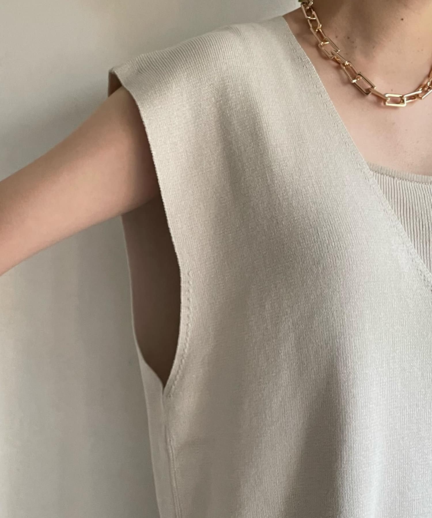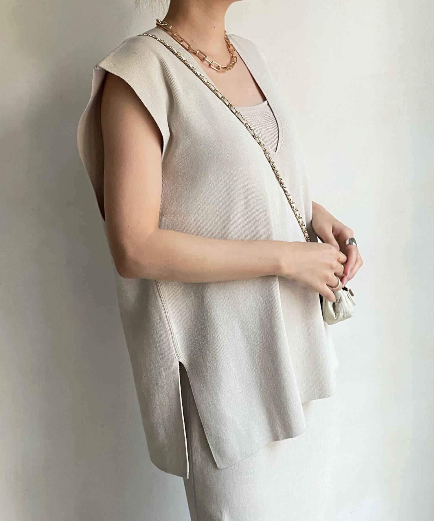 ベストは肩のラインをさり気なくカバーするフレンチ袖。