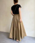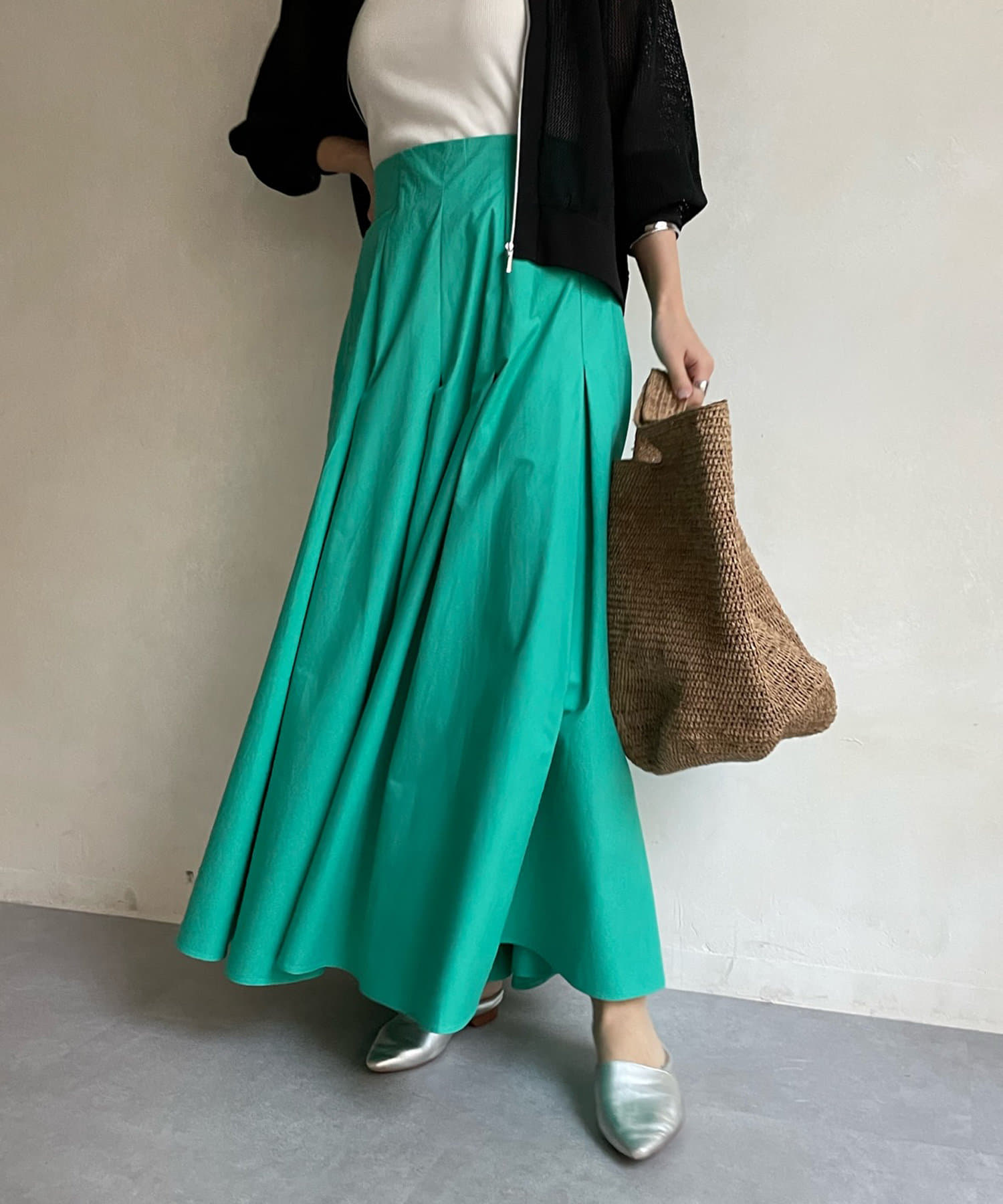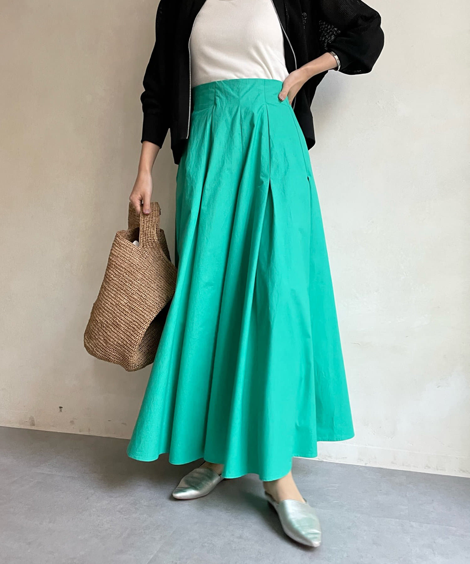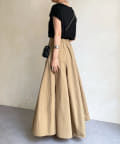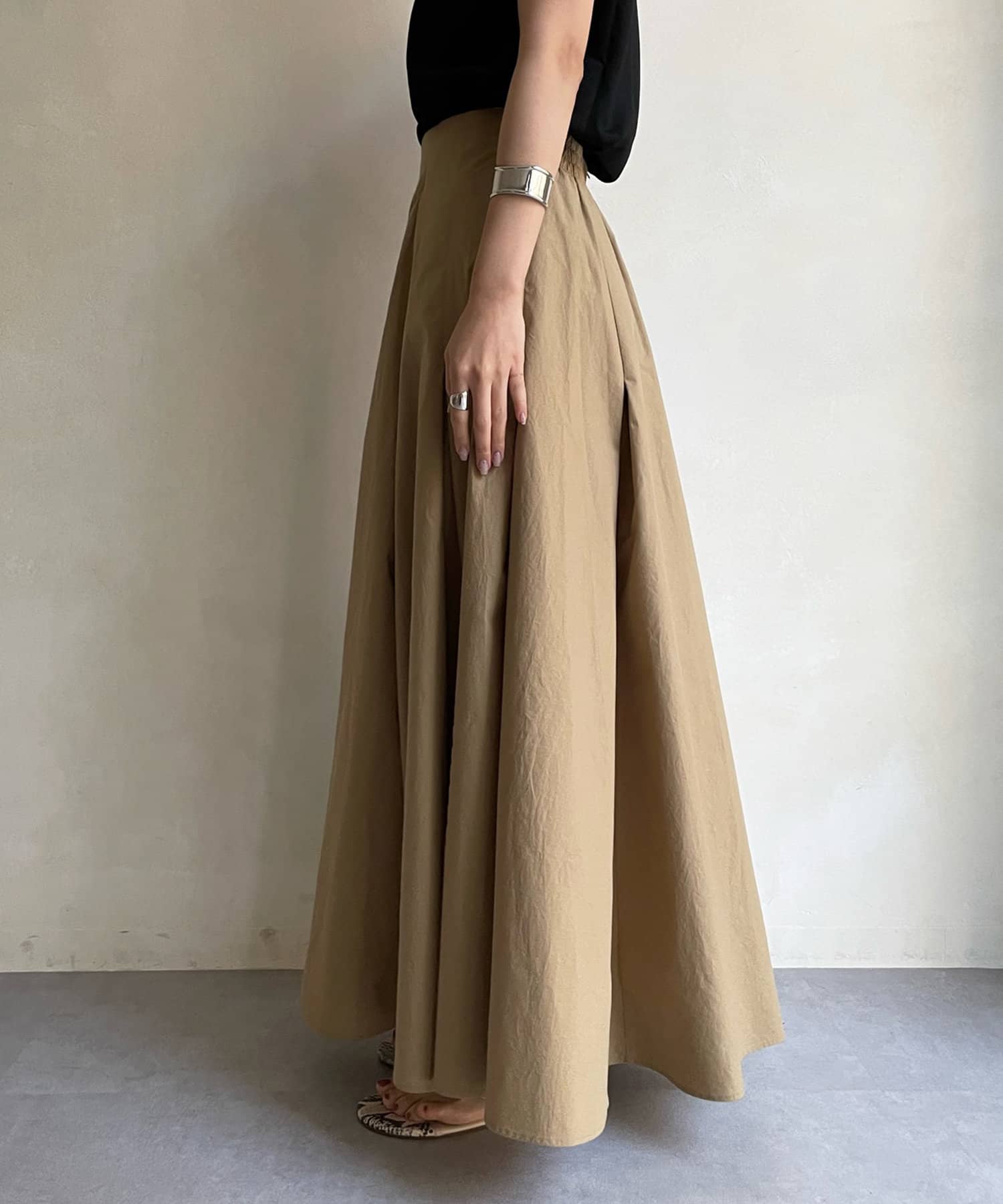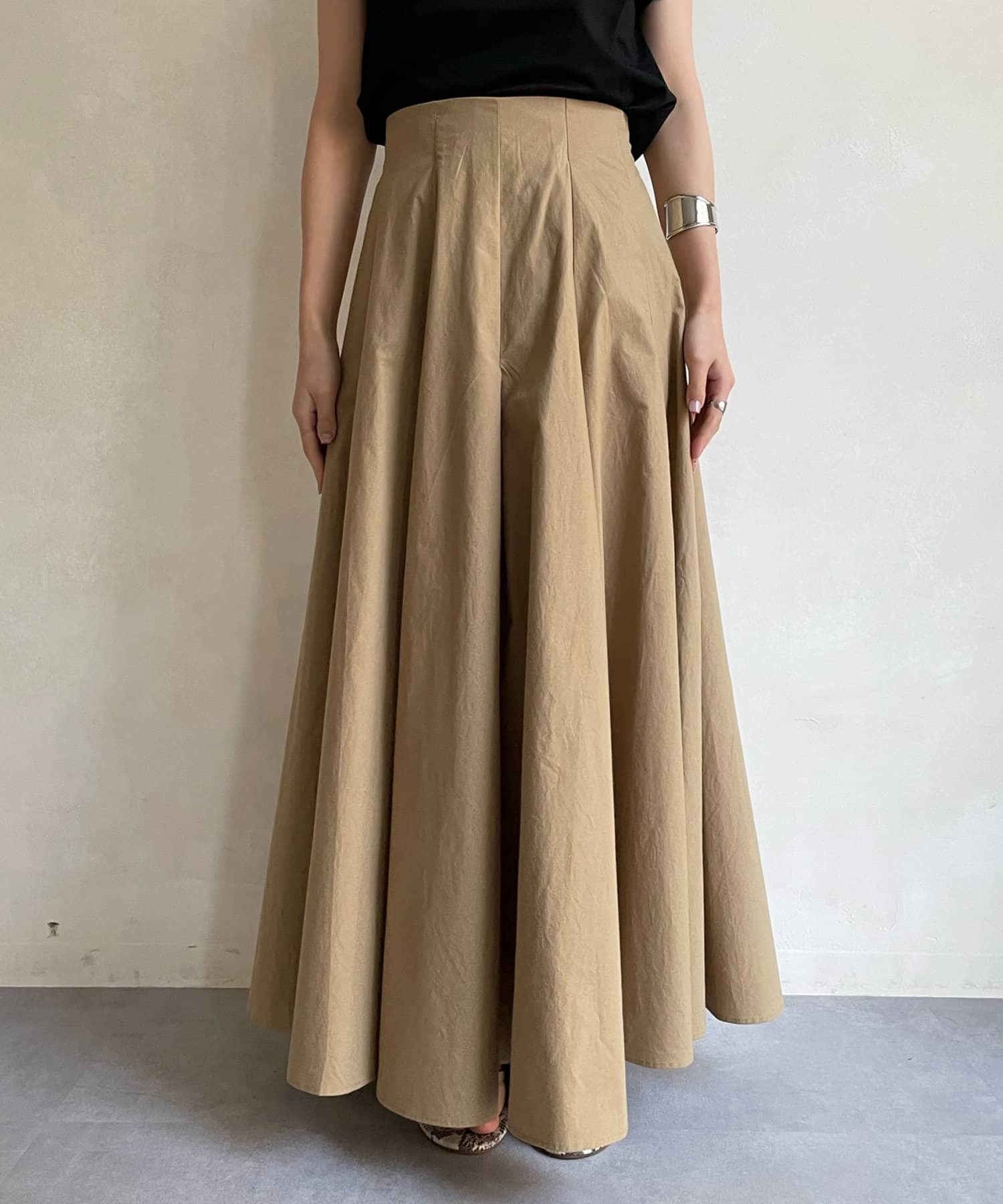 生地をふんだんに使い、タックを入れることで生まれるフレアシルエットが最大の魅力です。