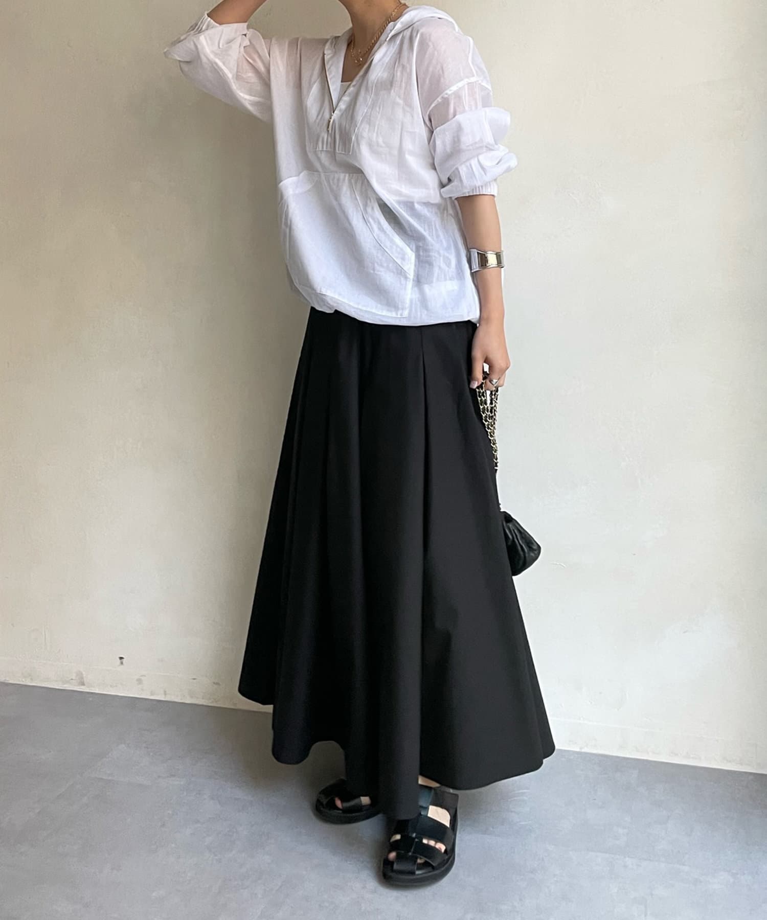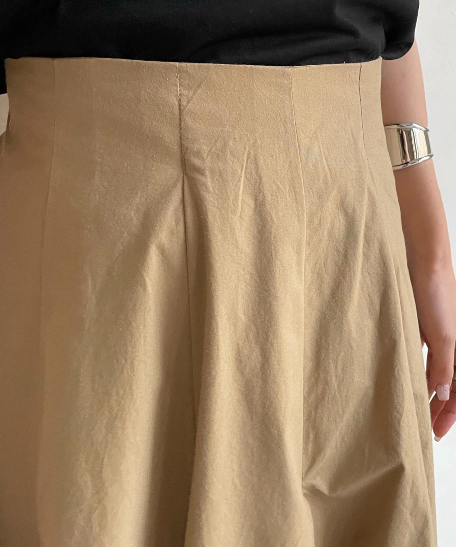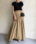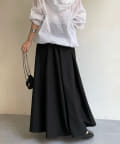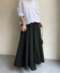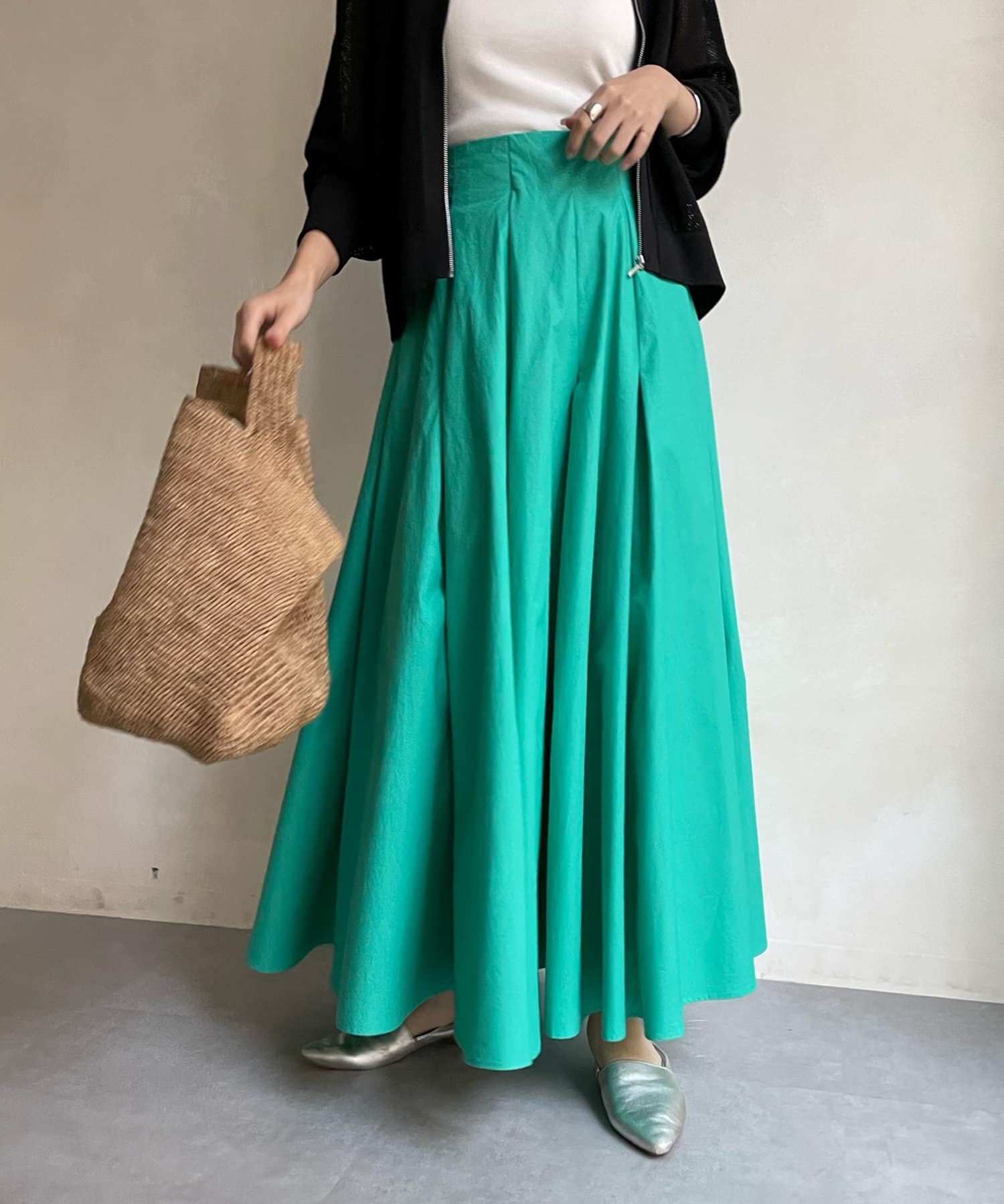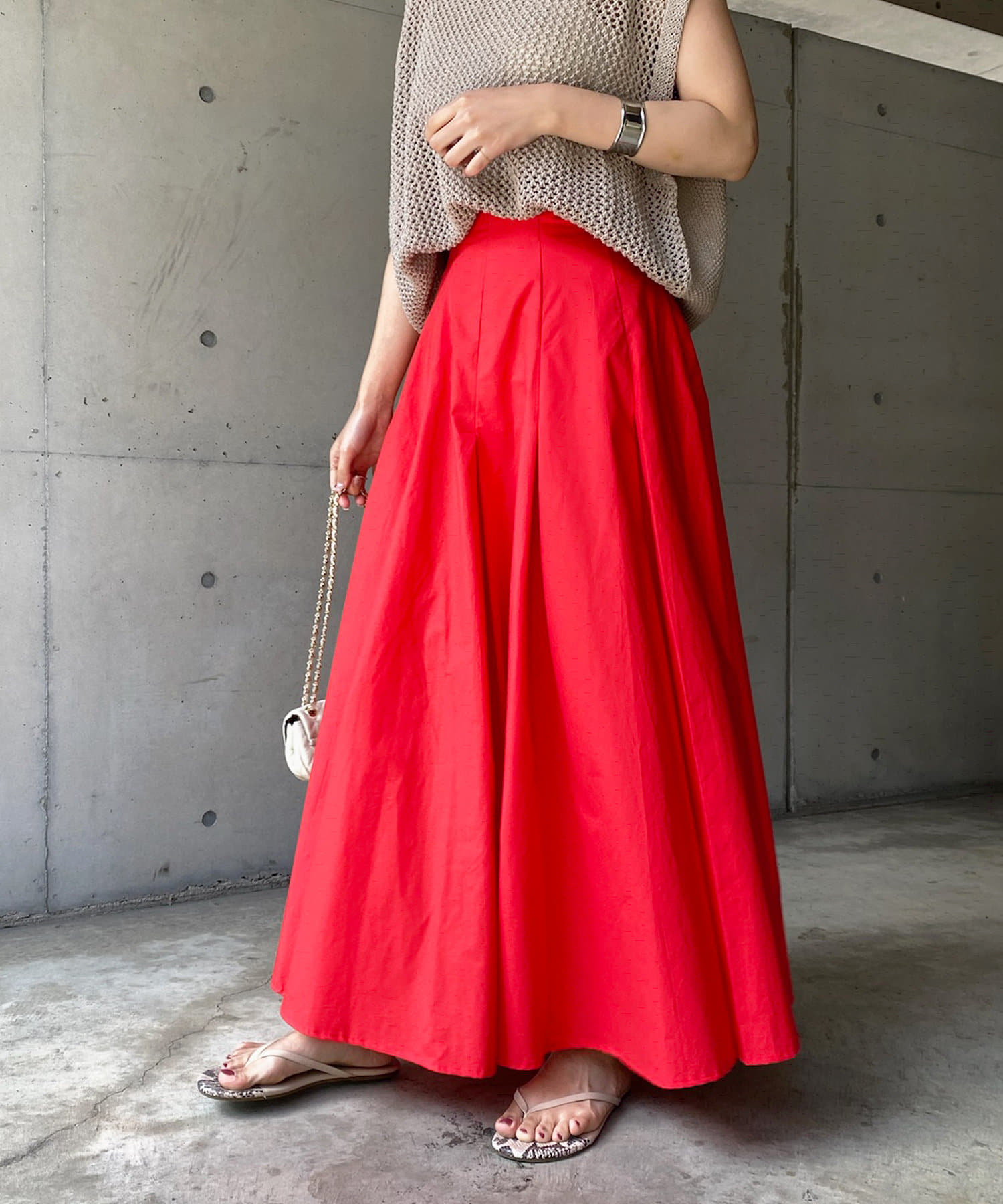 生地をふんだんに使い、タックを入れることで生まれるフレアシルエットが最大の魅力です。