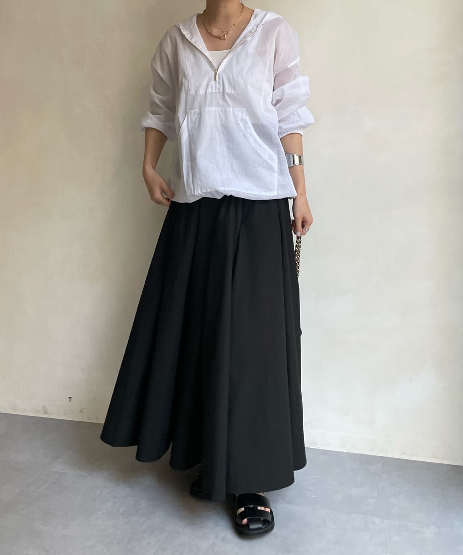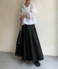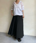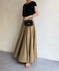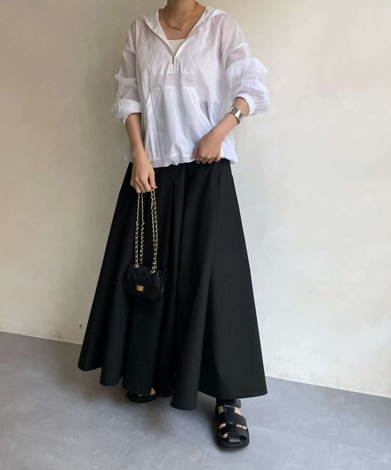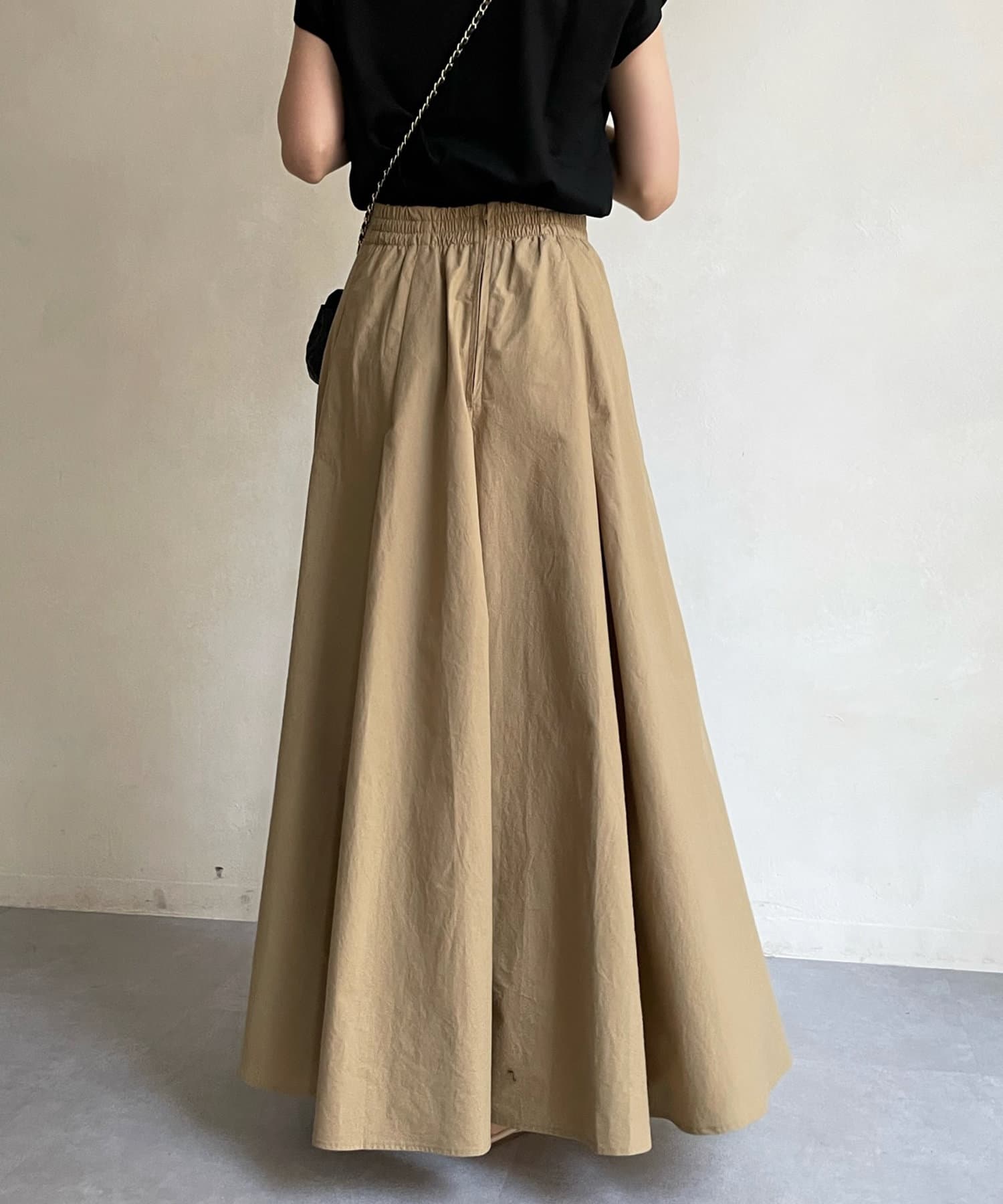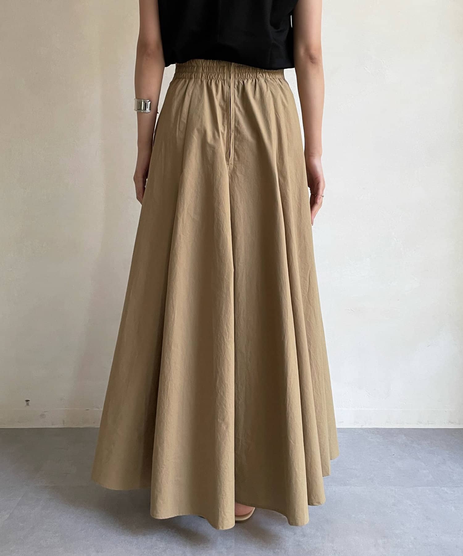 生地をふんだんに使い、タックを入れることで生まれるフレアシルエットが最大の魅力です。