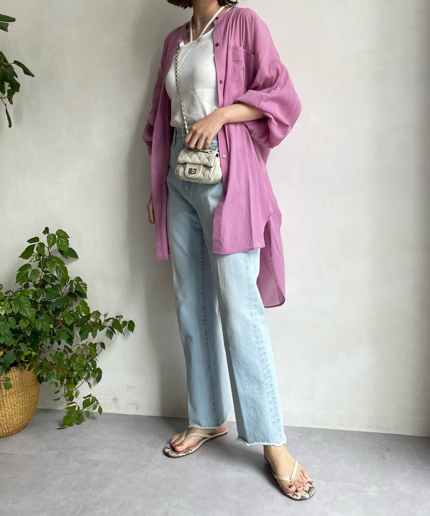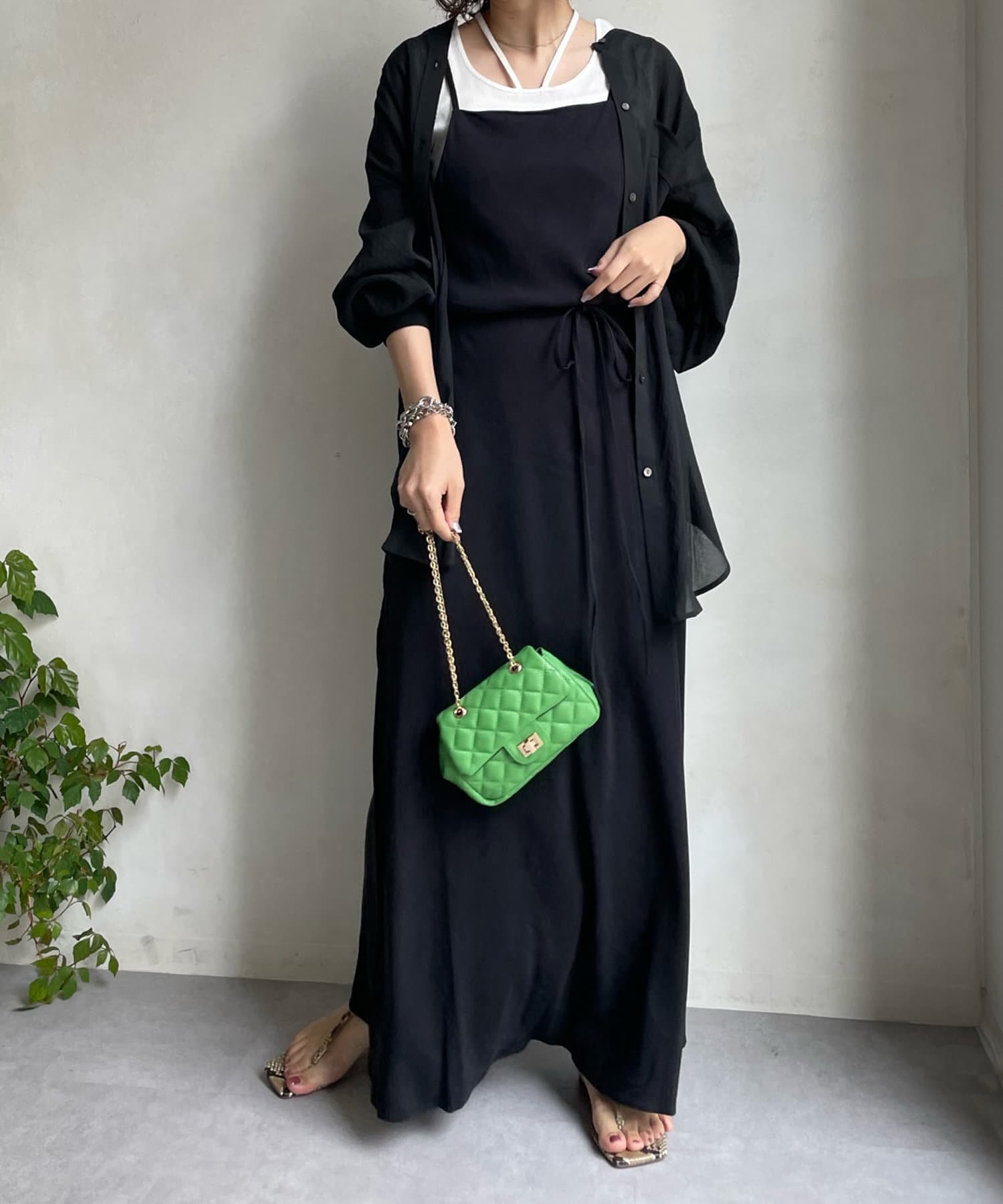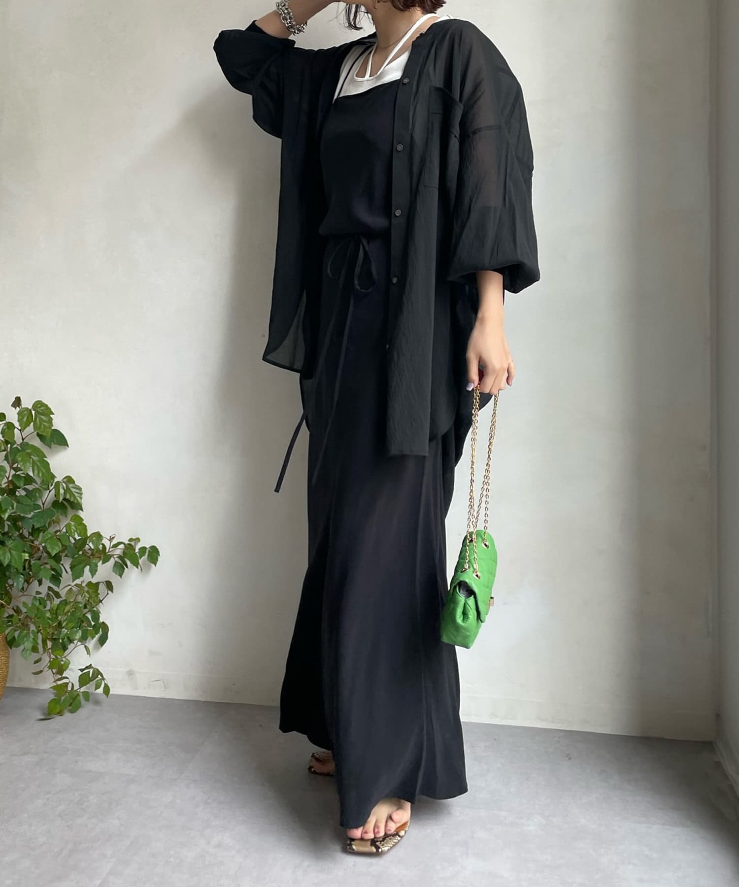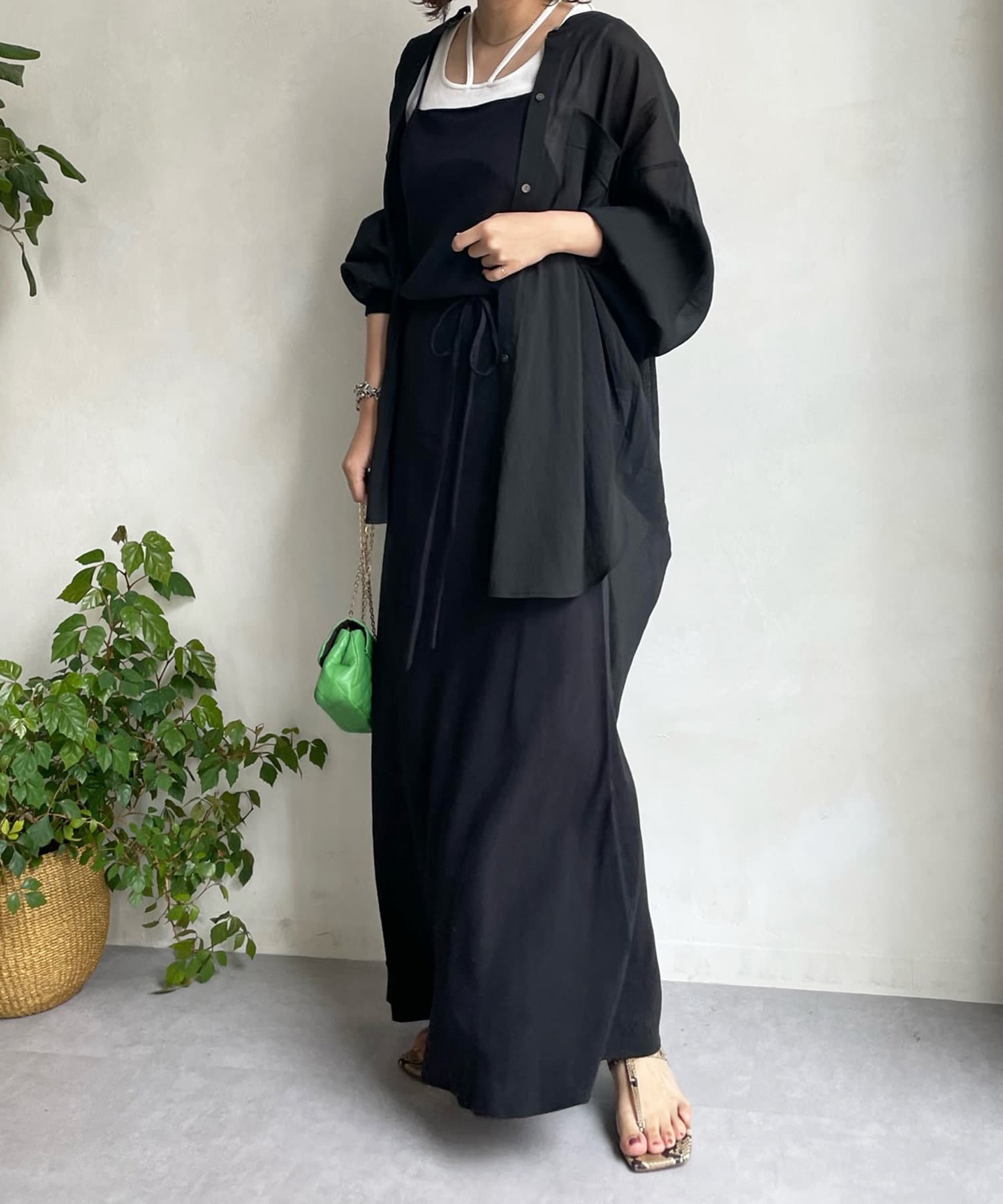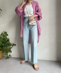 フロントのボタンを閉めてきっちりと、ボタンを開けてワンピースやインナーの上からざっくりと羽織って...など、ボタンの開け閉め次第で、様々な着こなしを楽しんで頂けますよ♪