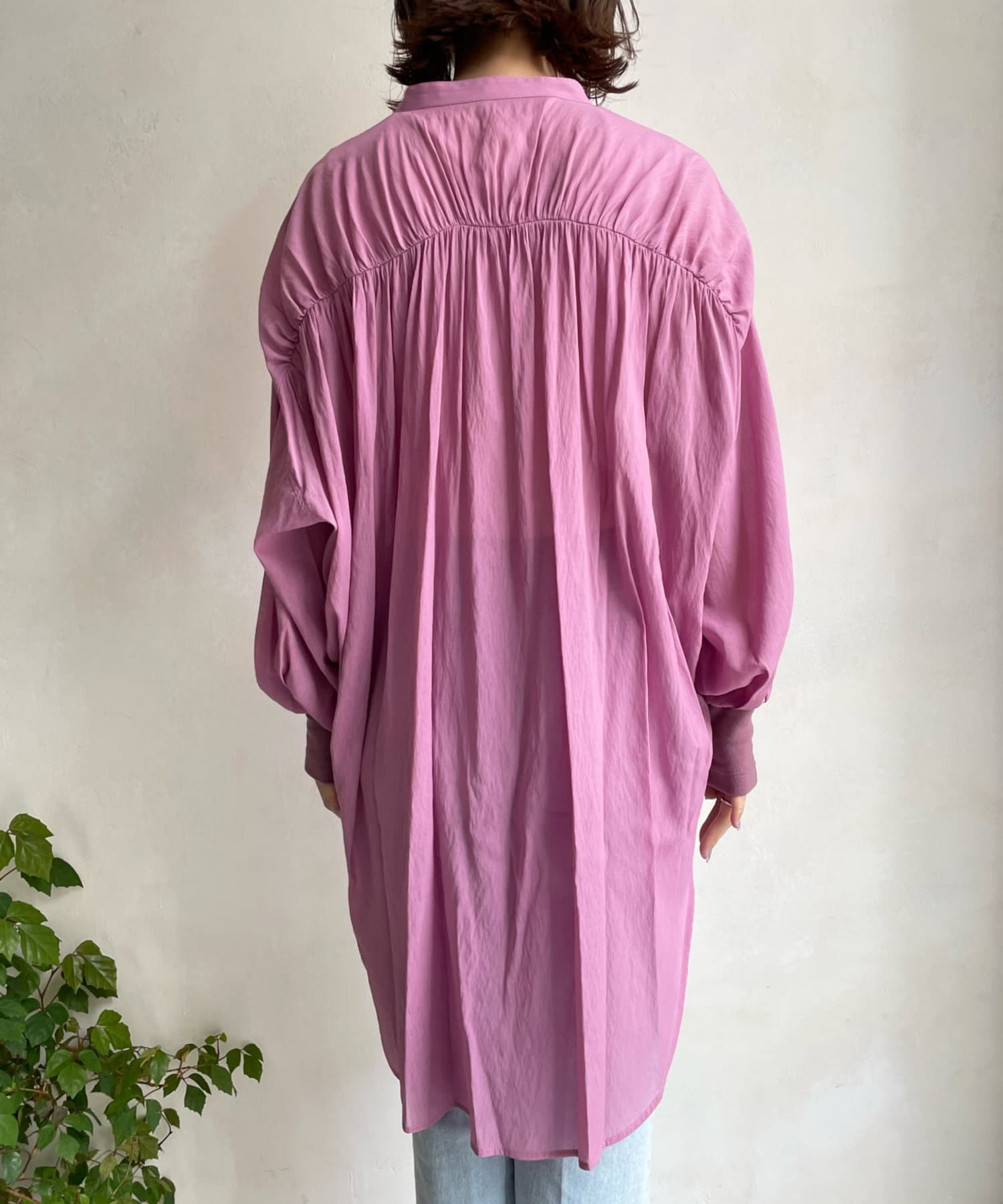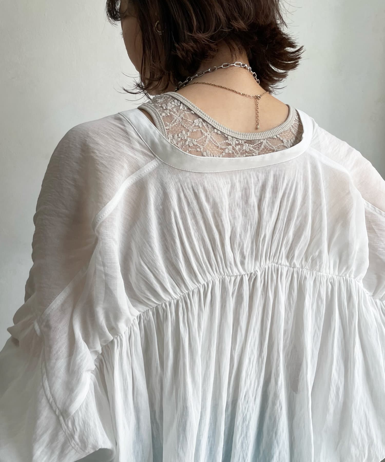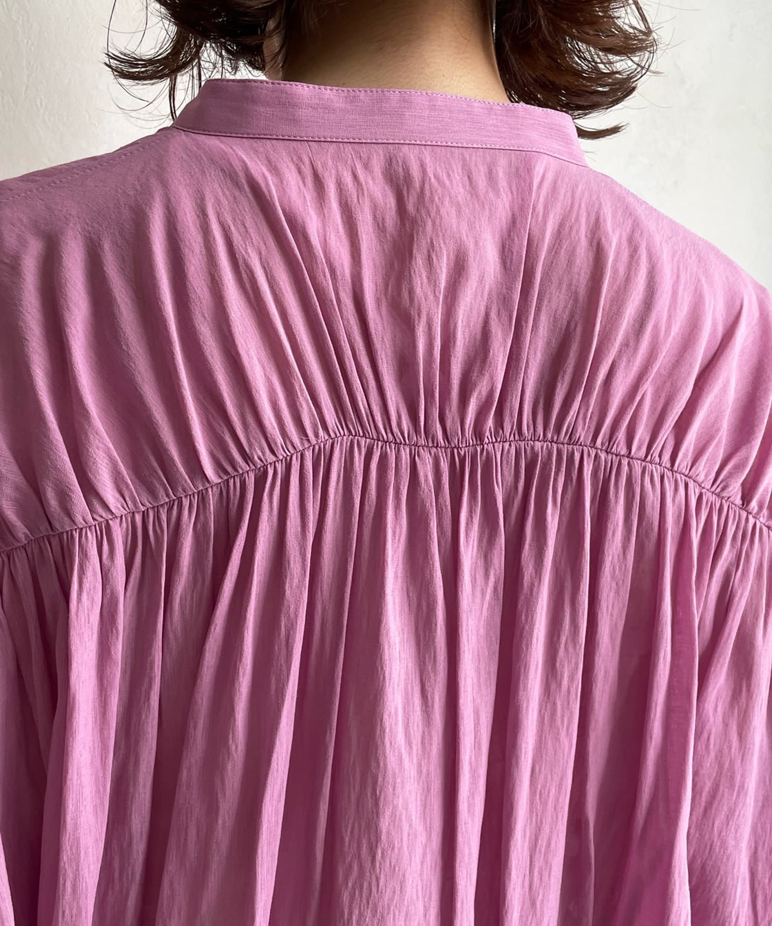 バックにたっぷりとギャザーを施したデザインがポイントのブラウス。