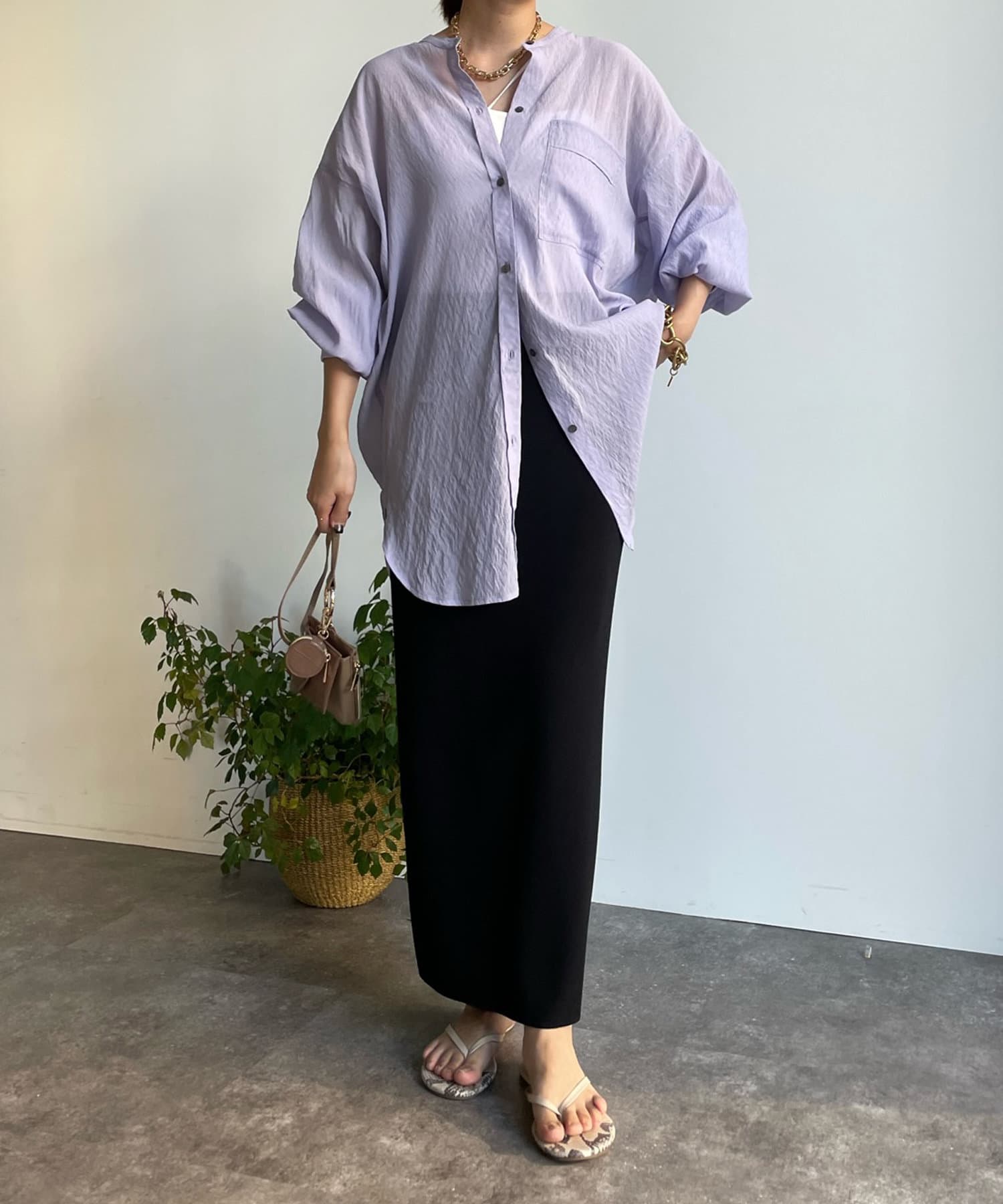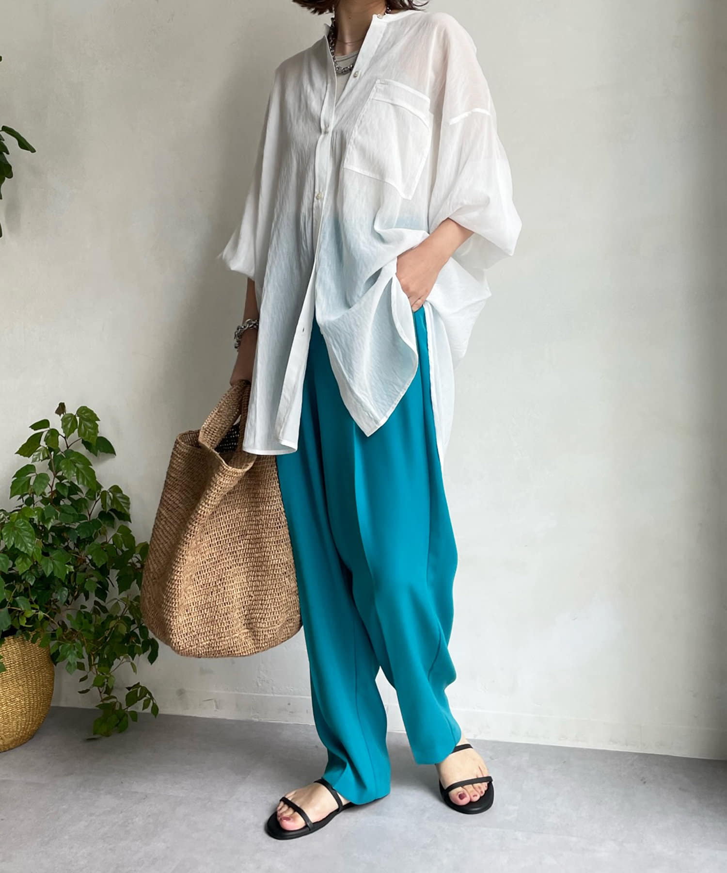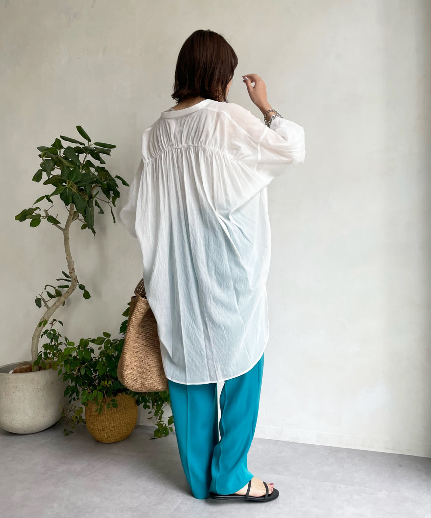 少し広めに取った身幅で、ゆるっとラフに着て頂けるシルエットに。また、やや前後差のあるヘムラインに、バックはヒップに掛かる丈感で気になる部分をさり気なくカバーしてくれます。