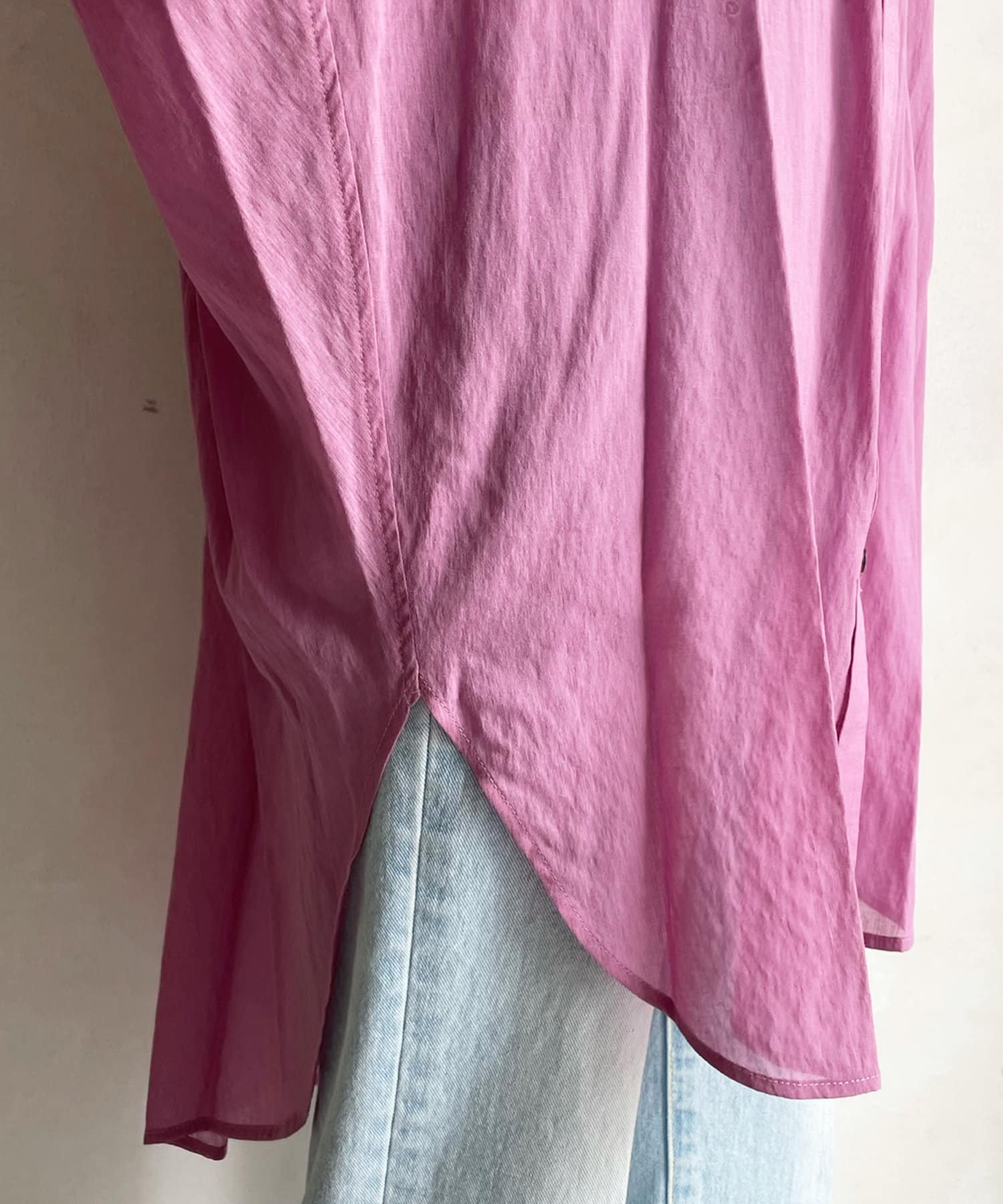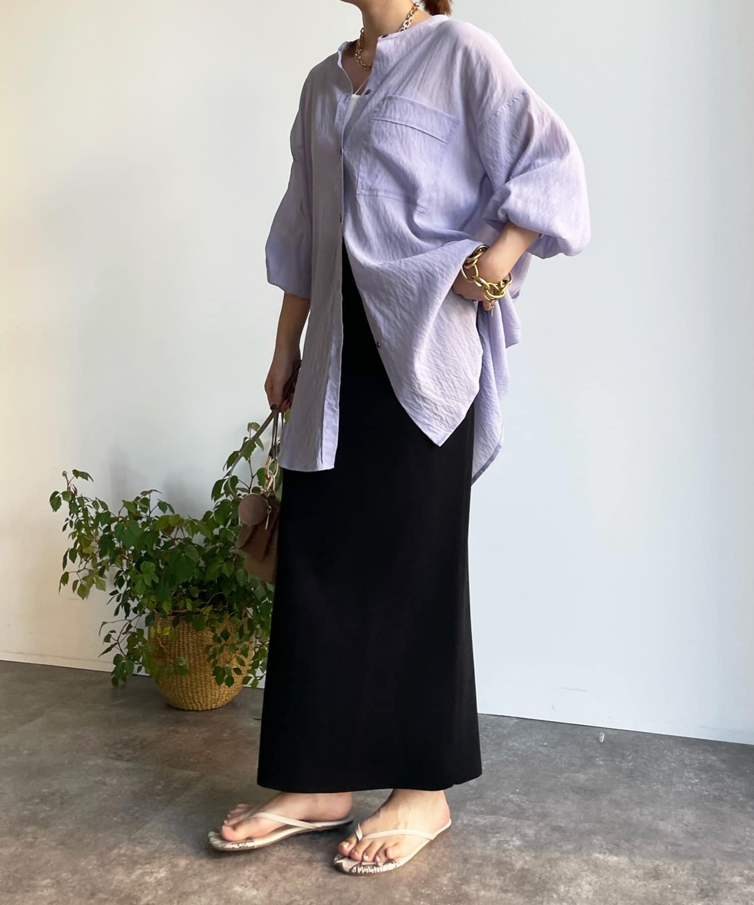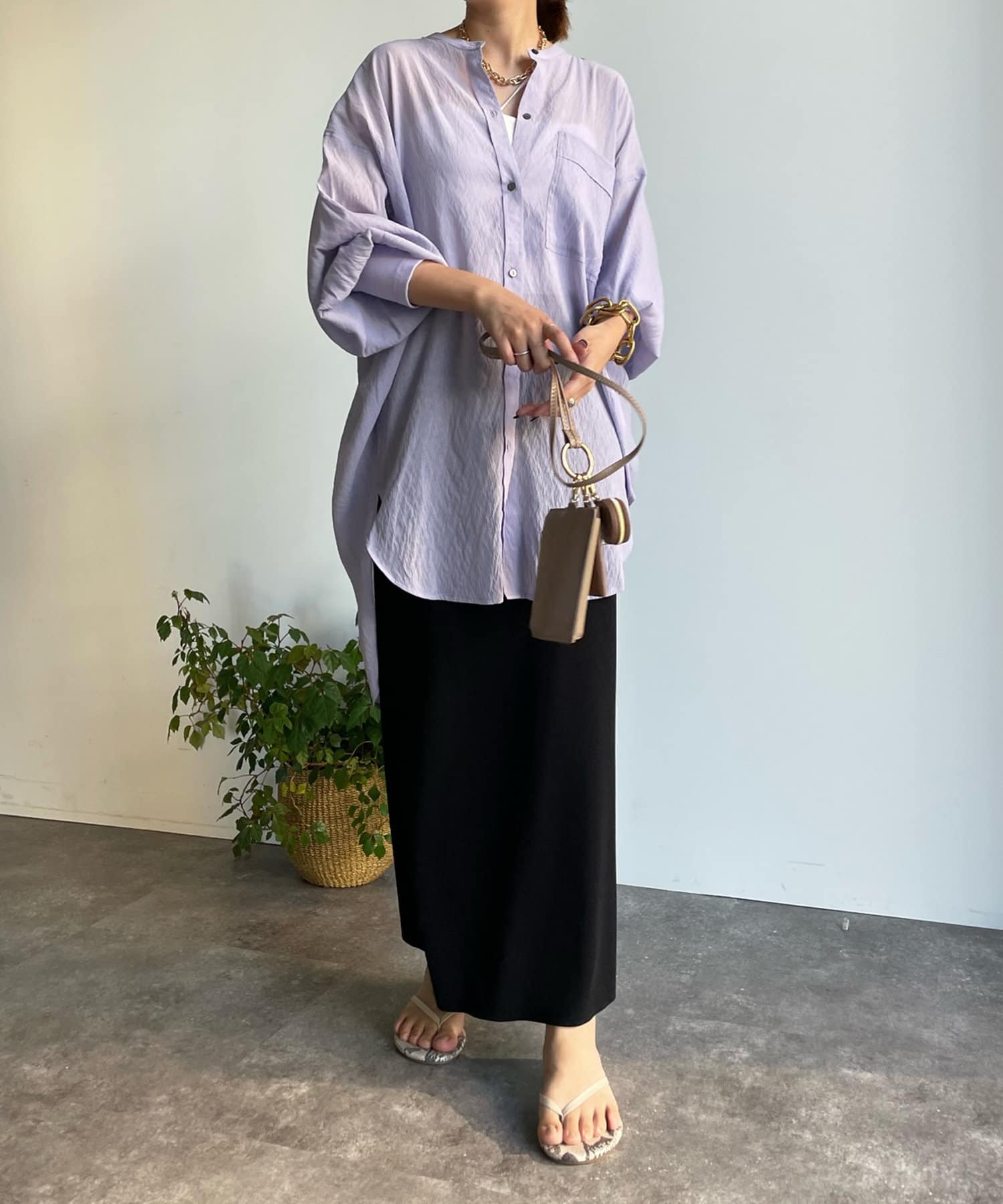 少し広めに取った身幅で、ゆるっとラフに着て頂けるシルエットに。また、やや前後差のあるヘムラインに、バックはヒップに掛かる丈感で気になる部分をさり気なくカバーしてくれます。