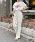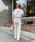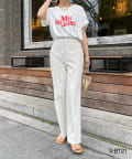 フロントには夏らしい赤のロゴがプリントされており、少しゆとりのあるサイズ感と裾のヘムラインが大人カジュアルに着ていただるポイントに。