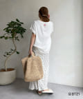 フロントには夏らしい赤のロゴがプリントされており、少しゆとりのあるサイズ感と裾のヘムラインが大人カジュアルに着ていただるポイントに。