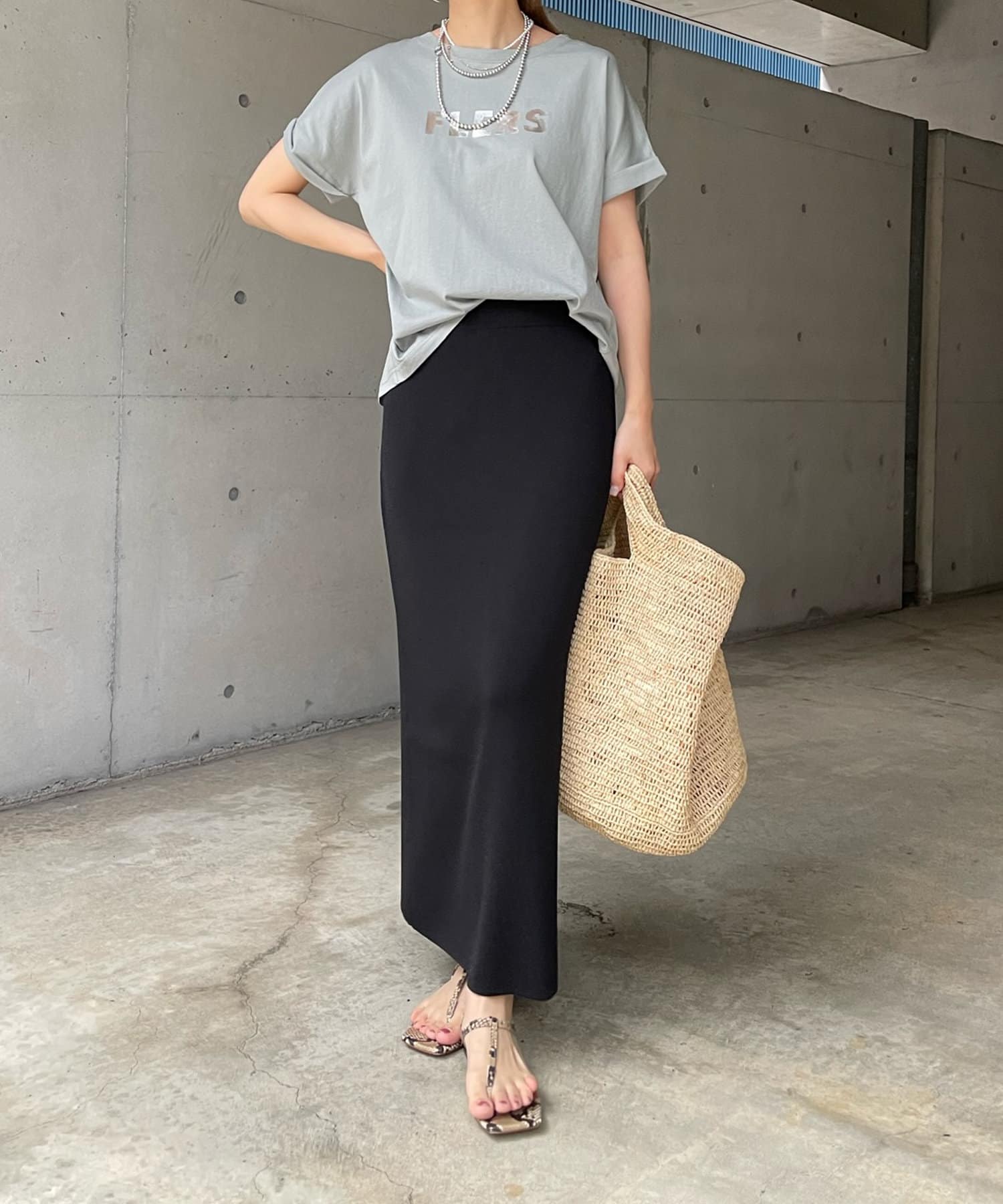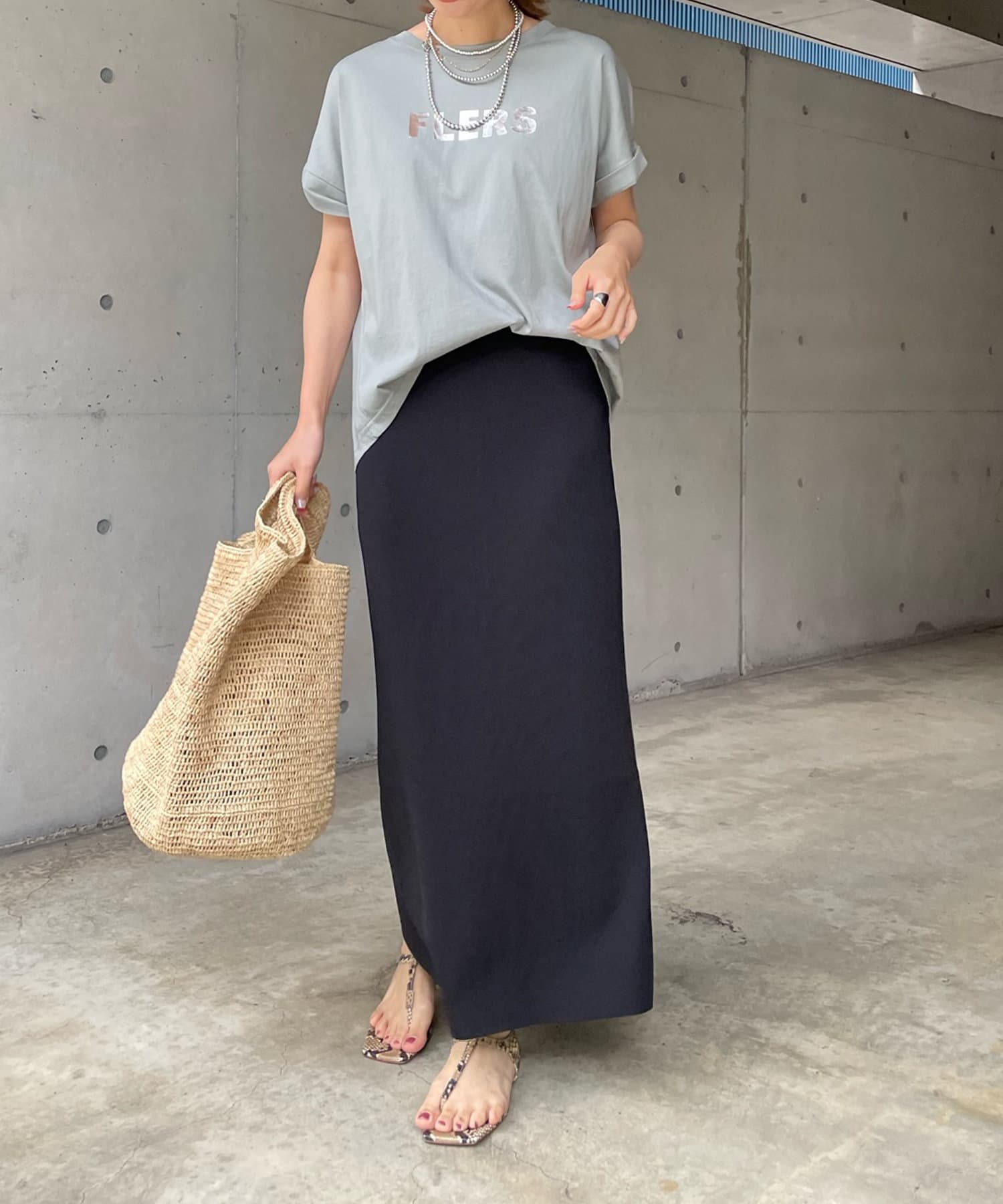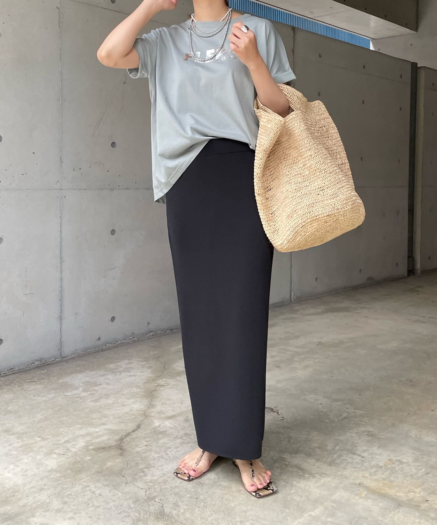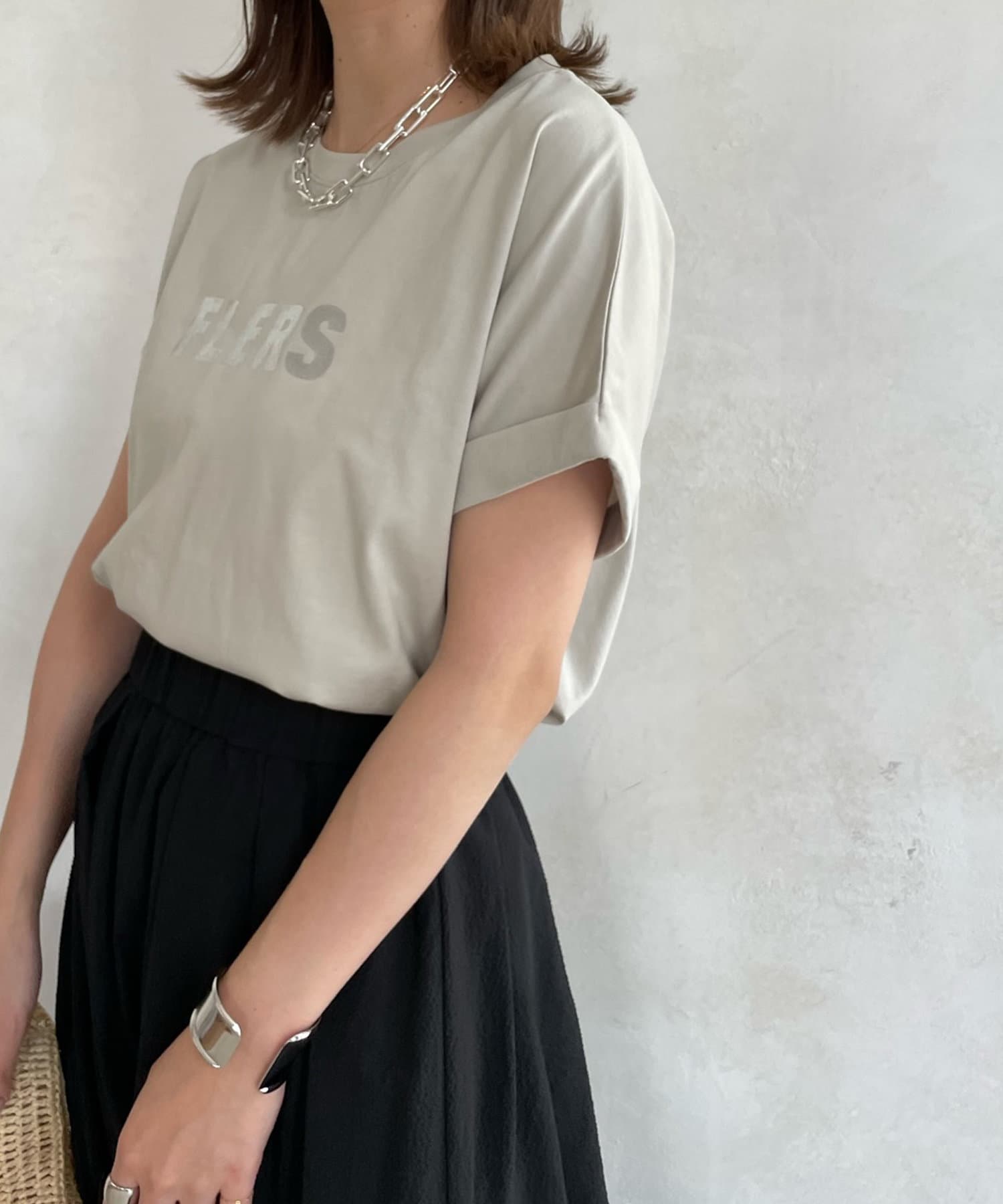 動いた時にキラッと光るロゴが、大きすぎず主張し過ぎないのでキレイ見えするTシャツ。