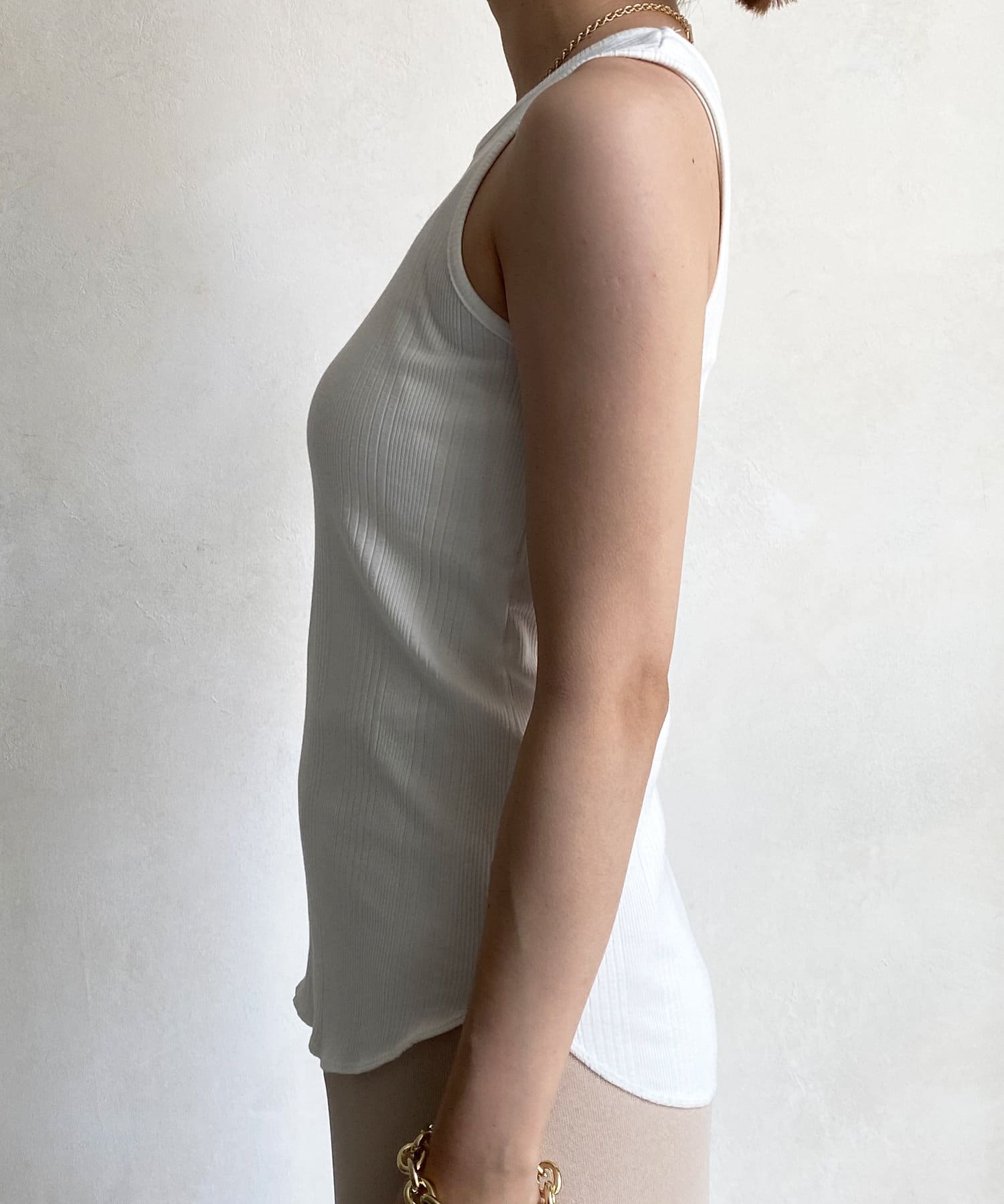 立体感のあるランダムリブ仕様でヘルシーな印象のタンクトップ。