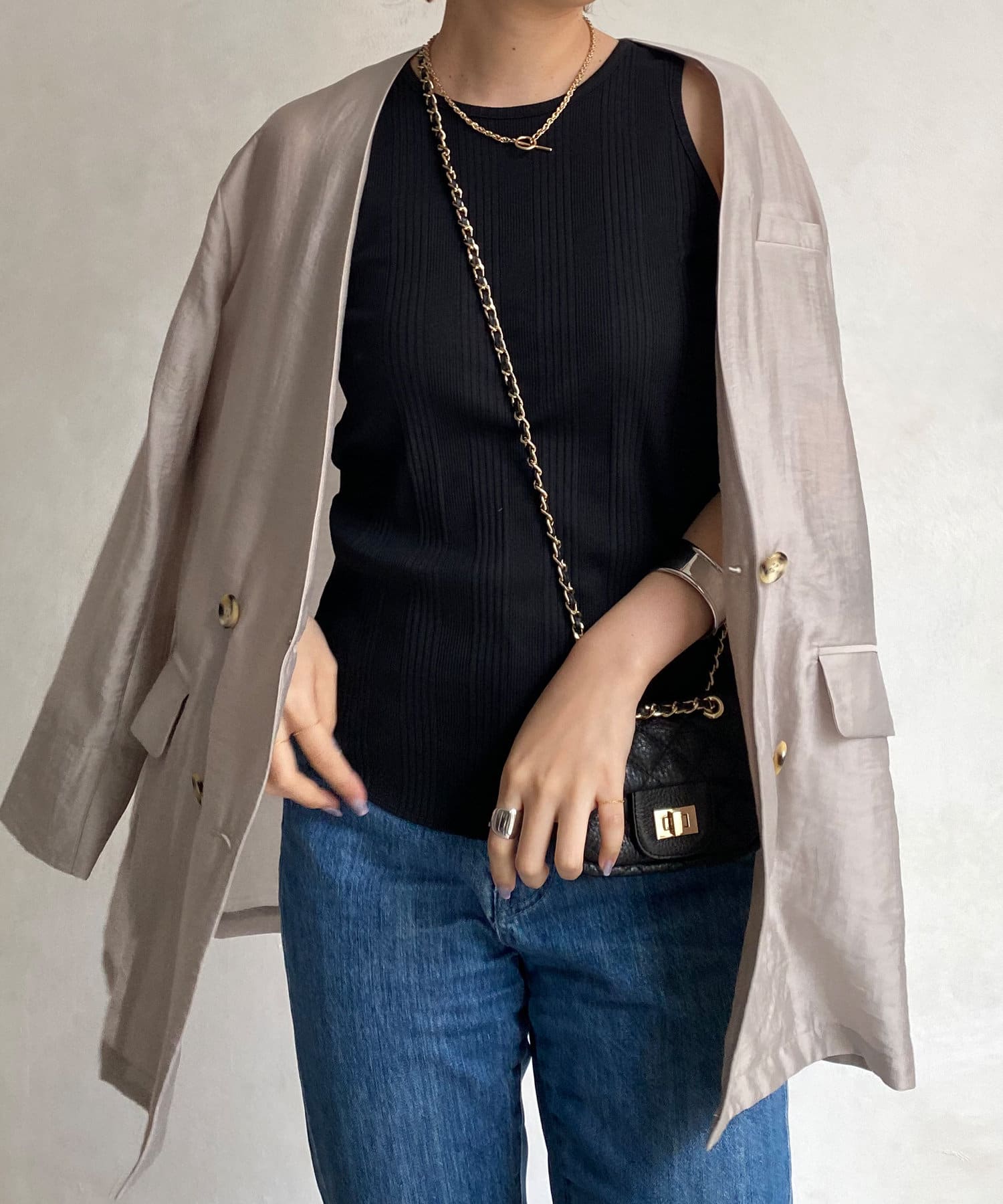1枚でも、インナーとしても、様々な着こなしで楽しめるリブタンクは、カラバリで揃えておくと、変化のある着こなしを楽しめるのでおすすめですよ!