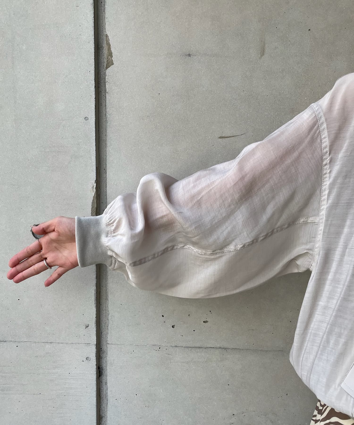 カジュアルなディテールながら、程よいシアー感が大人な抜け感と上品さを演出。