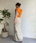 華奢見え抜群の細ストラップを後ろでクロスにして、バックコンシャスなデザインに。